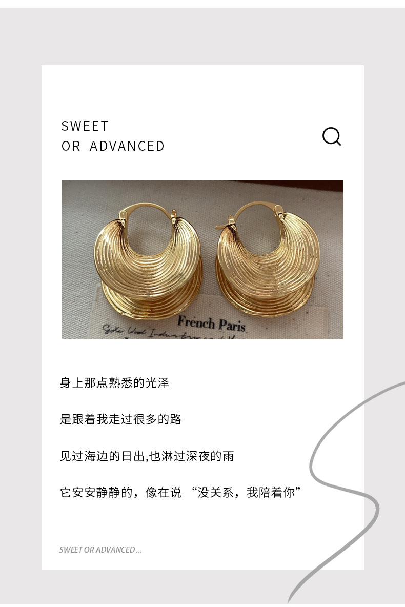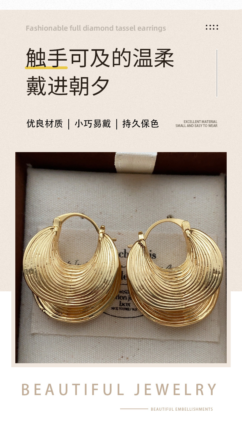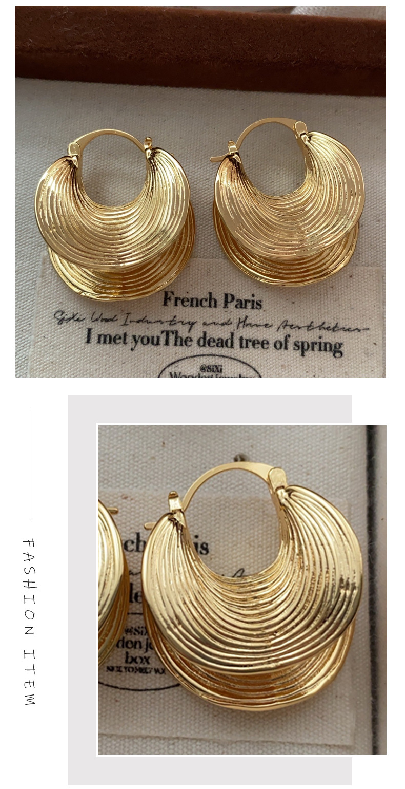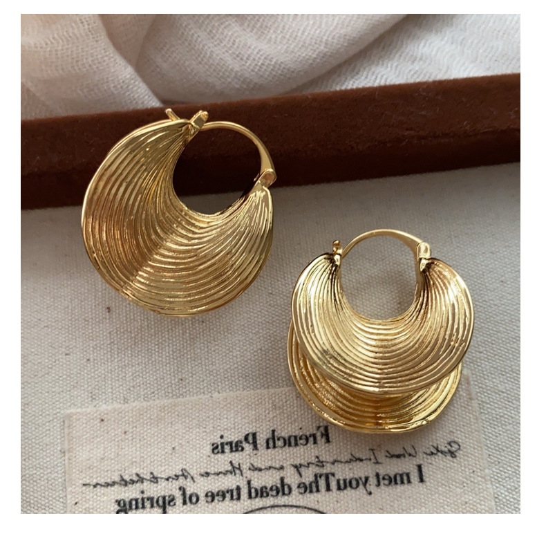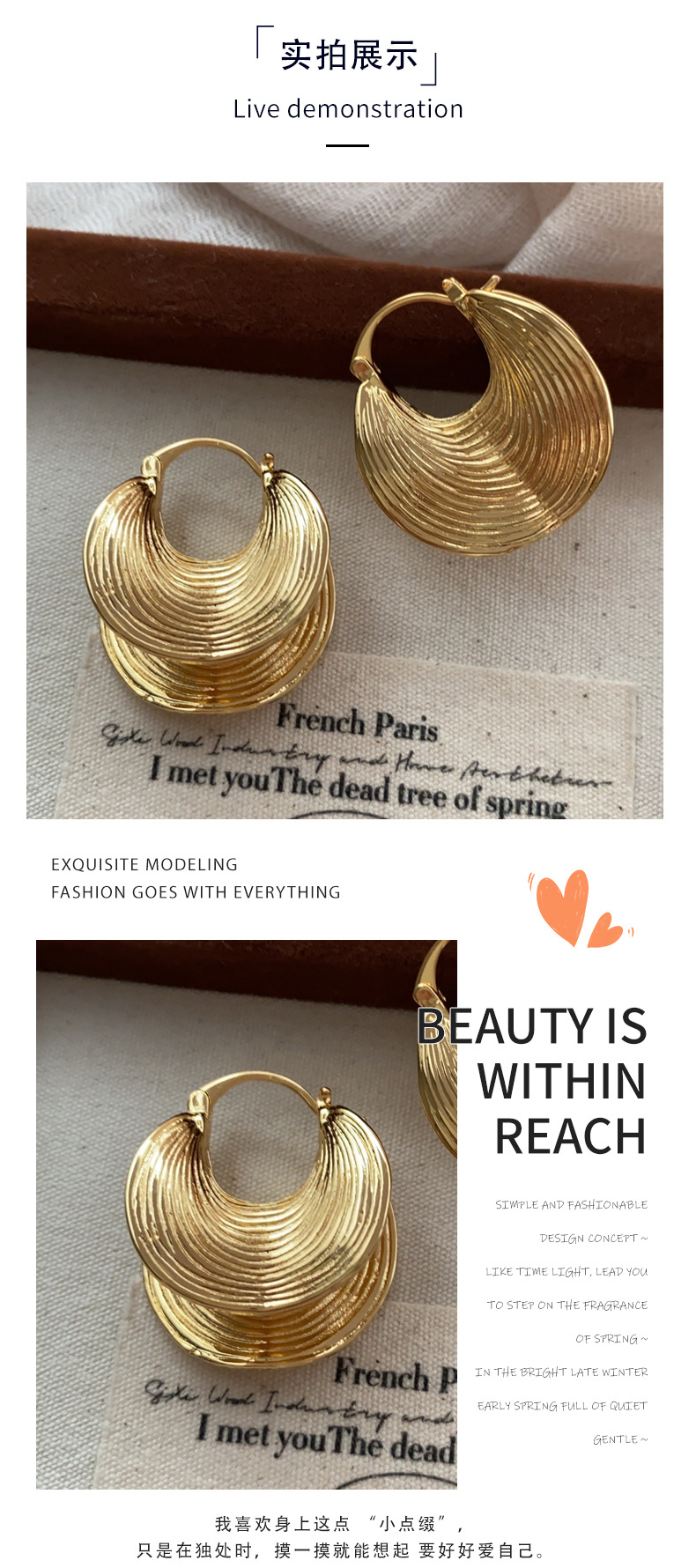 欧美风街拍洋气时髦百搭复古夸张黄铜镀金不规则条纹性感大耳环女