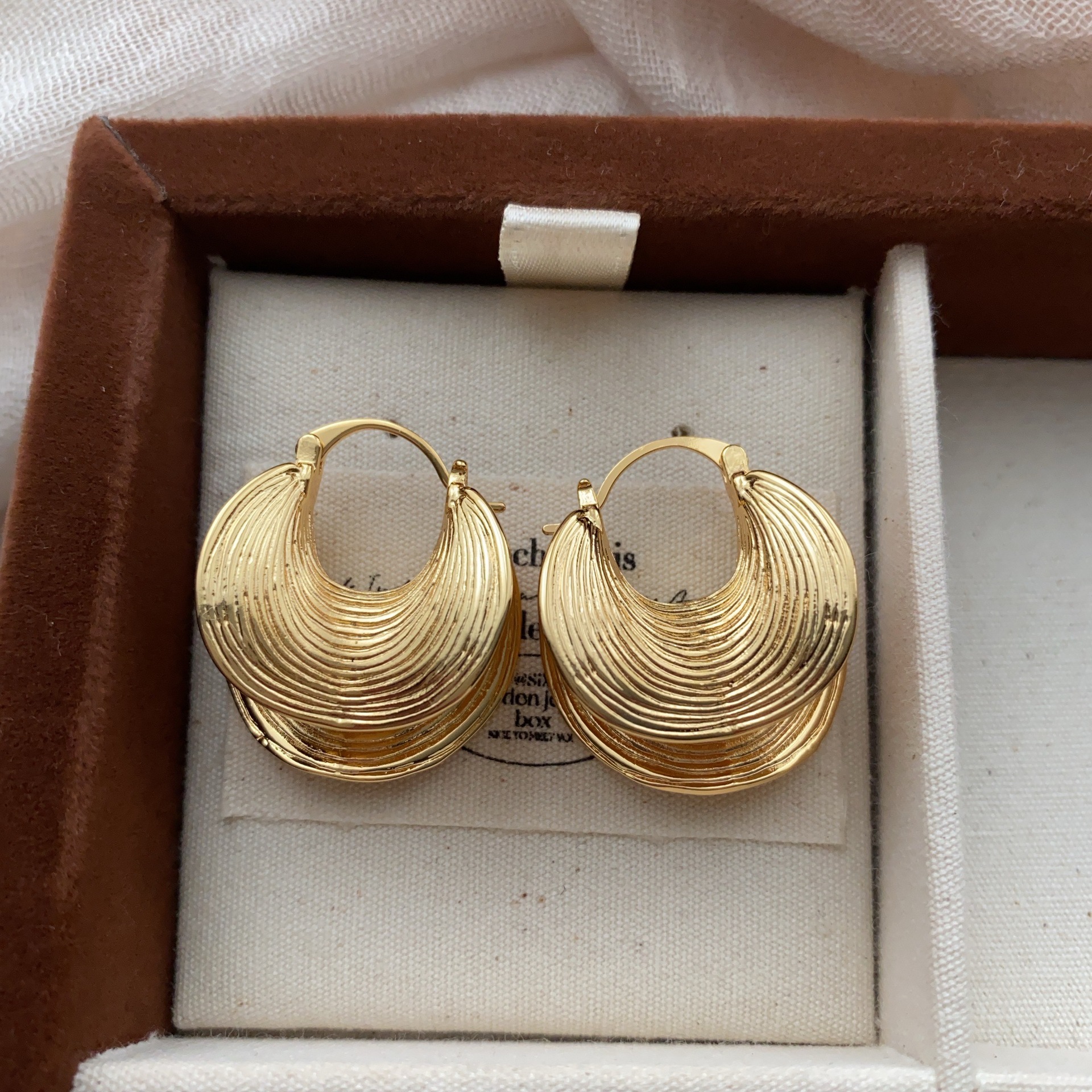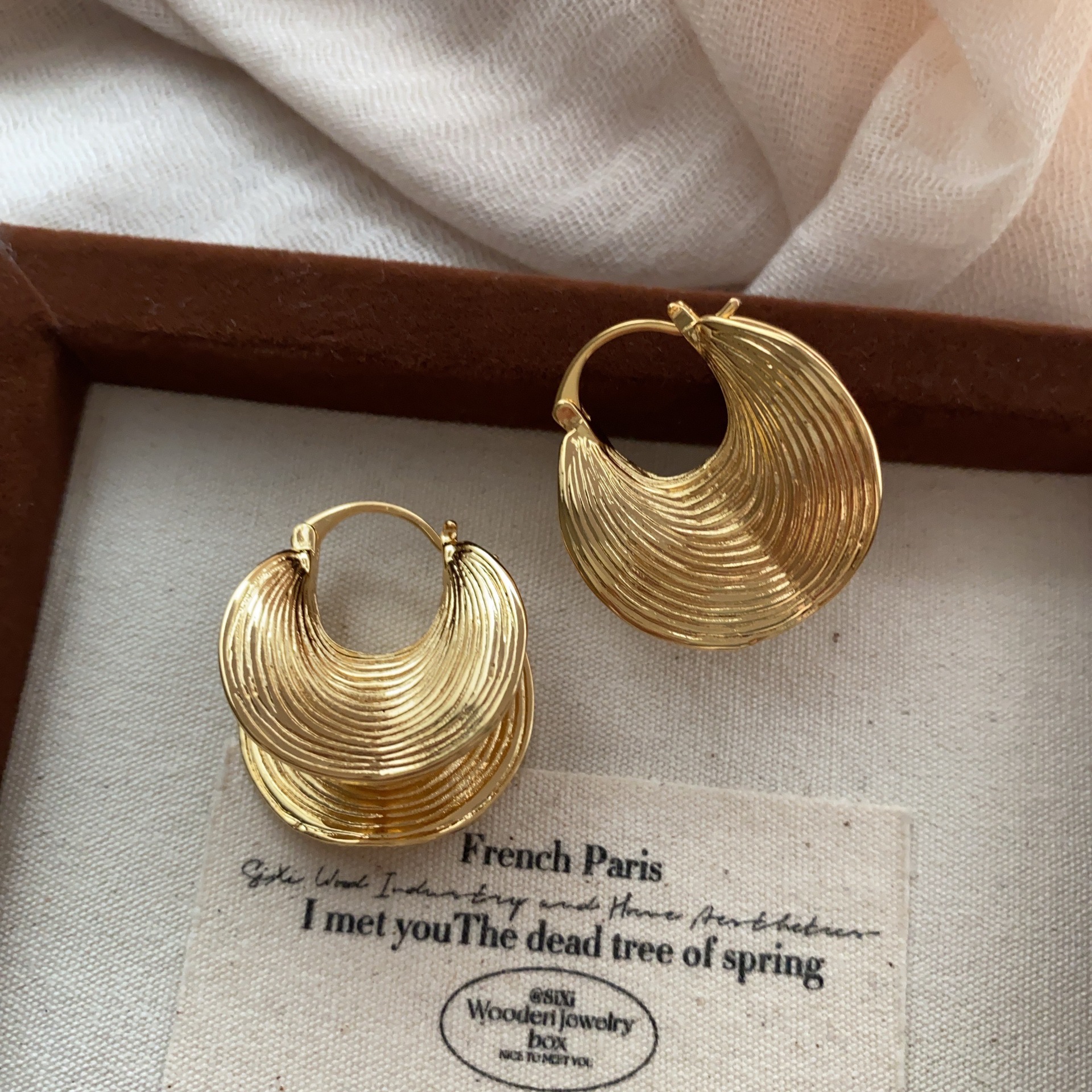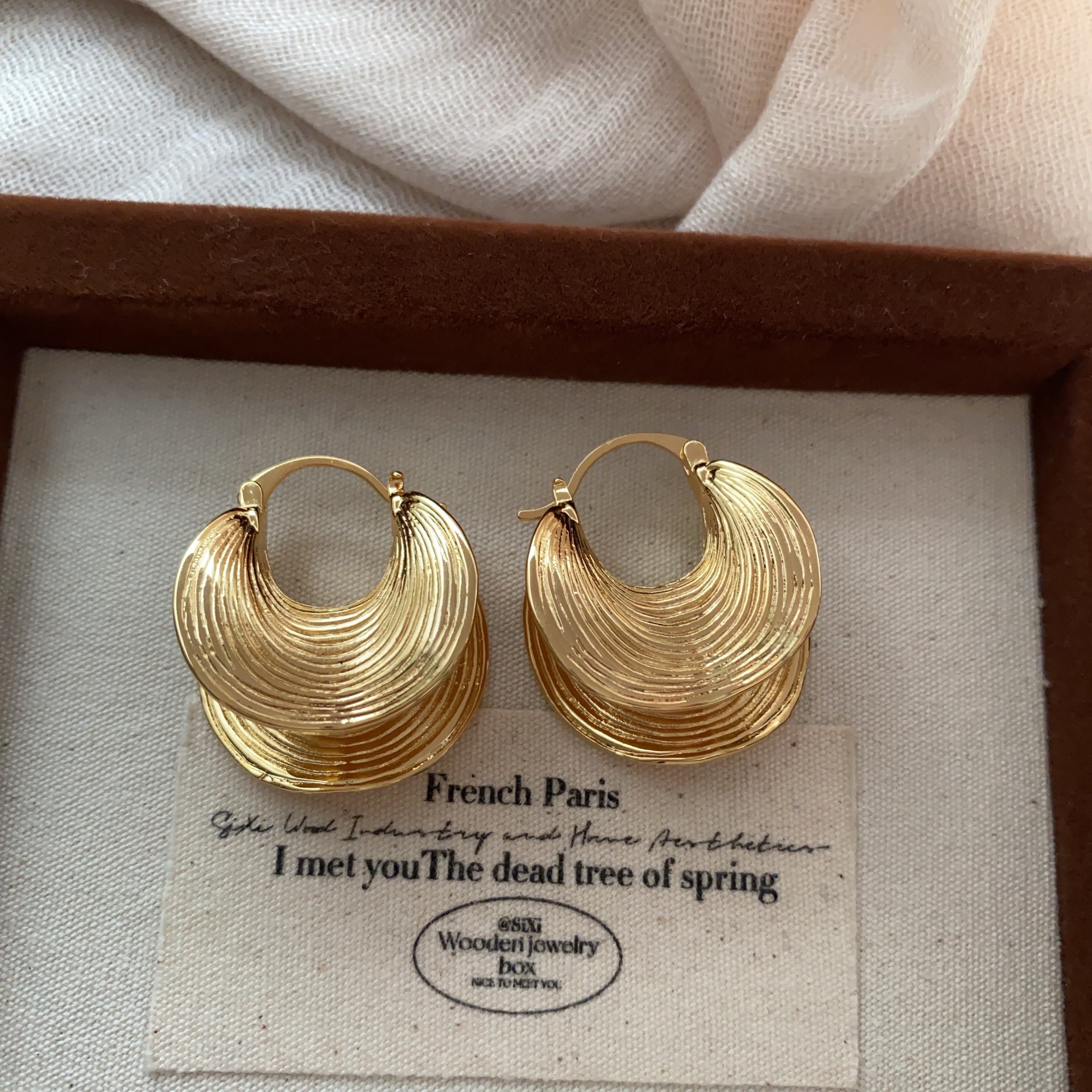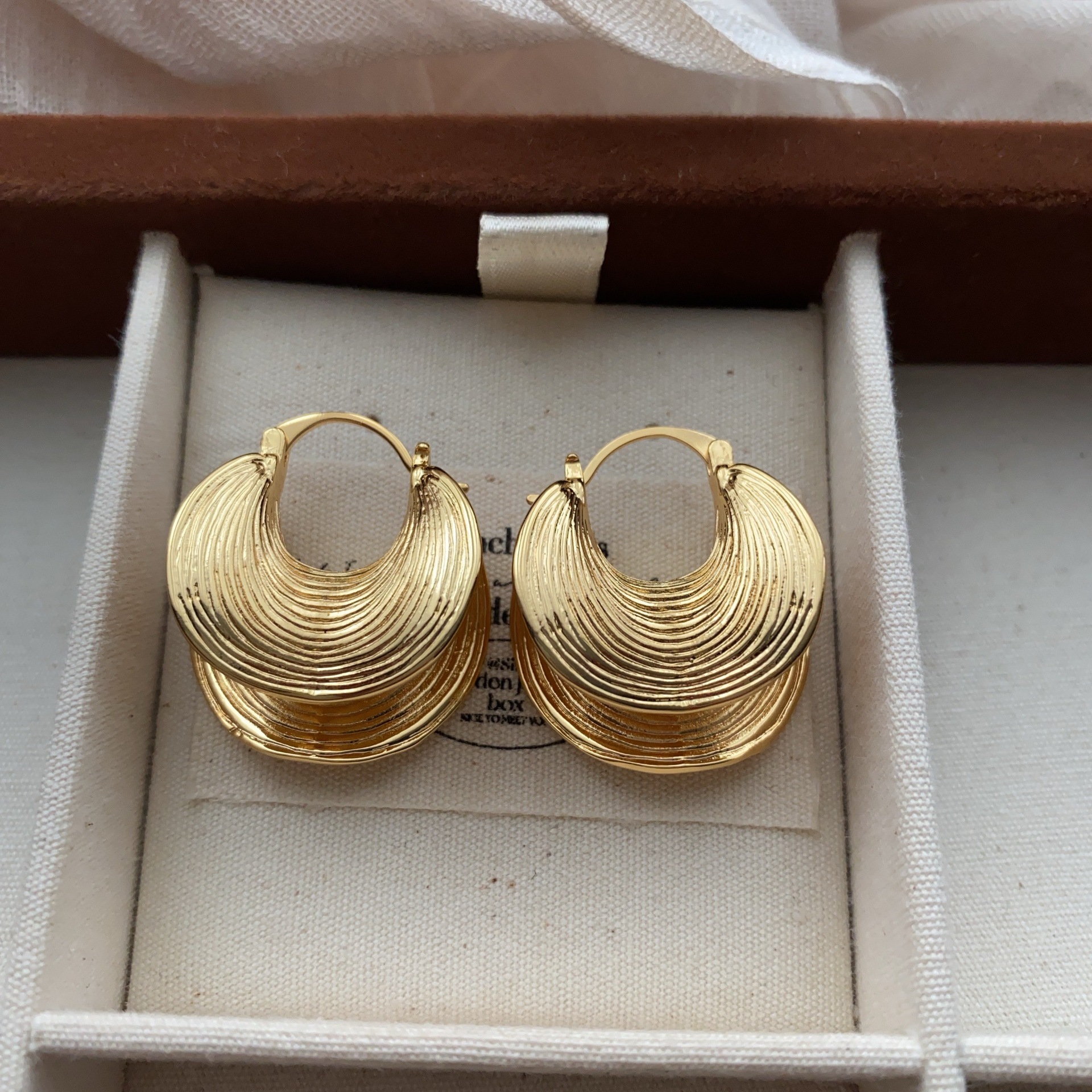 欧美风街拍洋气时髦百搭复古夸张黄铜镀金不规则条纹性感大耳环女