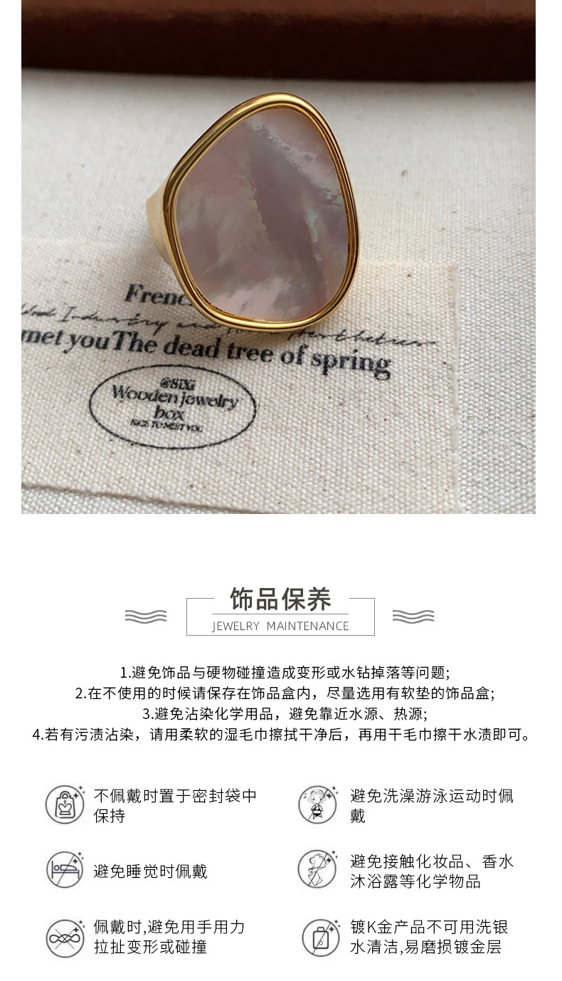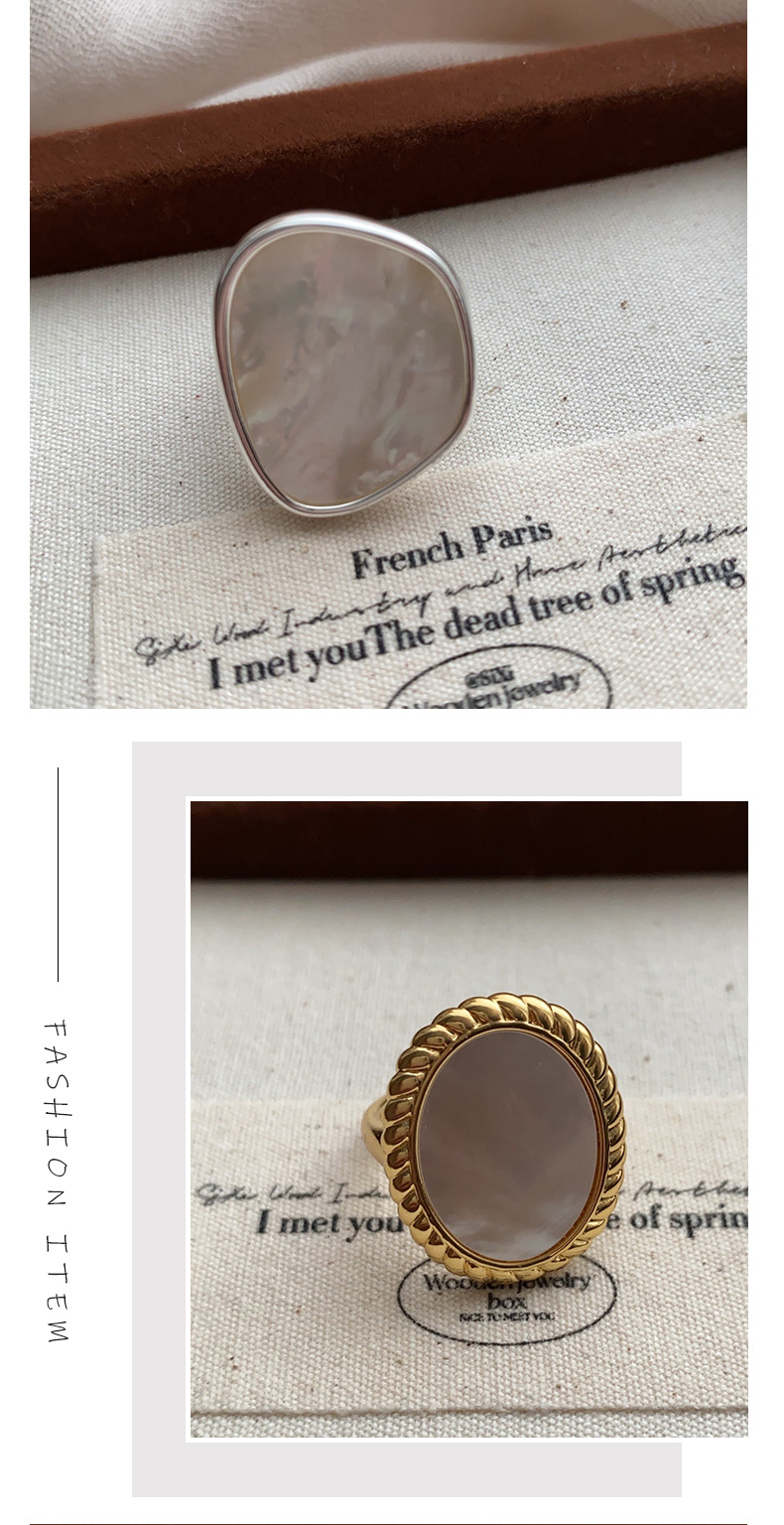 韩版铜镀厚银椭圆贝母戒指女复古时尚几何不规则开口指环嘻哈食指