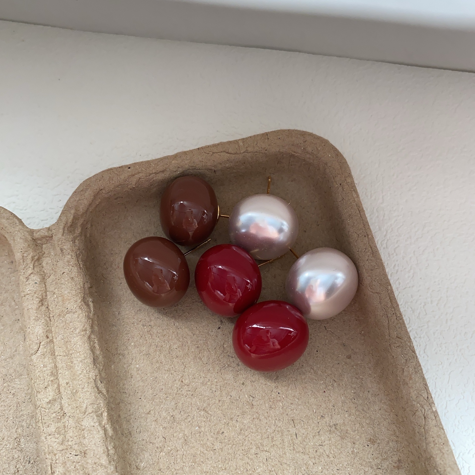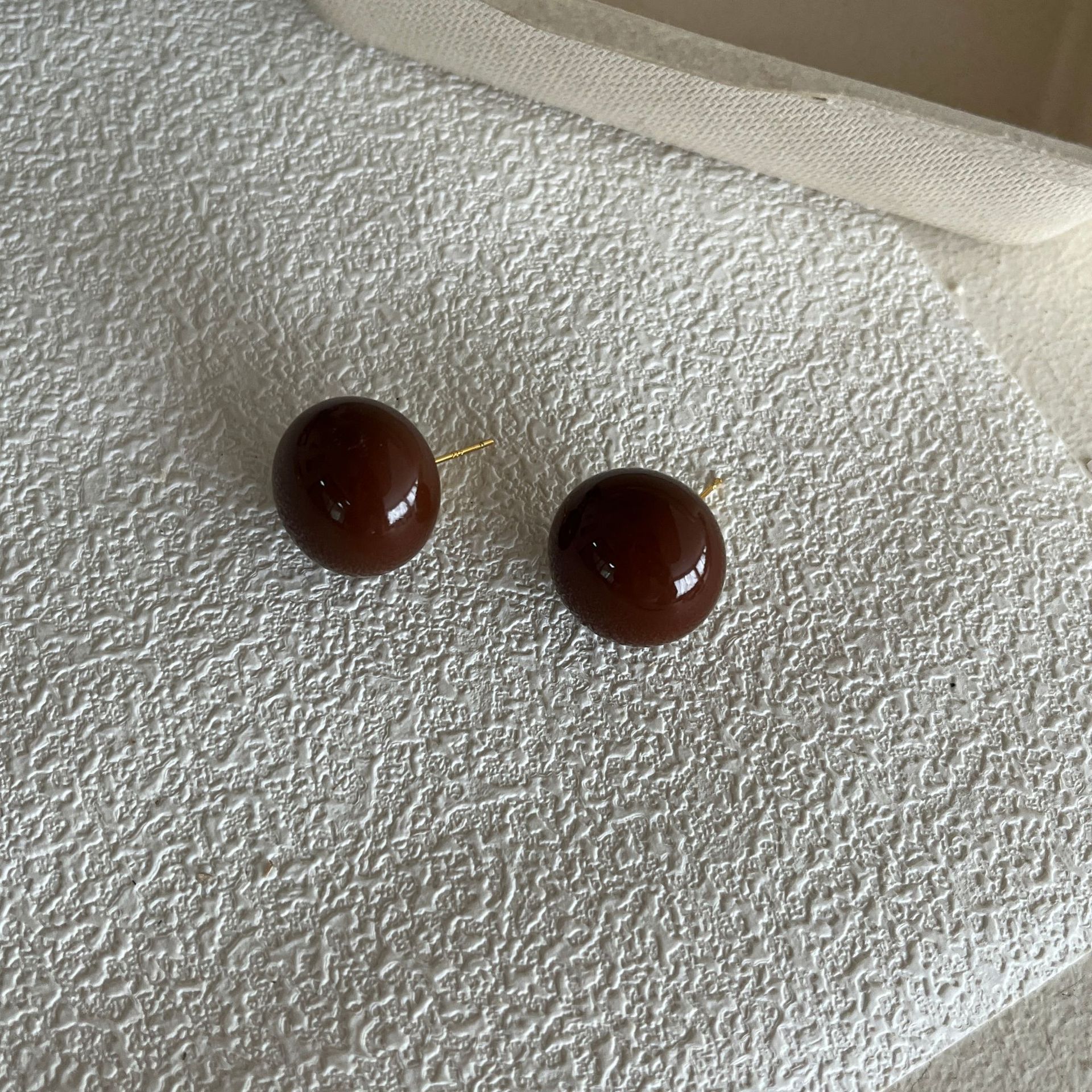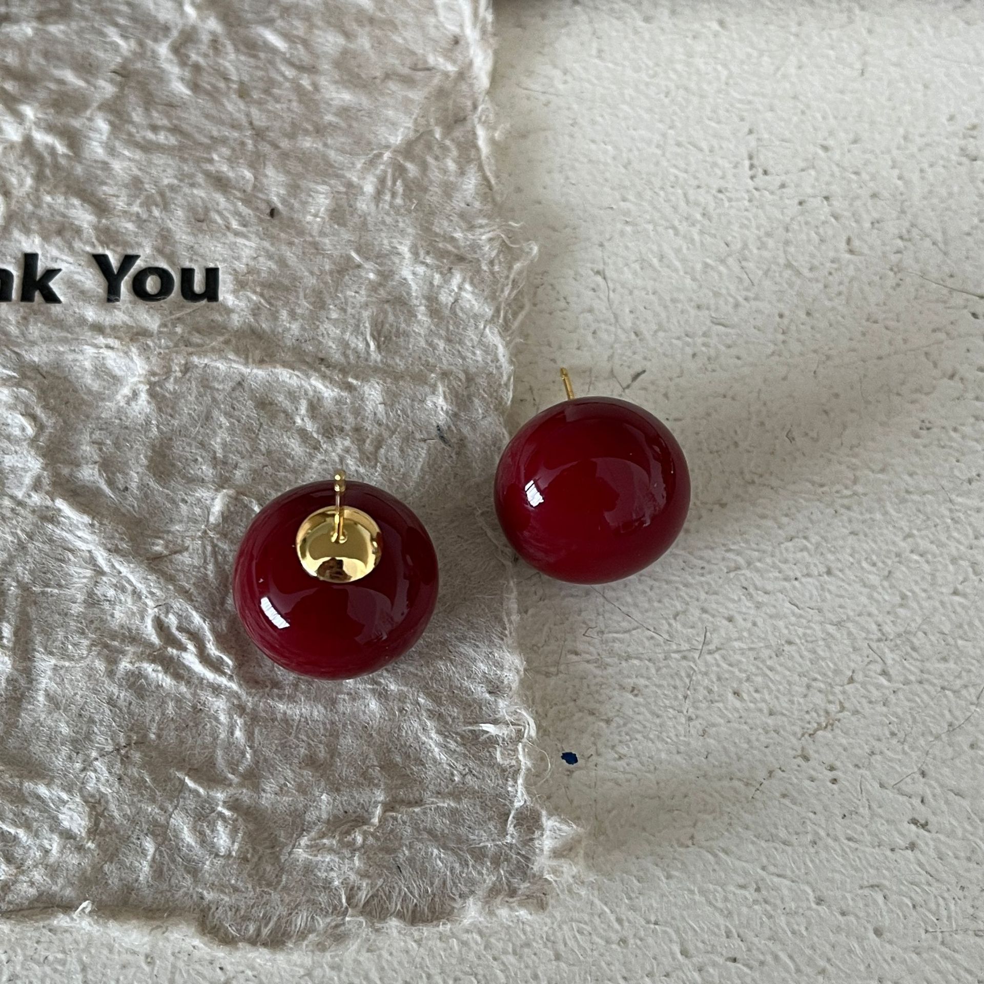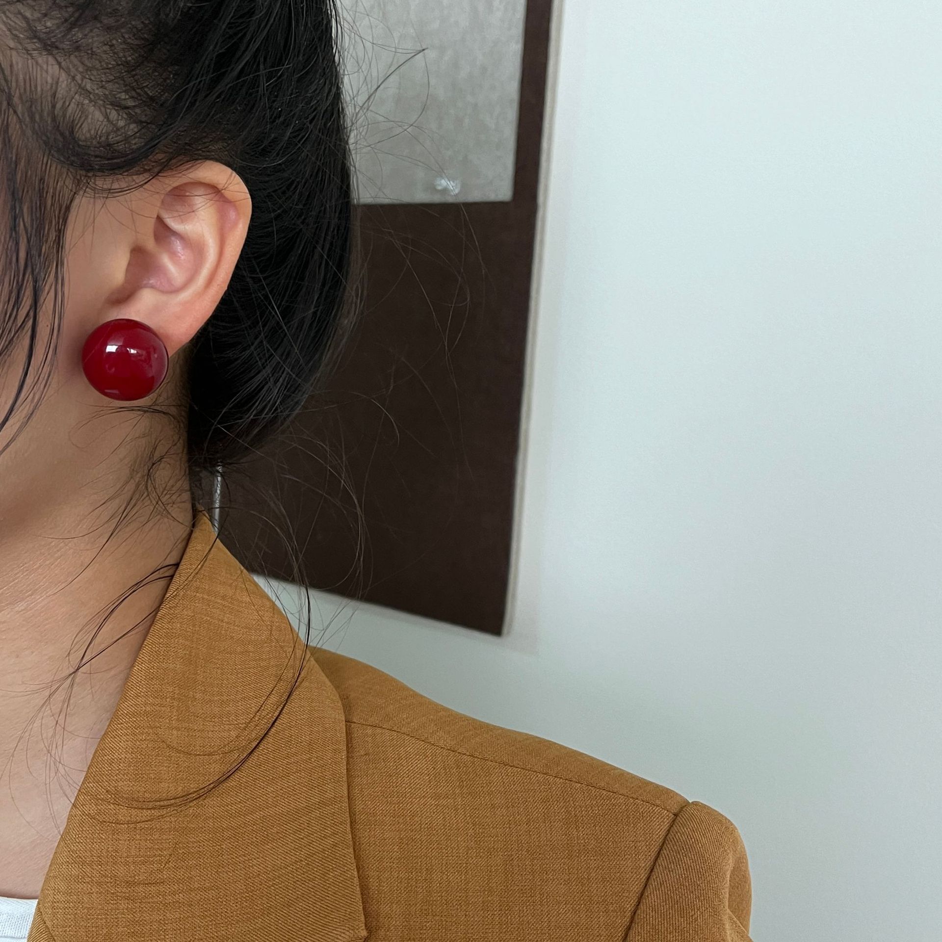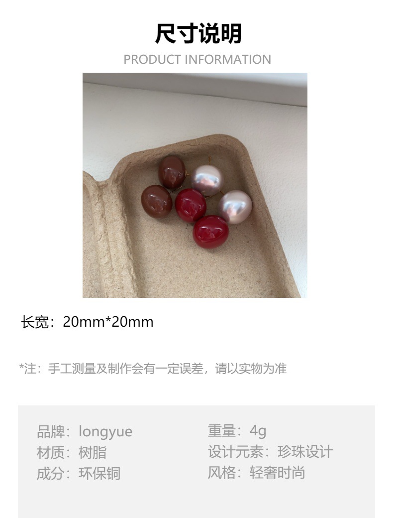 安克拉红色豆豆耳钉女复古滴油简约耳环秋冬新年过年独特百搭耳饰