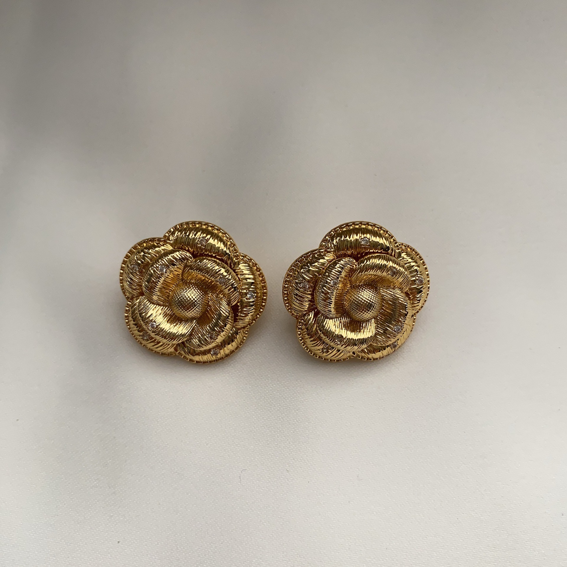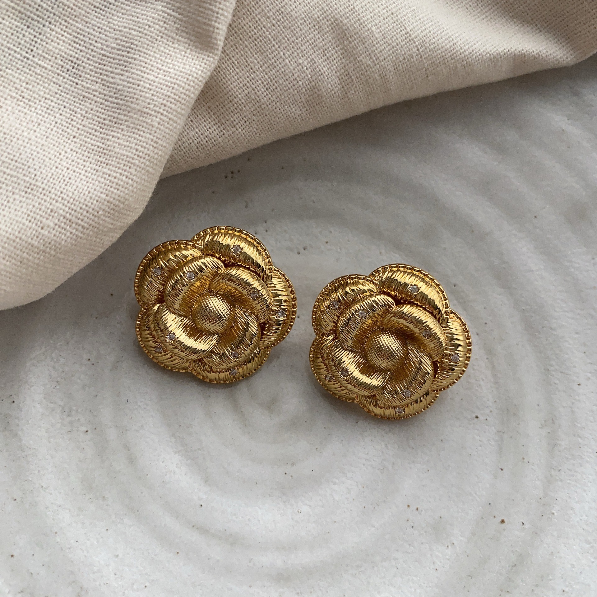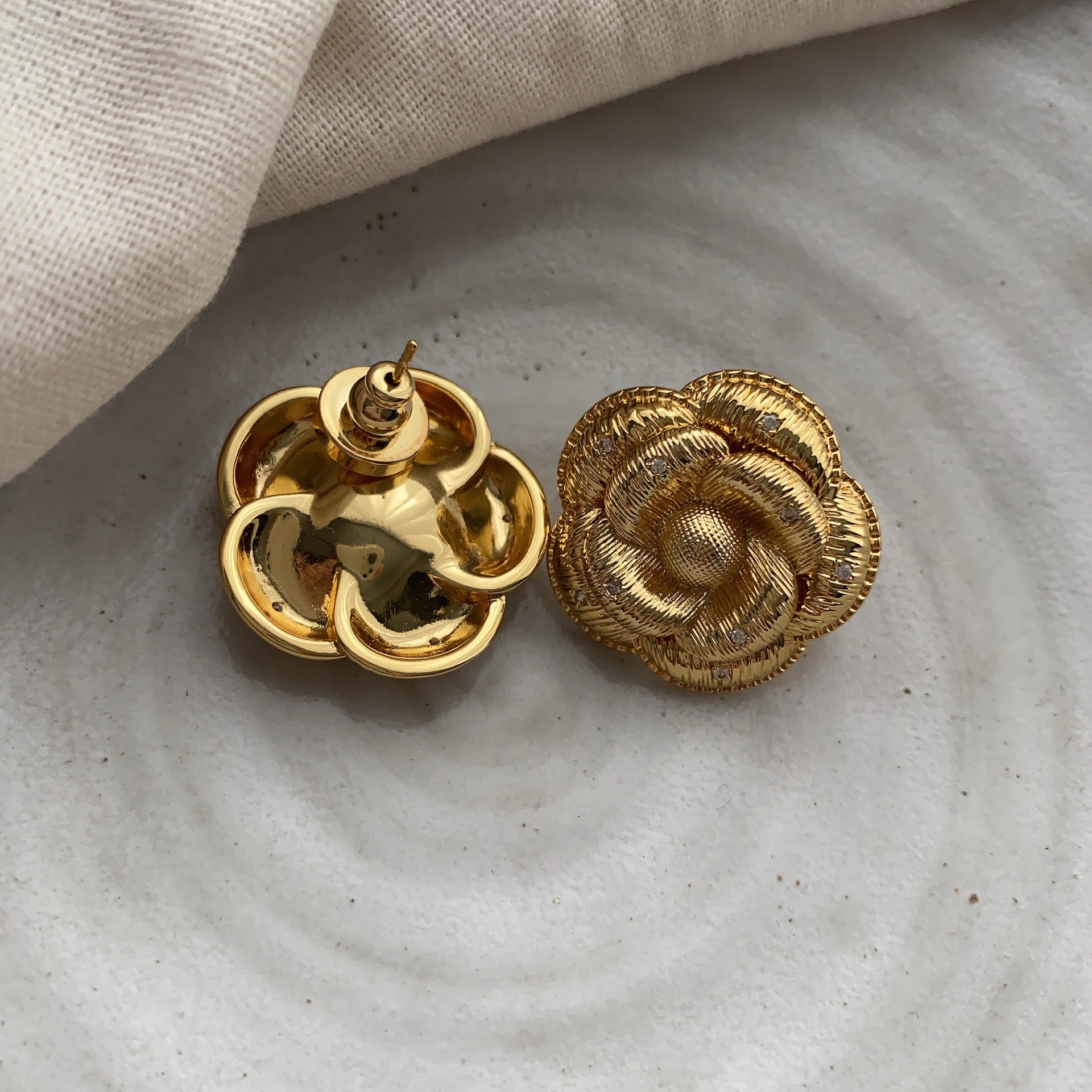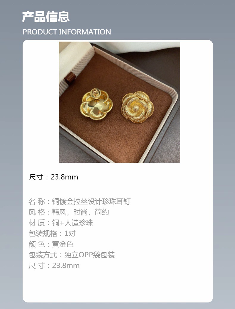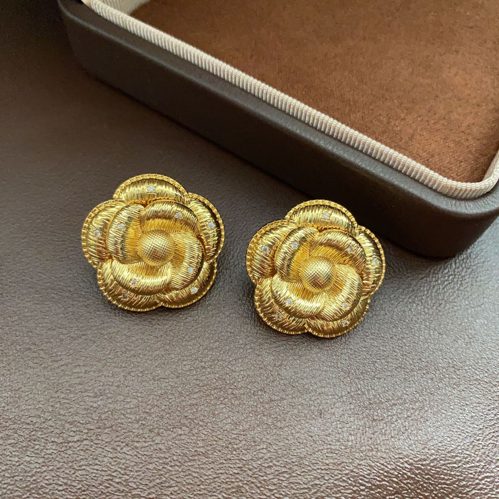 法式小众个性拉丝设计山茶花轻奢时尚气质耳钉复古高级感百搭耳饰