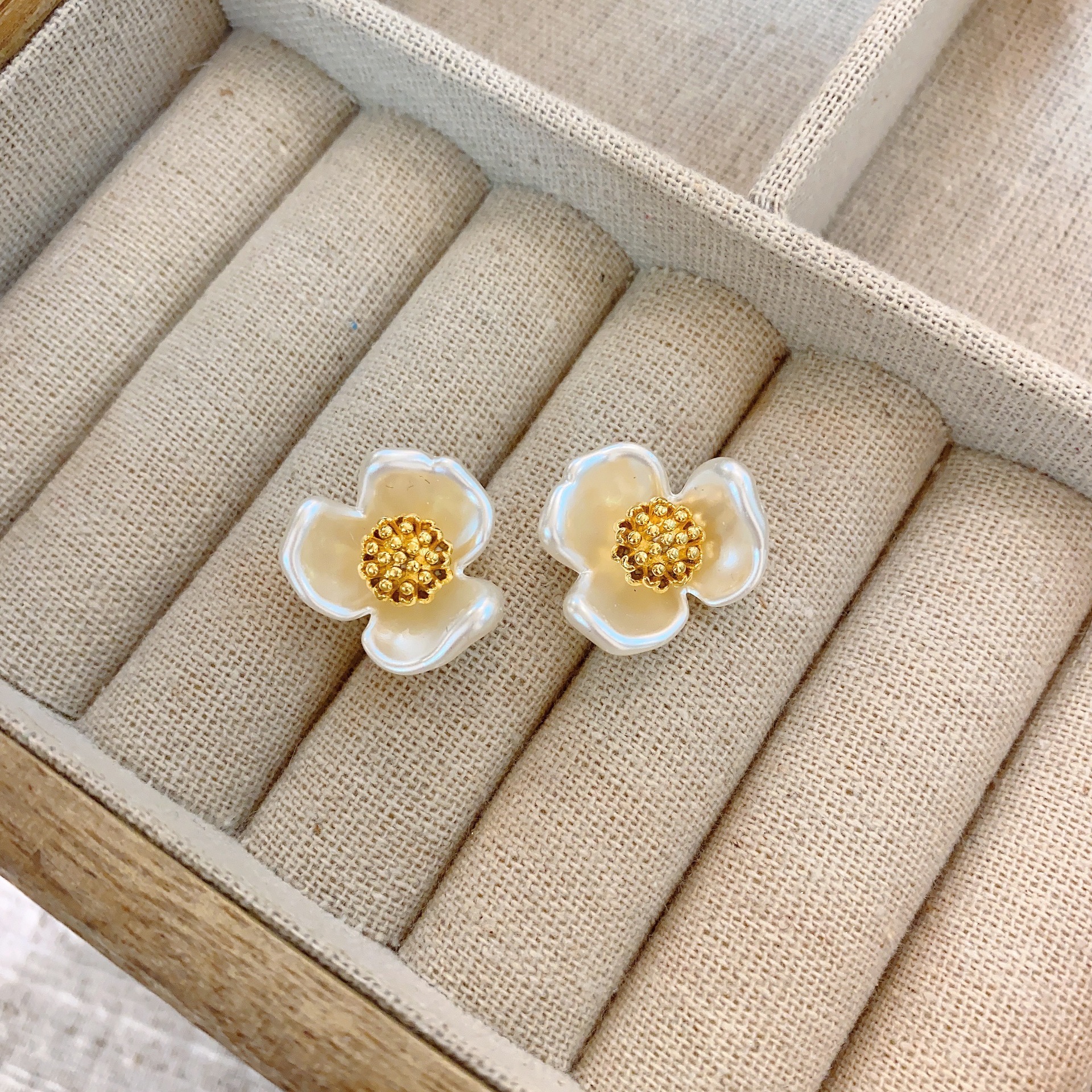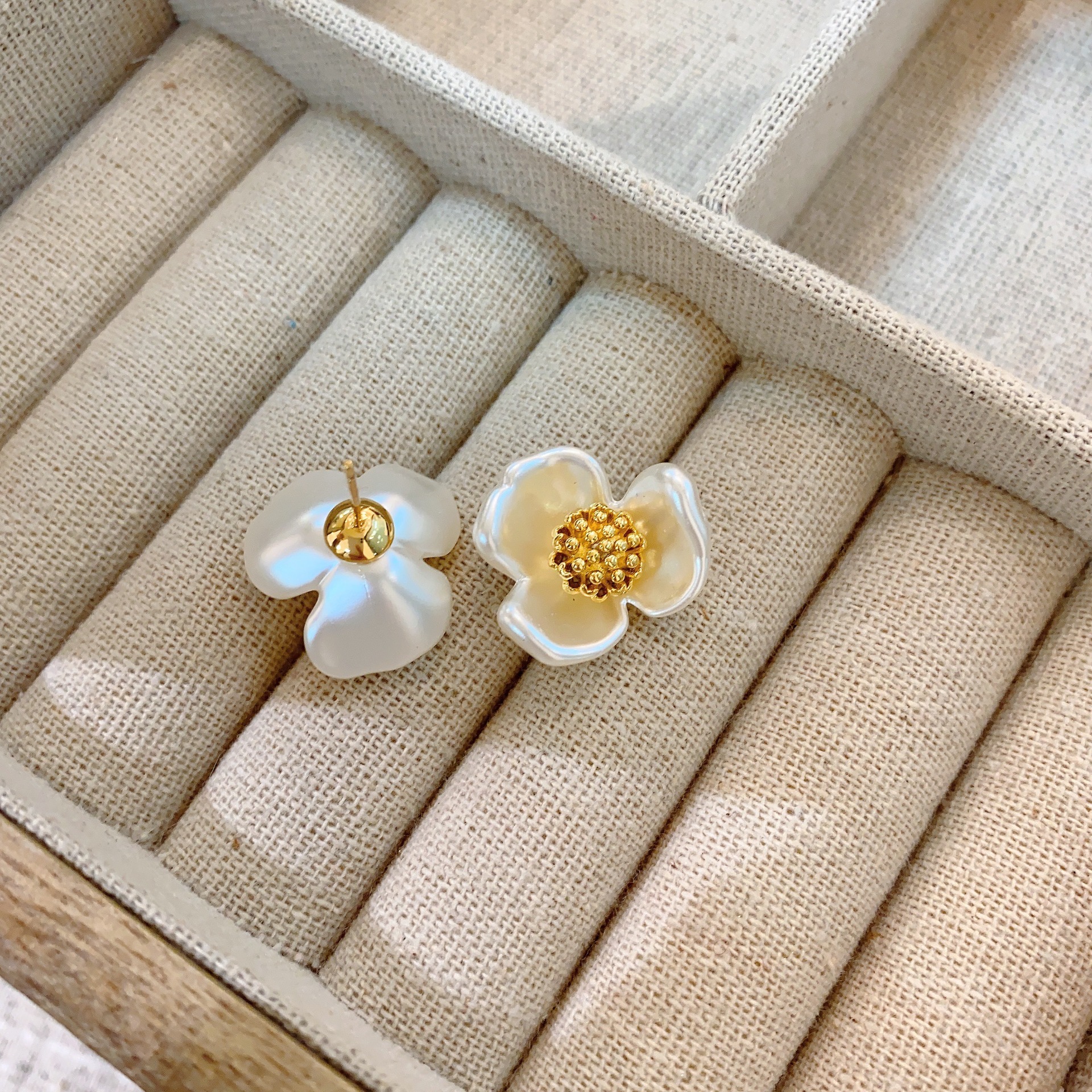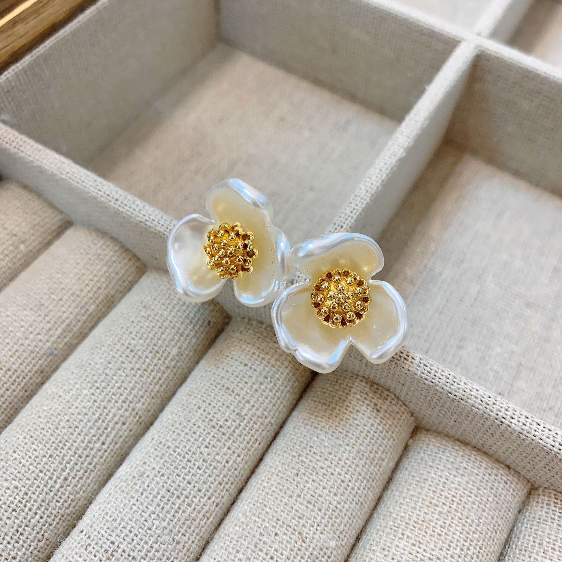 韩国简约小清新花朵耳钉气质百搭小巧通勤气质耳环小众设计感耳饰
