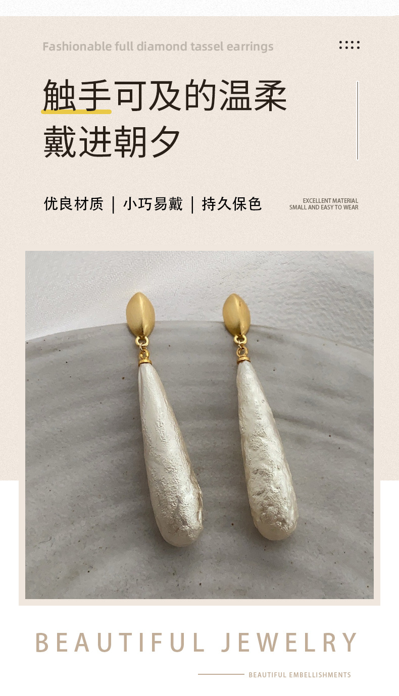 新中式复古大气温婉新款时尚百搭耳环流苏礼服棉花珠长款百搭耳饰