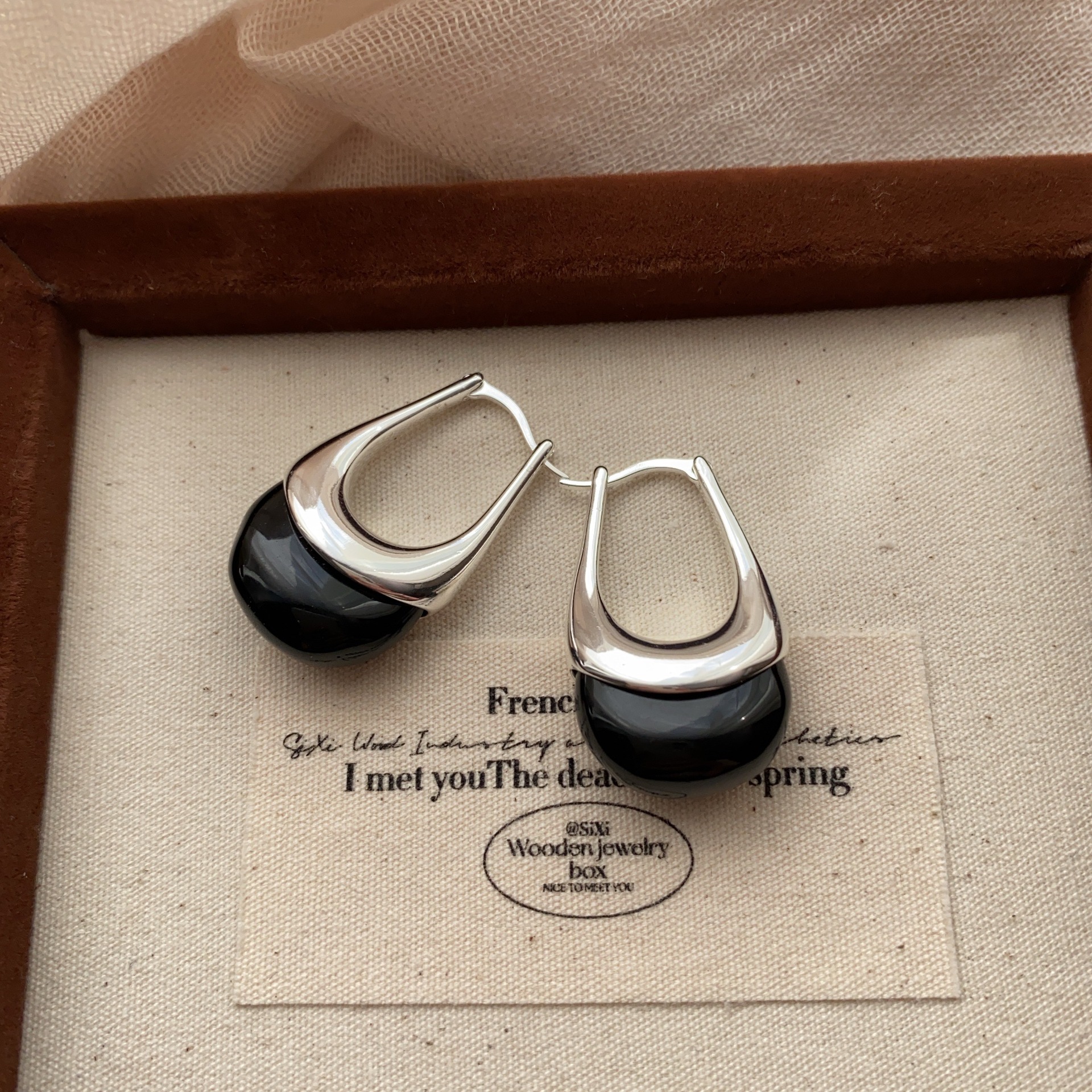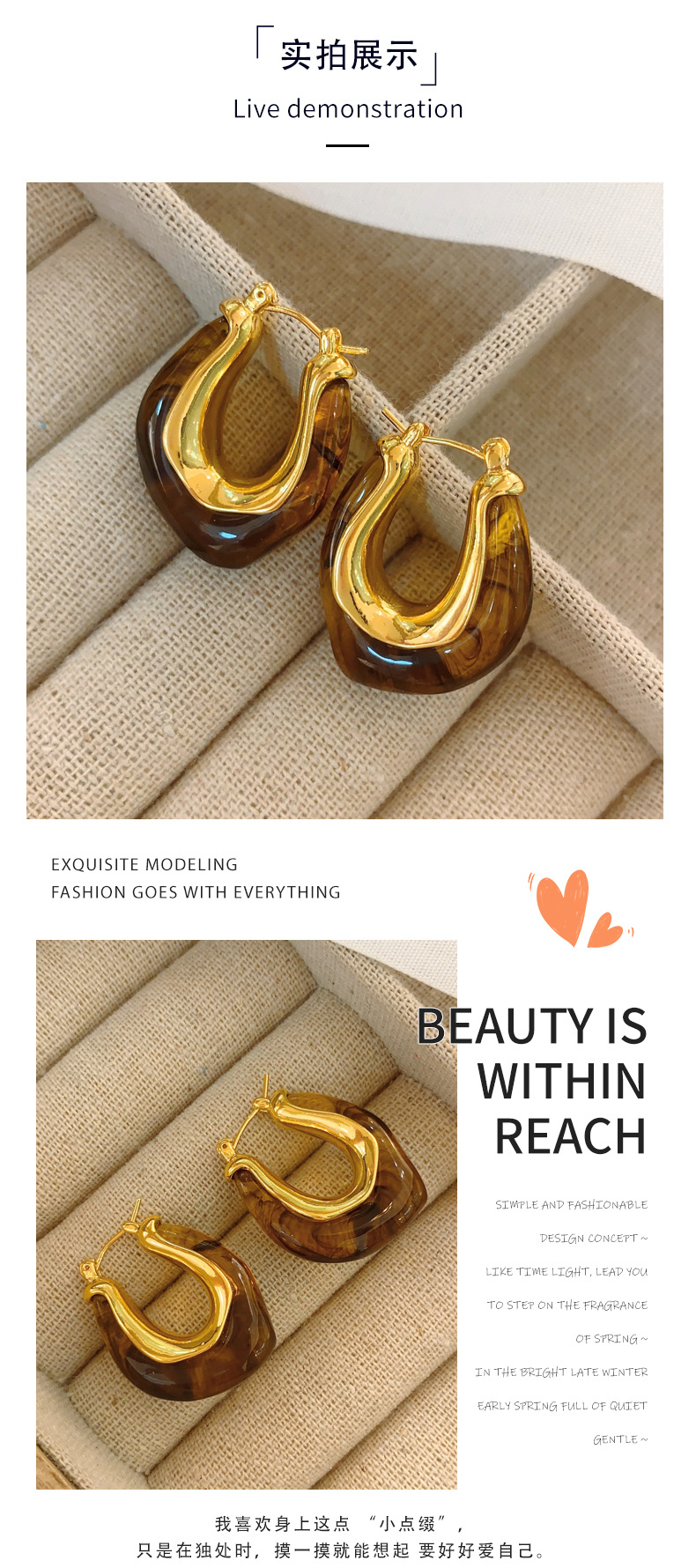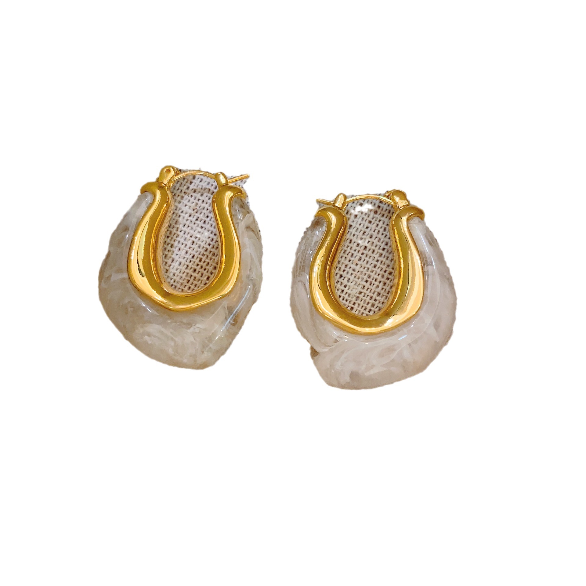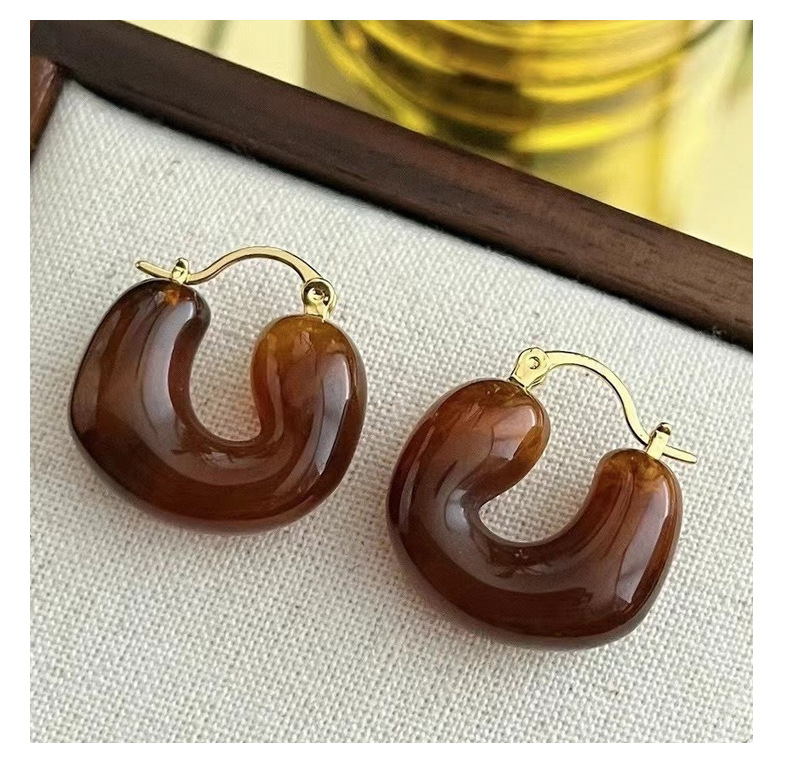 欧美个性时髦复古金属质感琥珀色亚克力耳圈不规则百搭耳环耳饰女