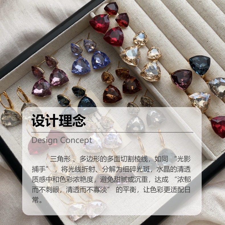 几何锆石吊坠耳钉耳环高级时尚百搭甜美精致气质闪耀华丽戒指耳饰
