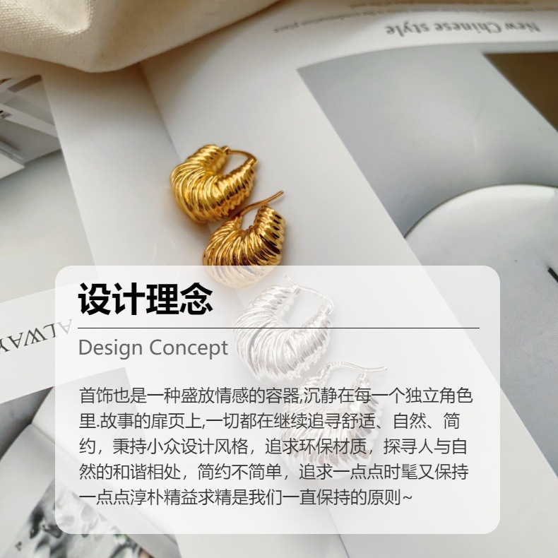 欧美冷淡风小众设计感黄铜镀金气质百搭金属缠绕牛角时尚耳环耳扣