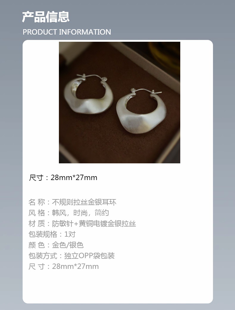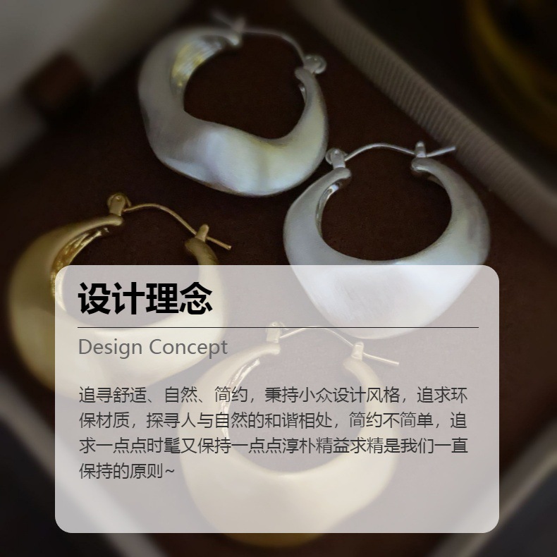 新款不规则设计耳圈法式欧美手工拉丝小众设计高级感精致百搭耳环