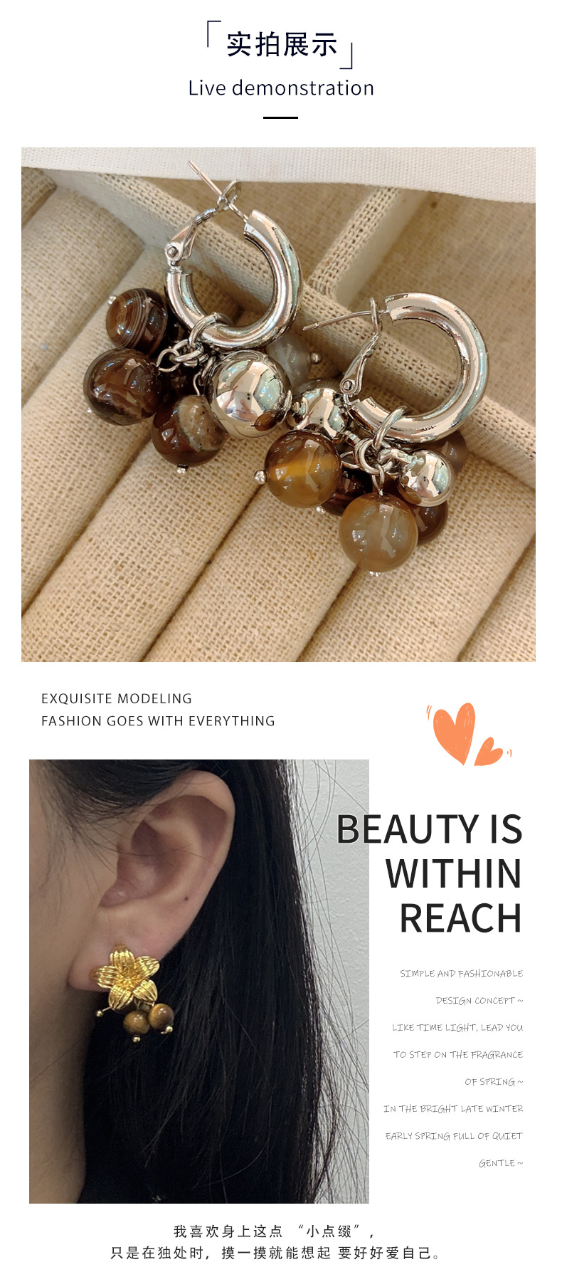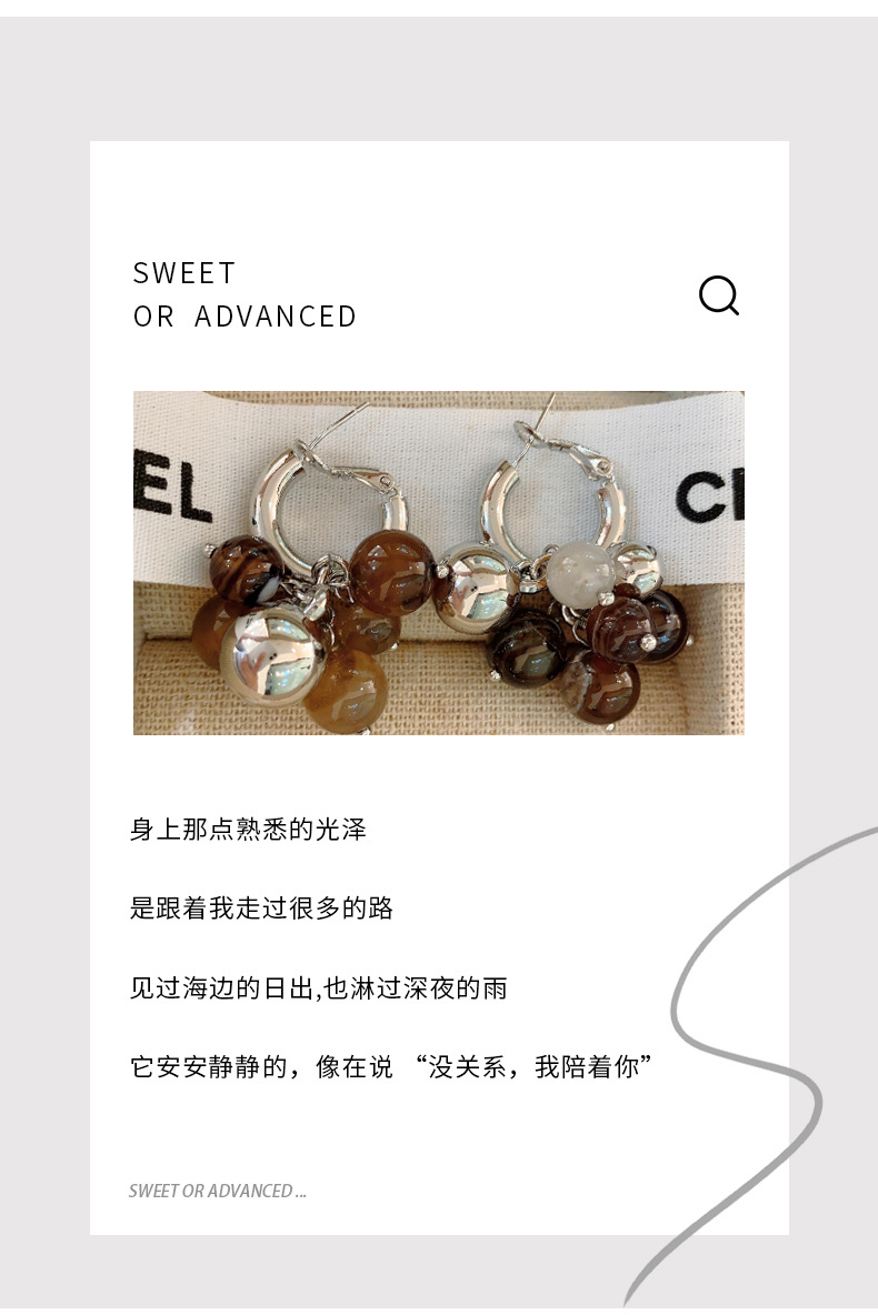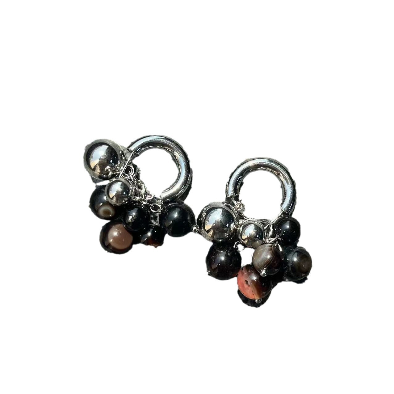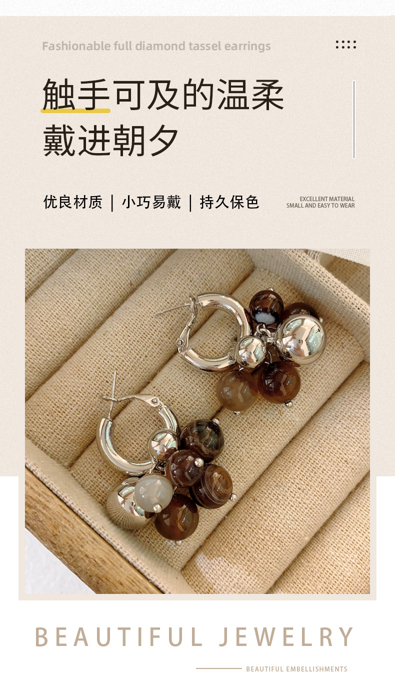 美拉德欧美复古咖色天然石圆环2025年新款小众设计气质耳钉耳扣女