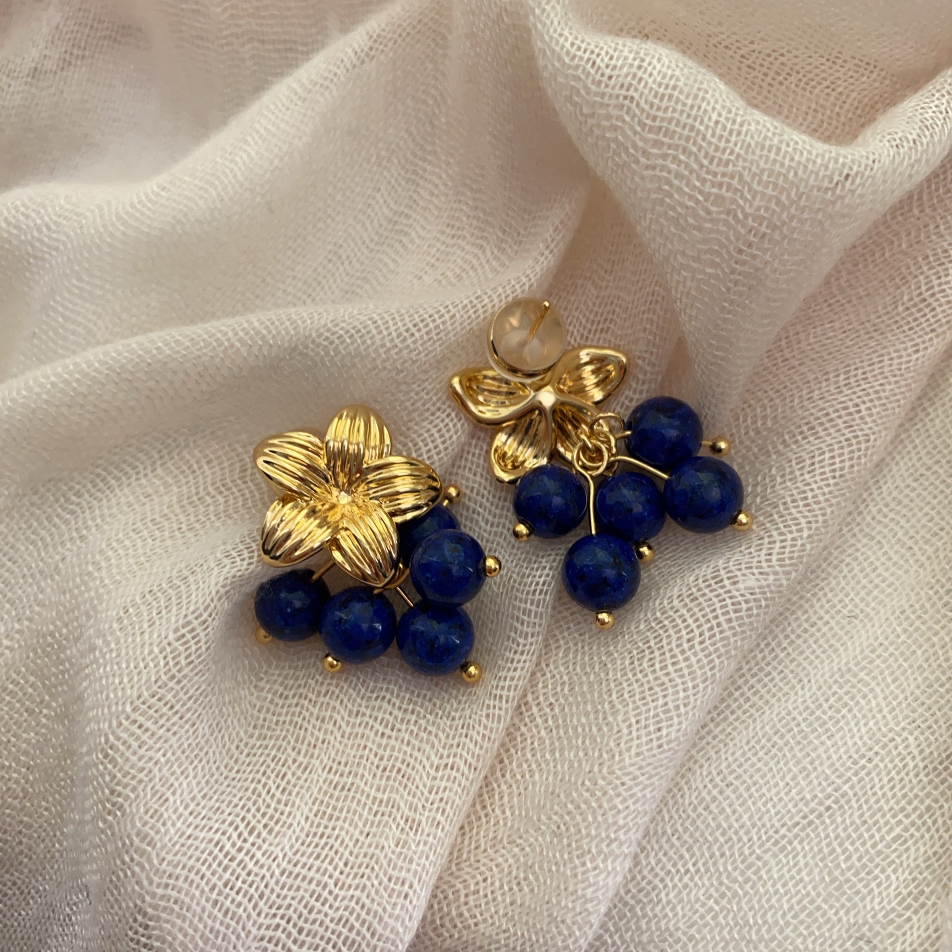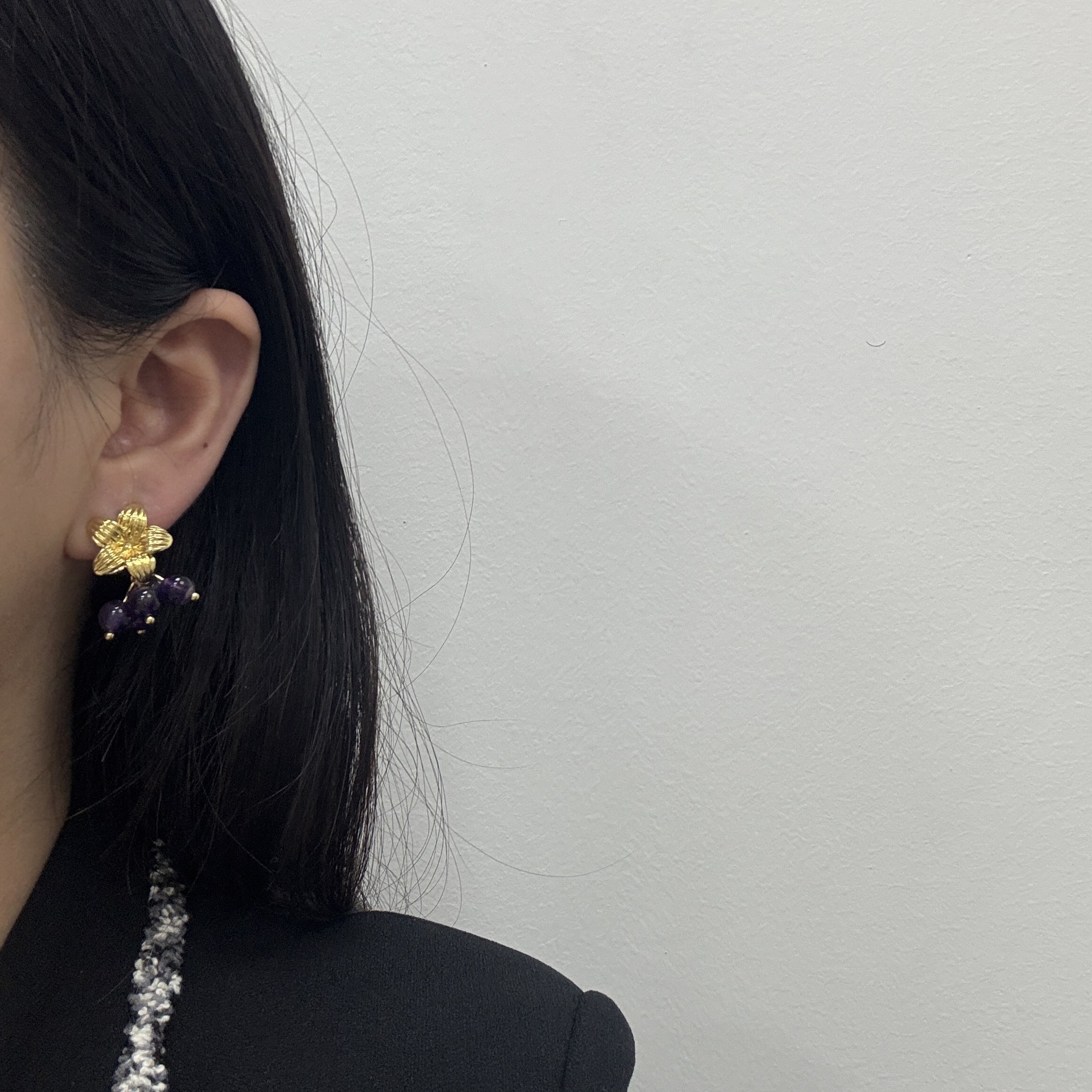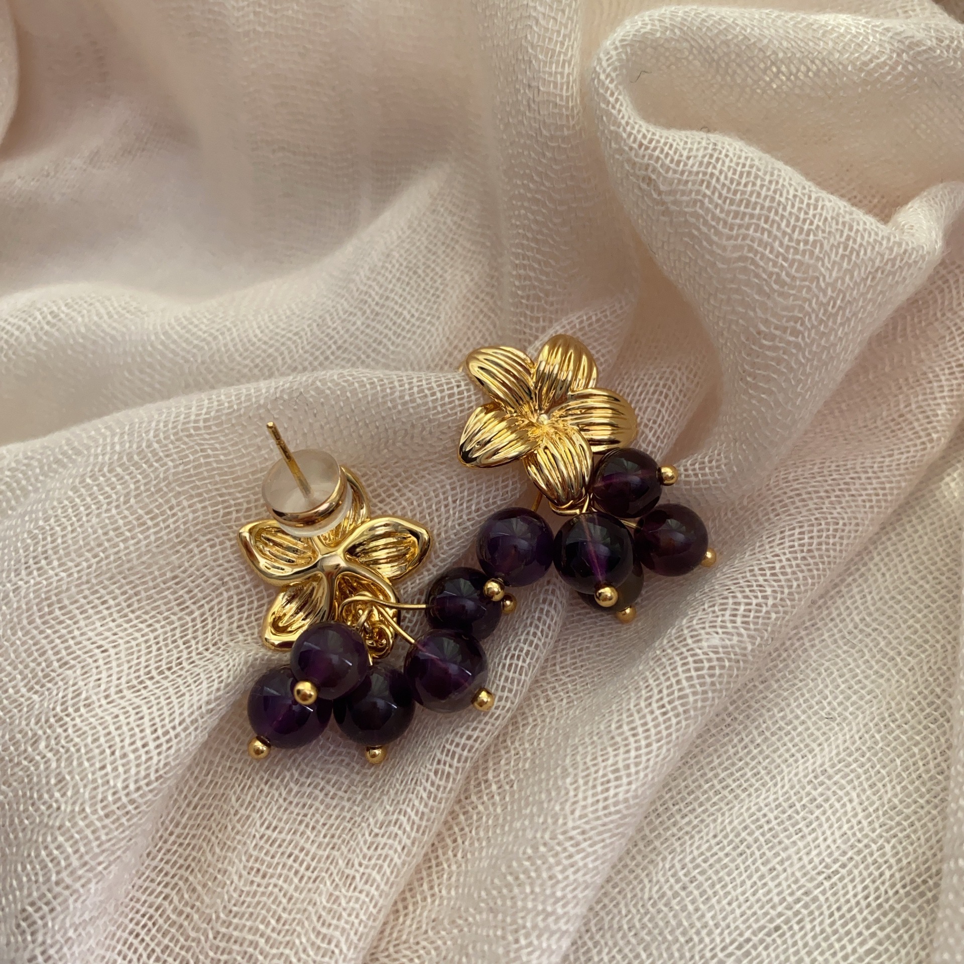美拉德欧美复古咖色天然石圆环2025年新款小众设计气质耳钉耳扣女