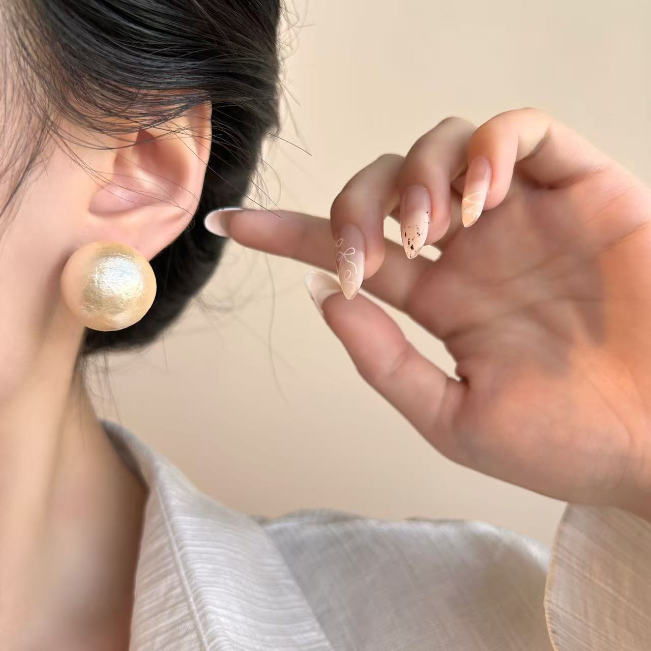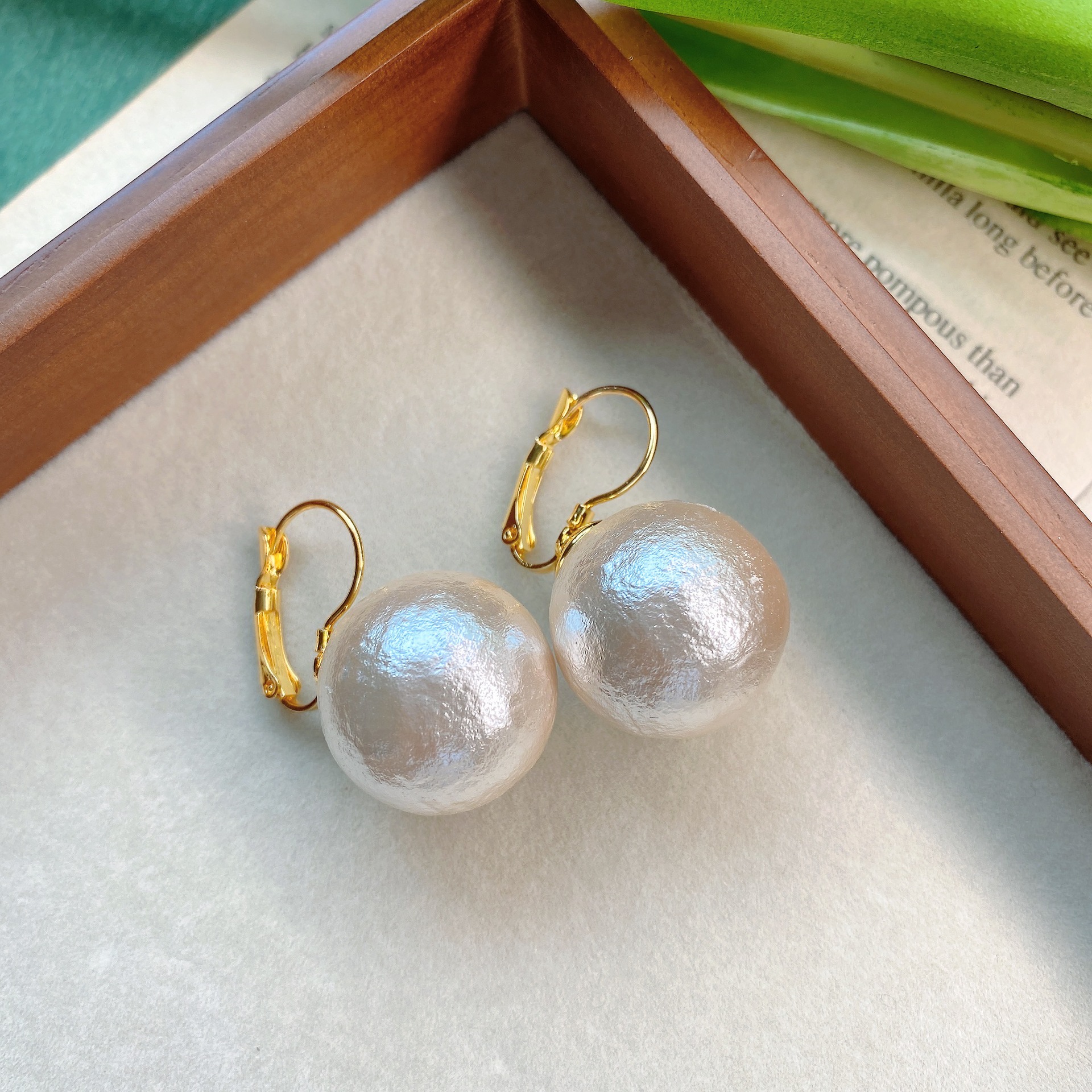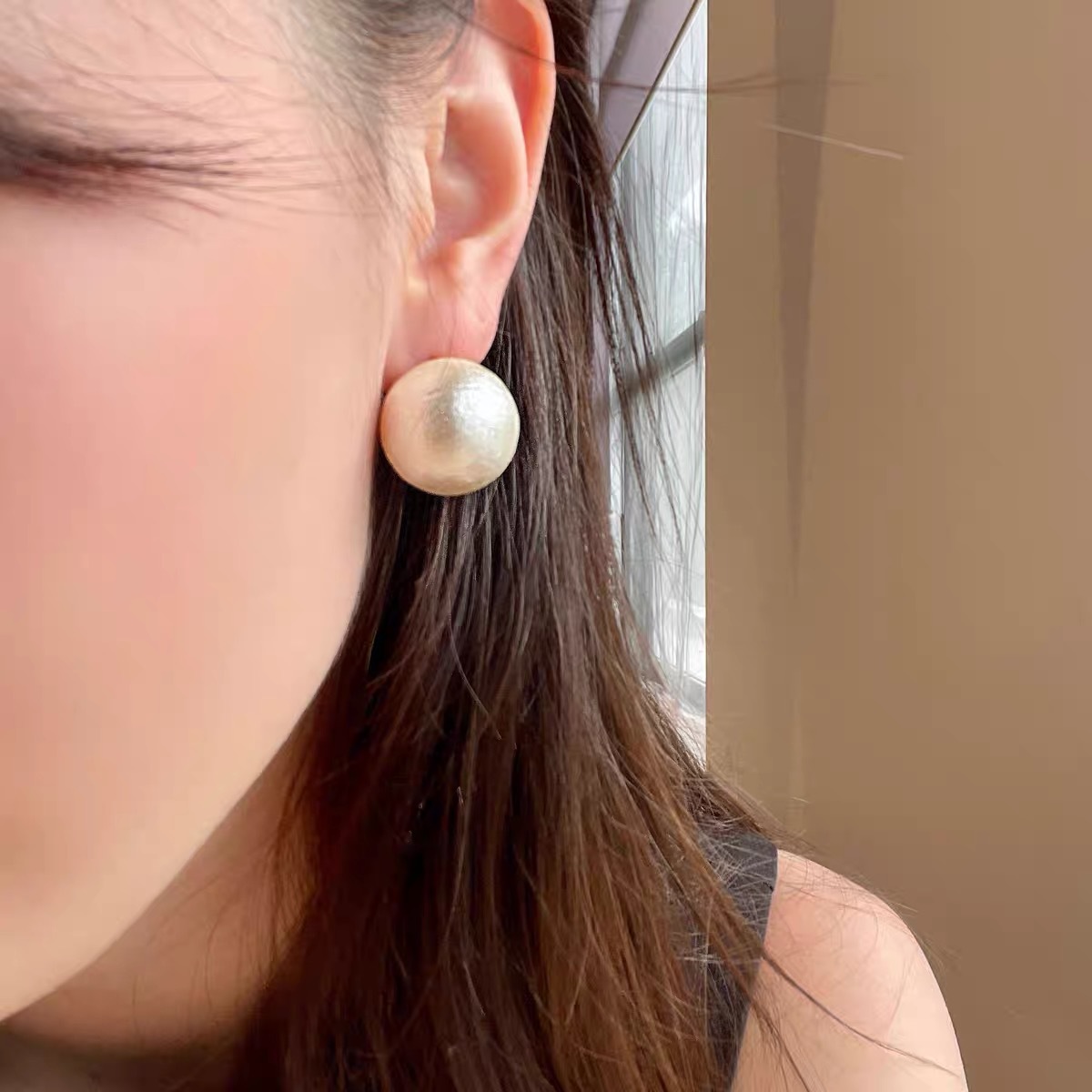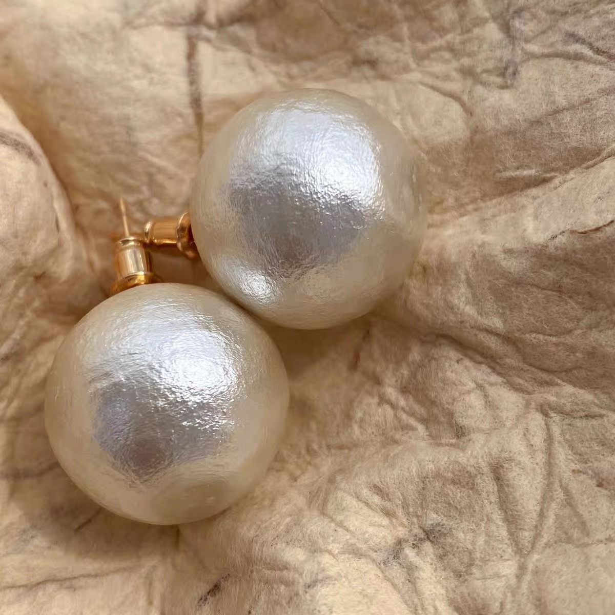 名人同款大珍珠耳钉女夏气质满满法式复古棉花耳环通勤时尚耳饰女