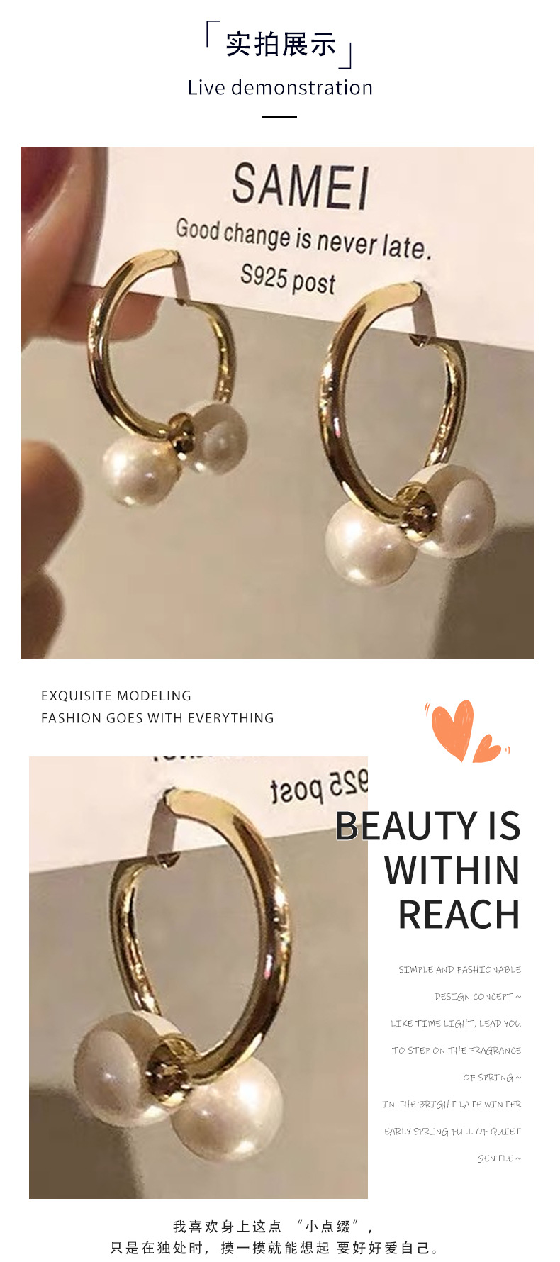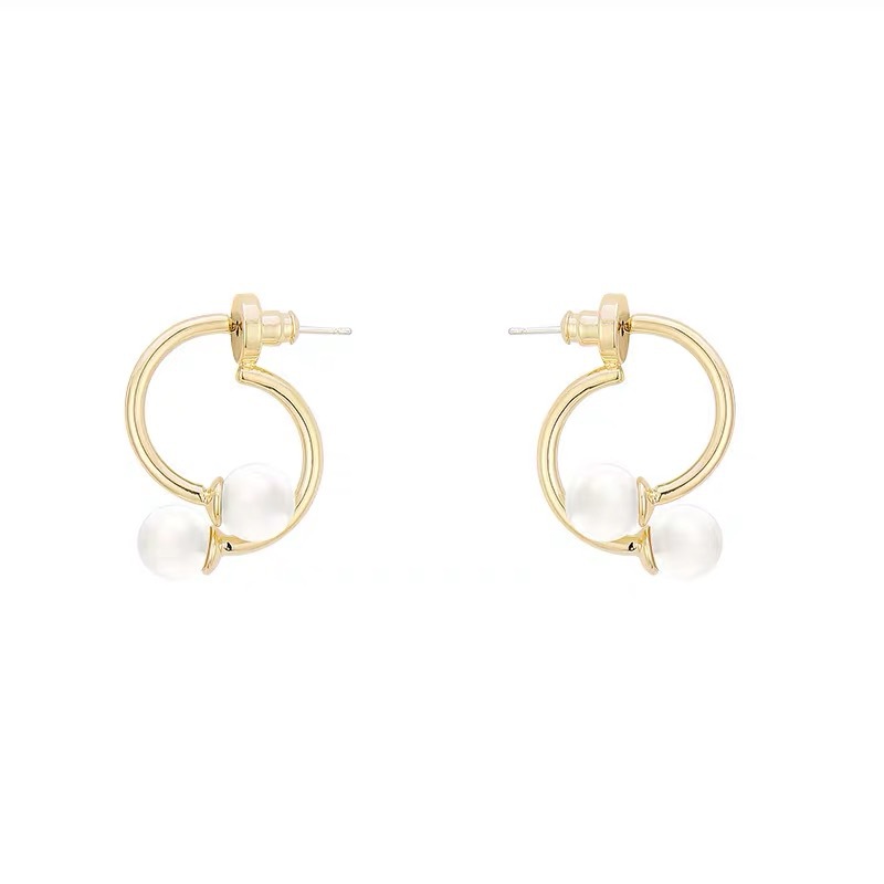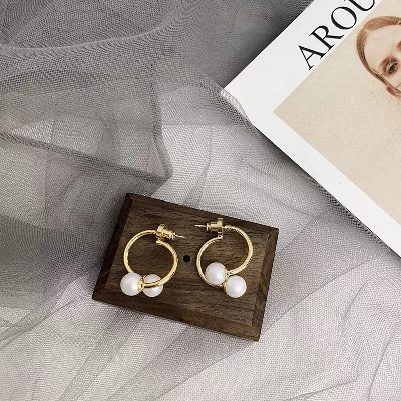 两种戴法珍珠耳钉独特感简约双字母设计气质短款小香风耳钉耳环女
