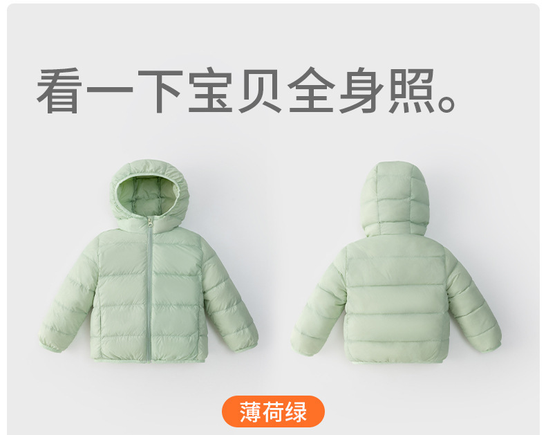 宝宝冬季羽绒服中小童冬款加厚连帽羽绒外套儿童纯色中短款外套