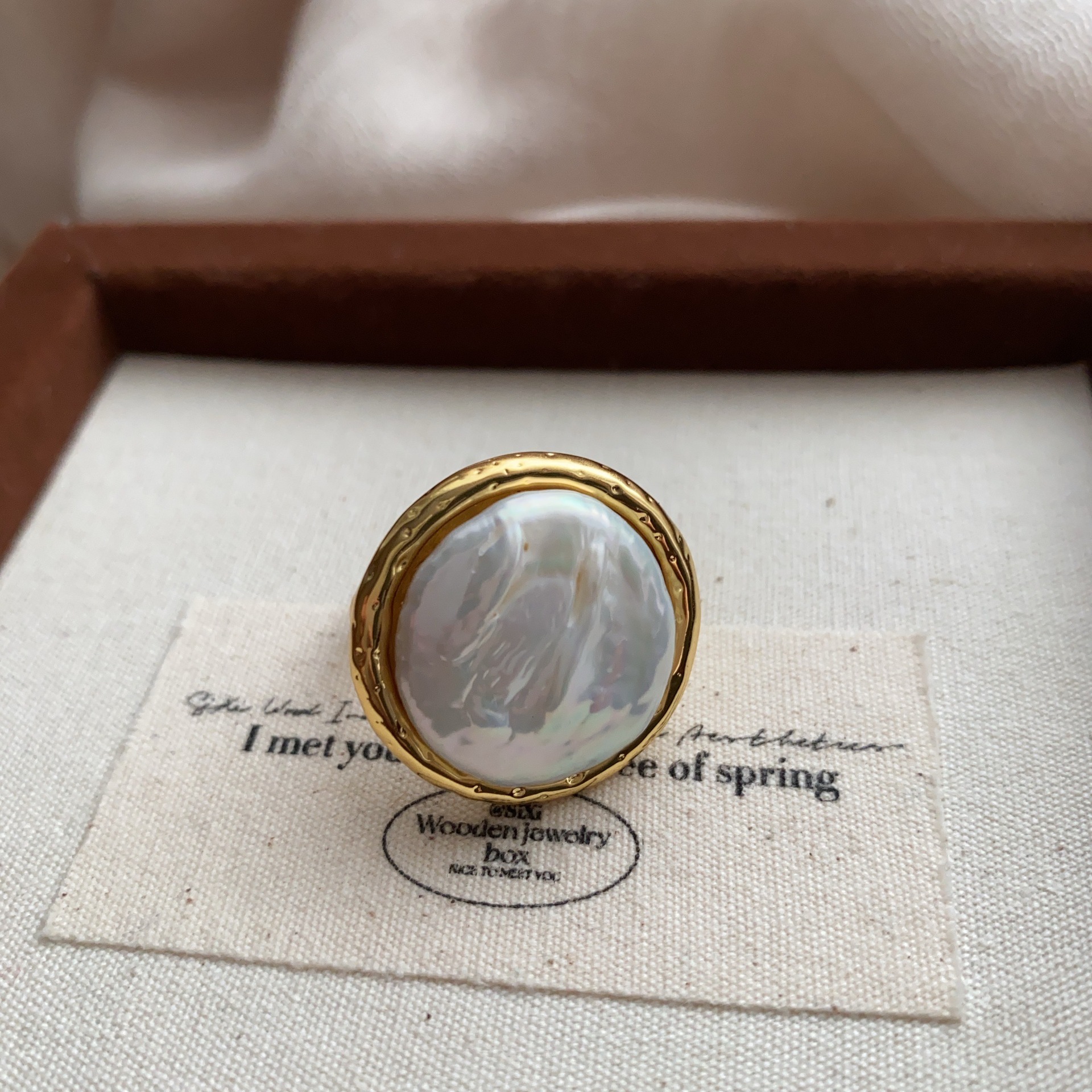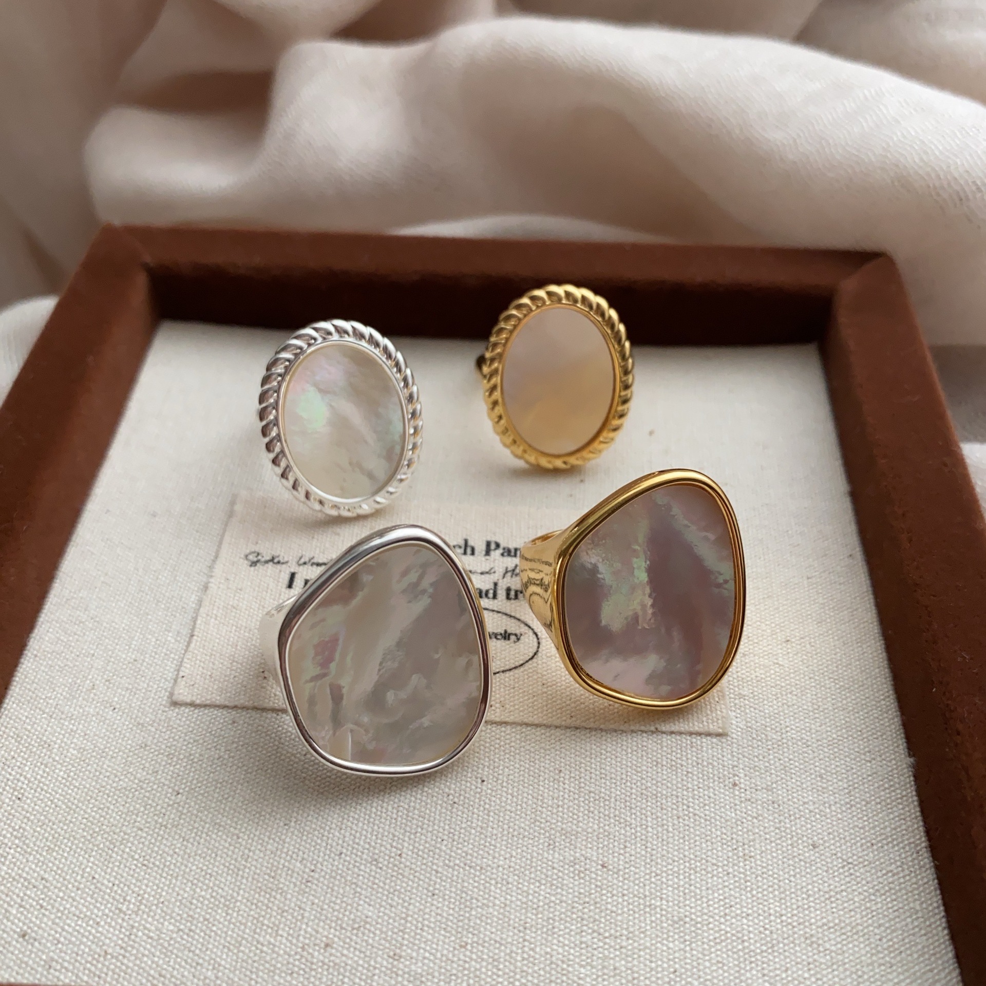 天然纹理贝母圆形食指戒指贝壳轻奢指环小众设计高级时尚个性百搭
