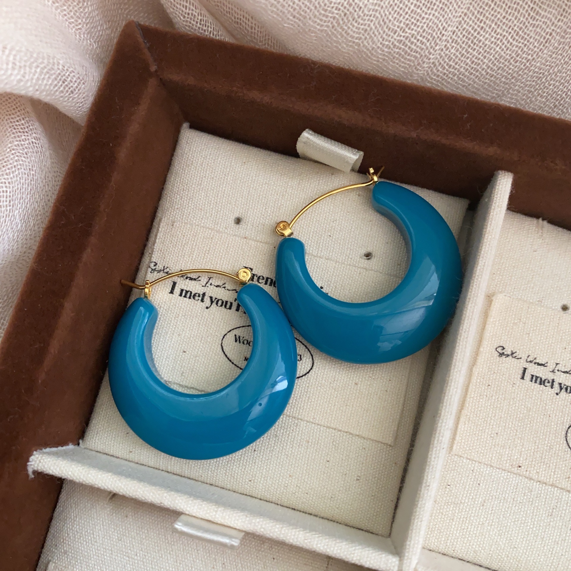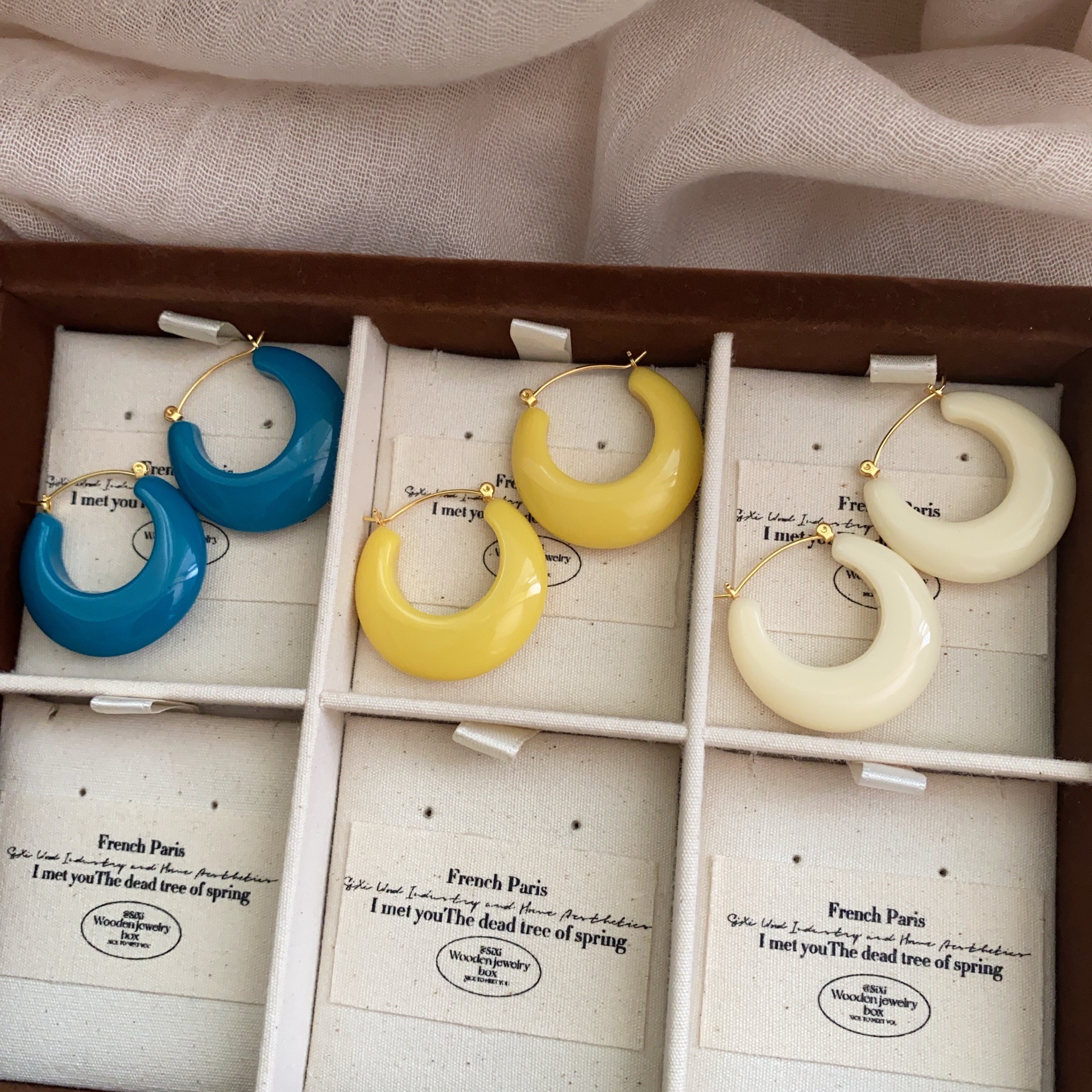 韩系小清新半圆形耳钉气质百搭耳环糖果色个性高级感日常通勤耳饰