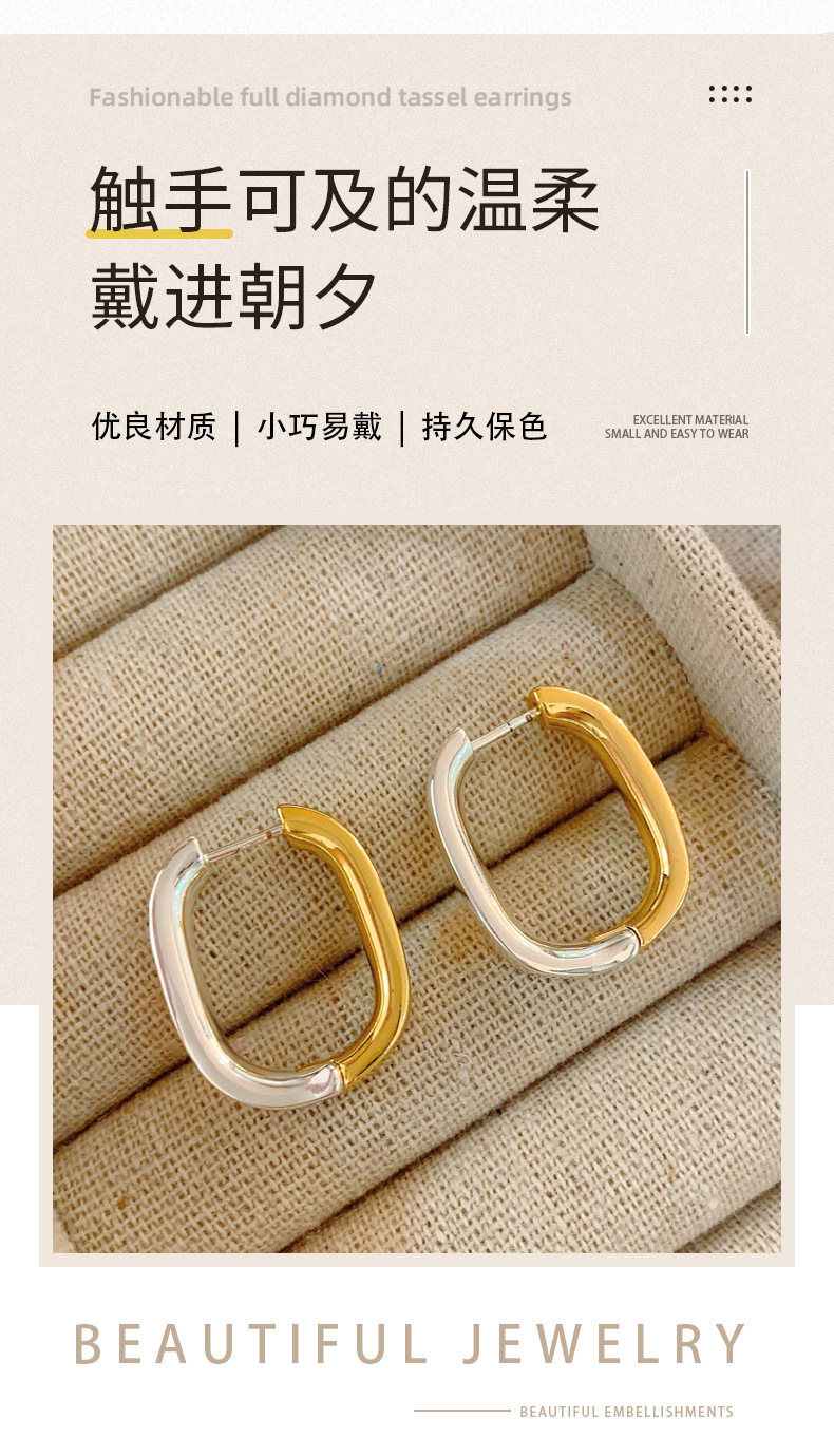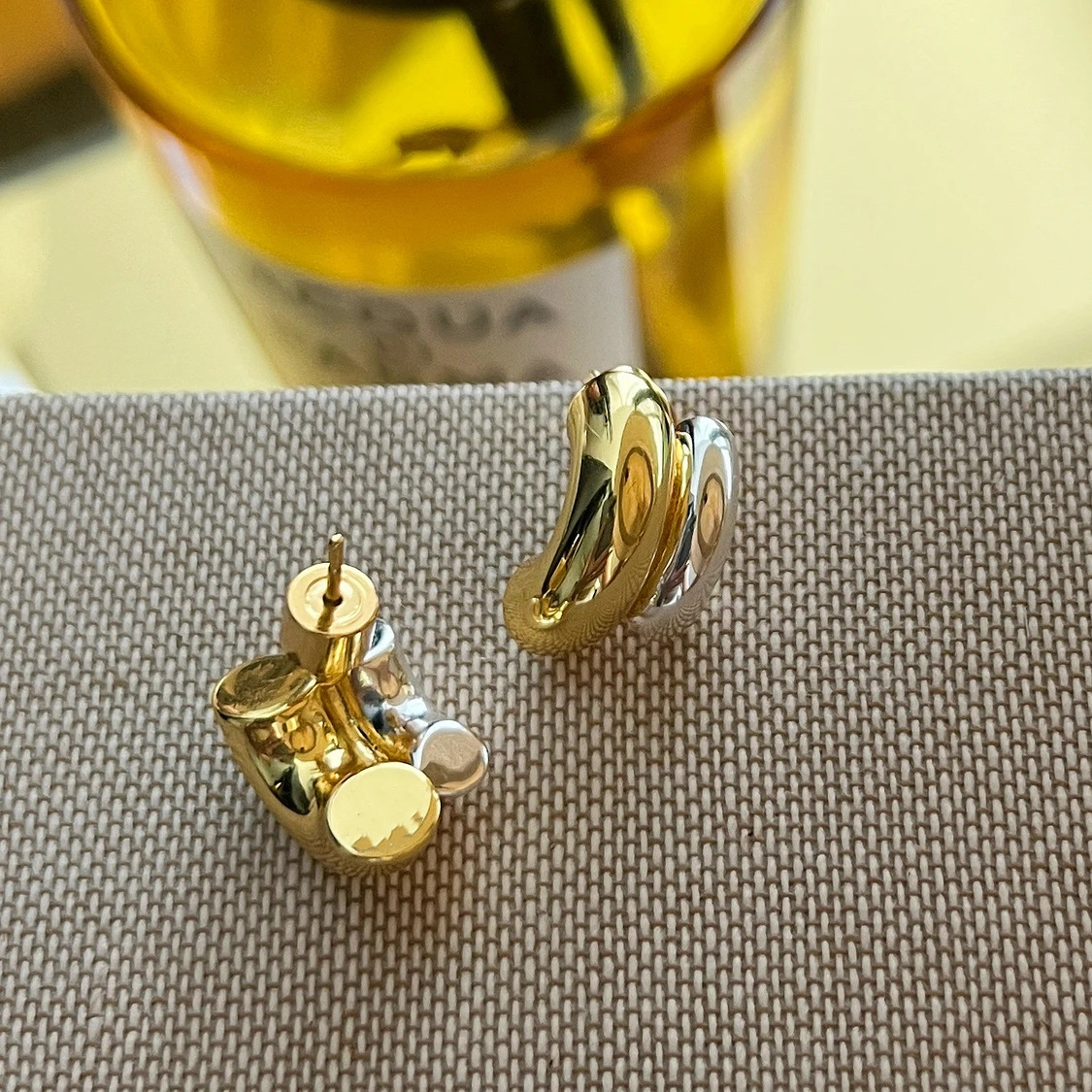 欧美小众简约时尚耳环2025年新款潮双色个性耳圈高级轻奢百搭耳饰
