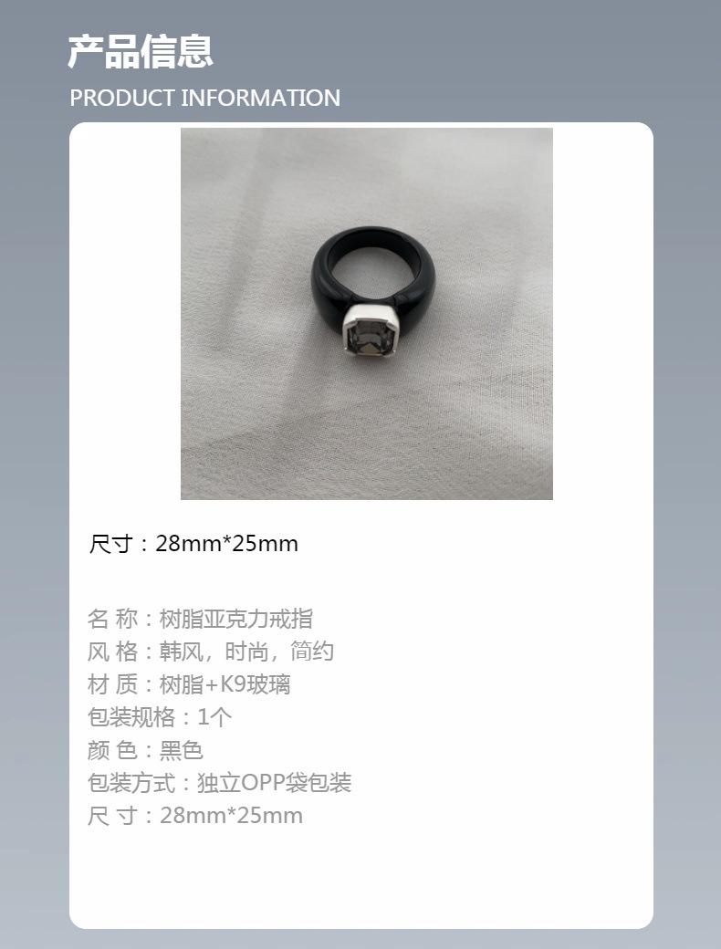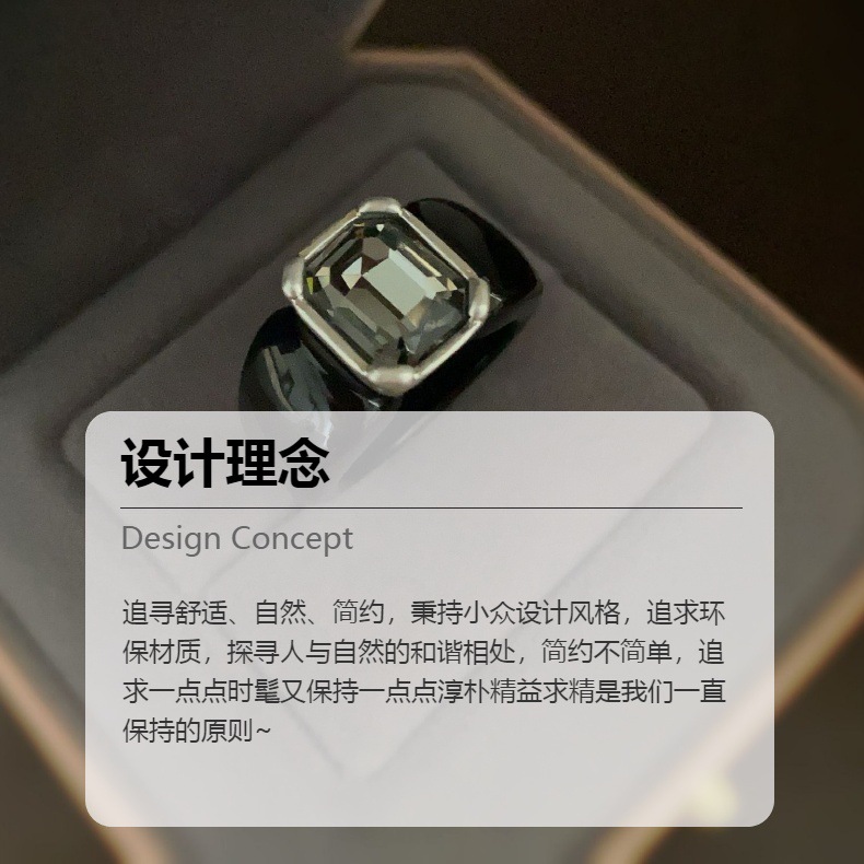 新款树脂亚克力系列戒指黑色复古小众个性设计高级感气质百搭指环