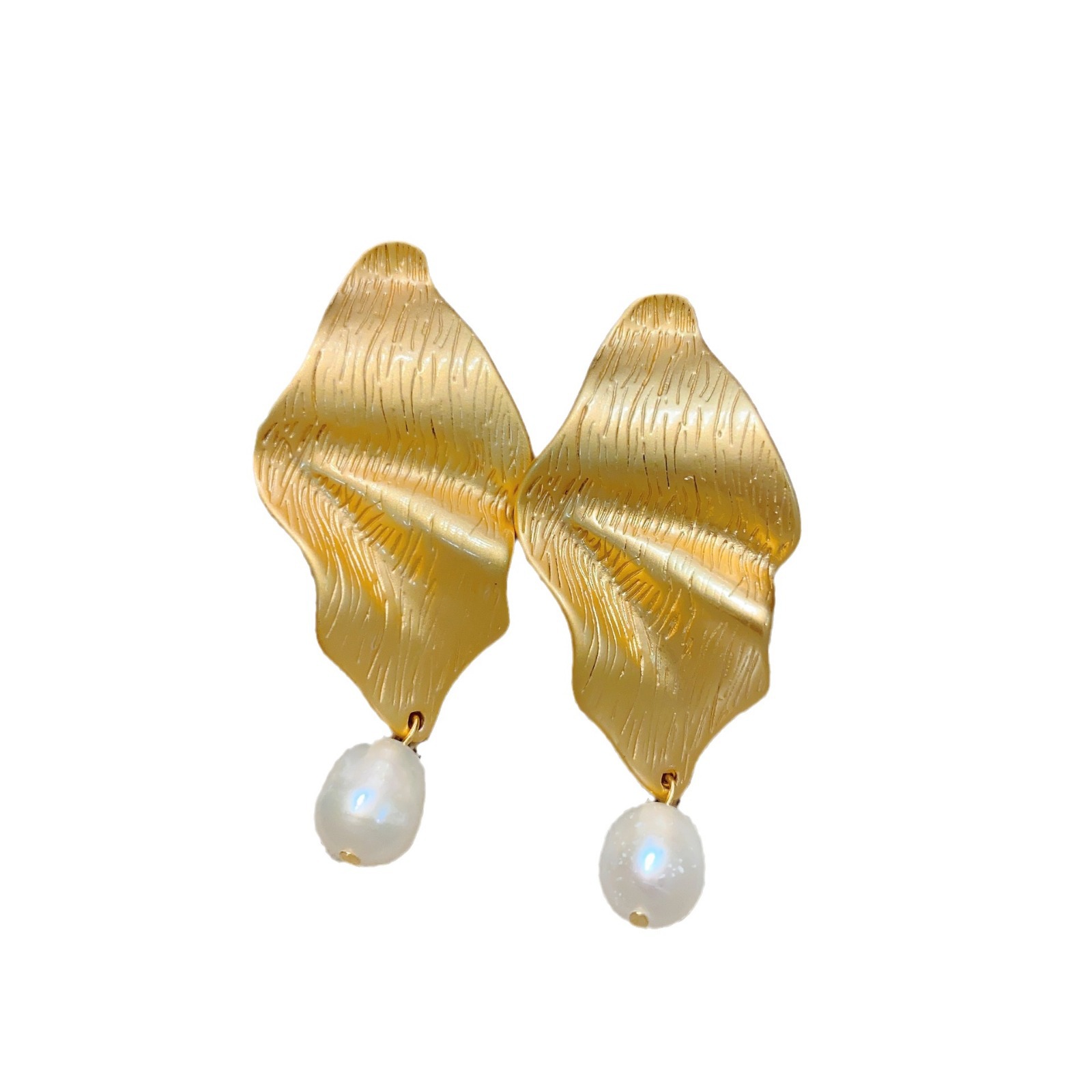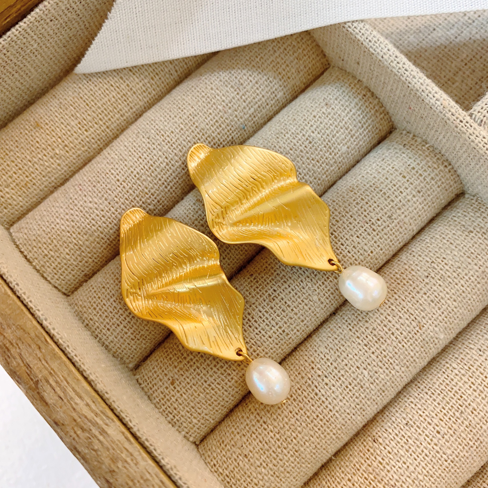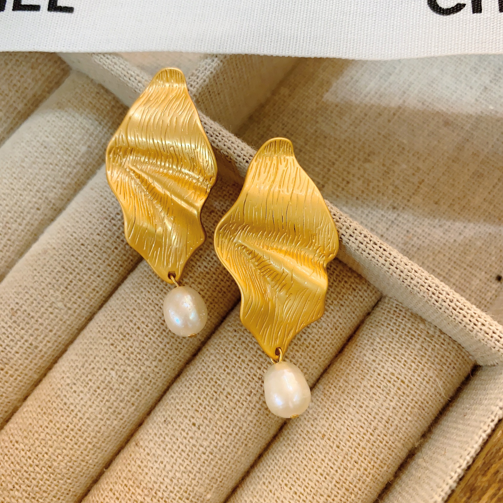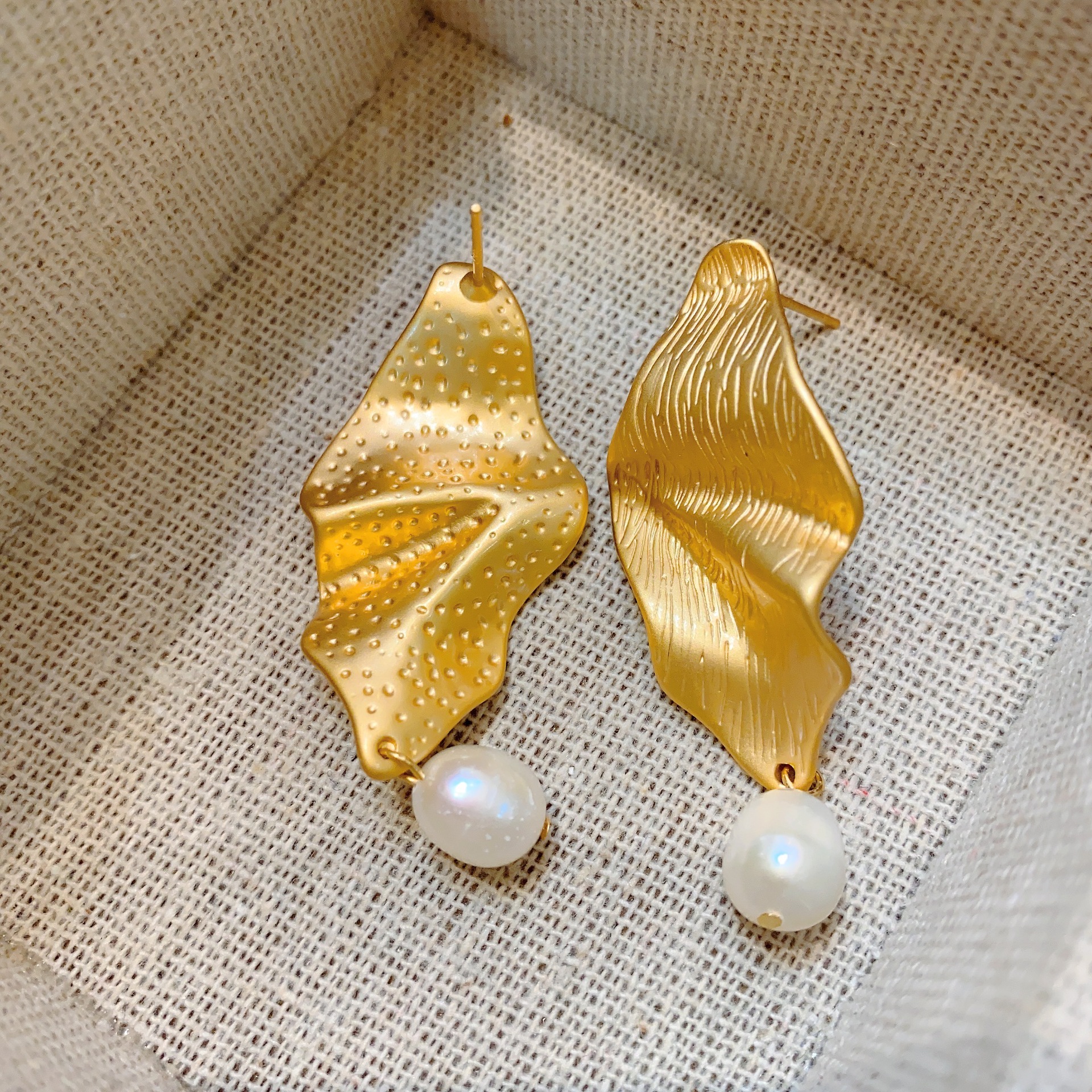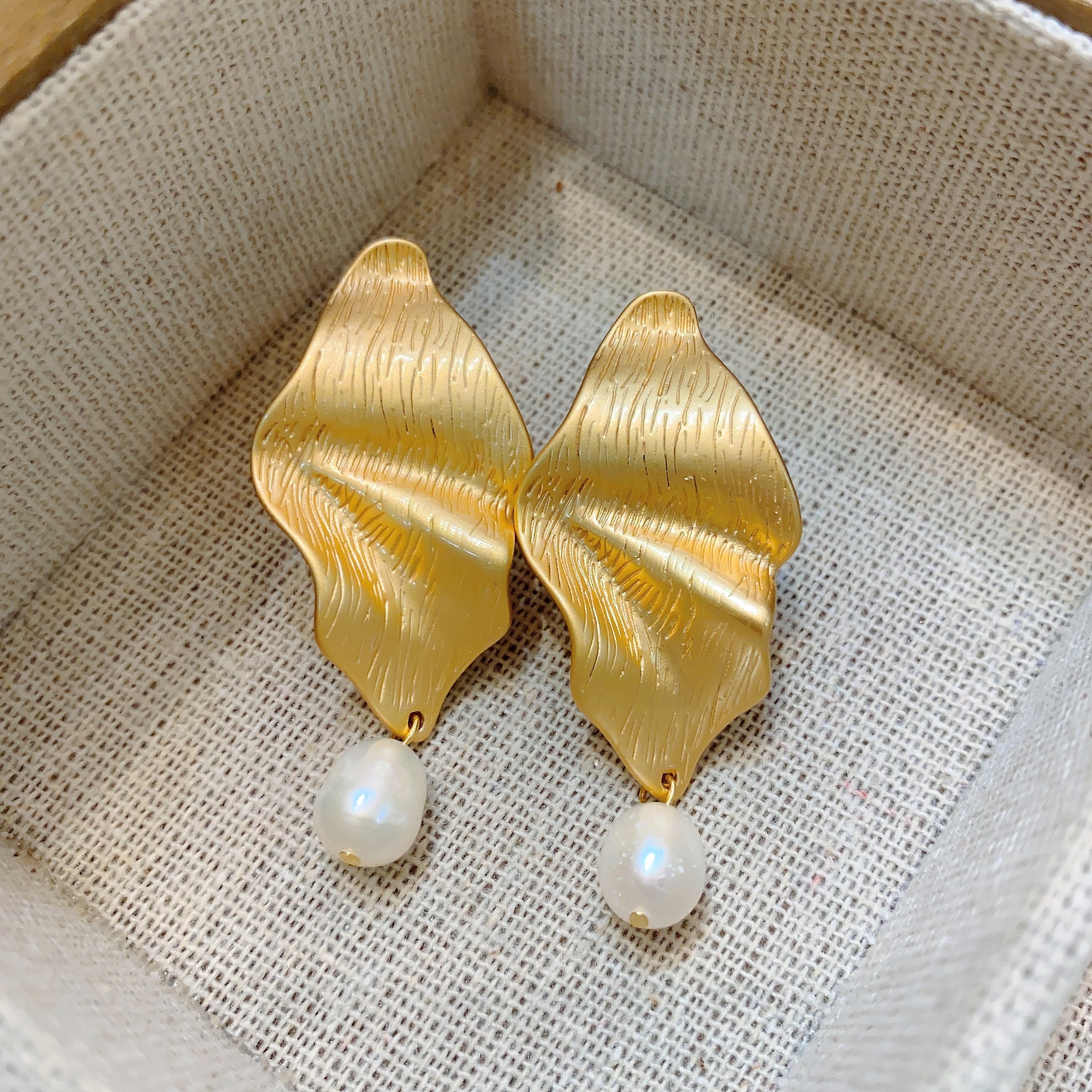 珍珠狂想曲独特天然巴洛克珍珠金属褶皱复古耳饰耳环耳钉小众设计