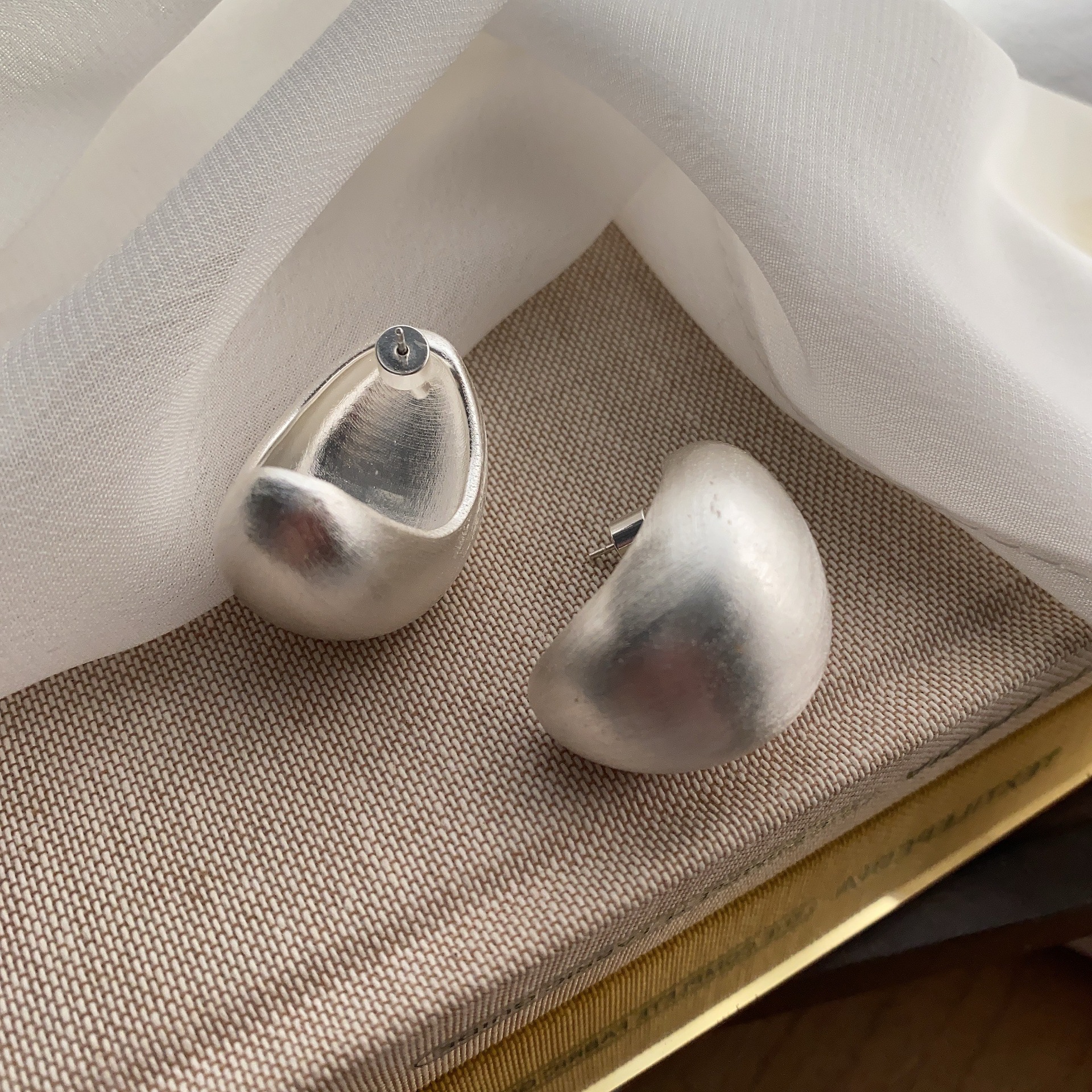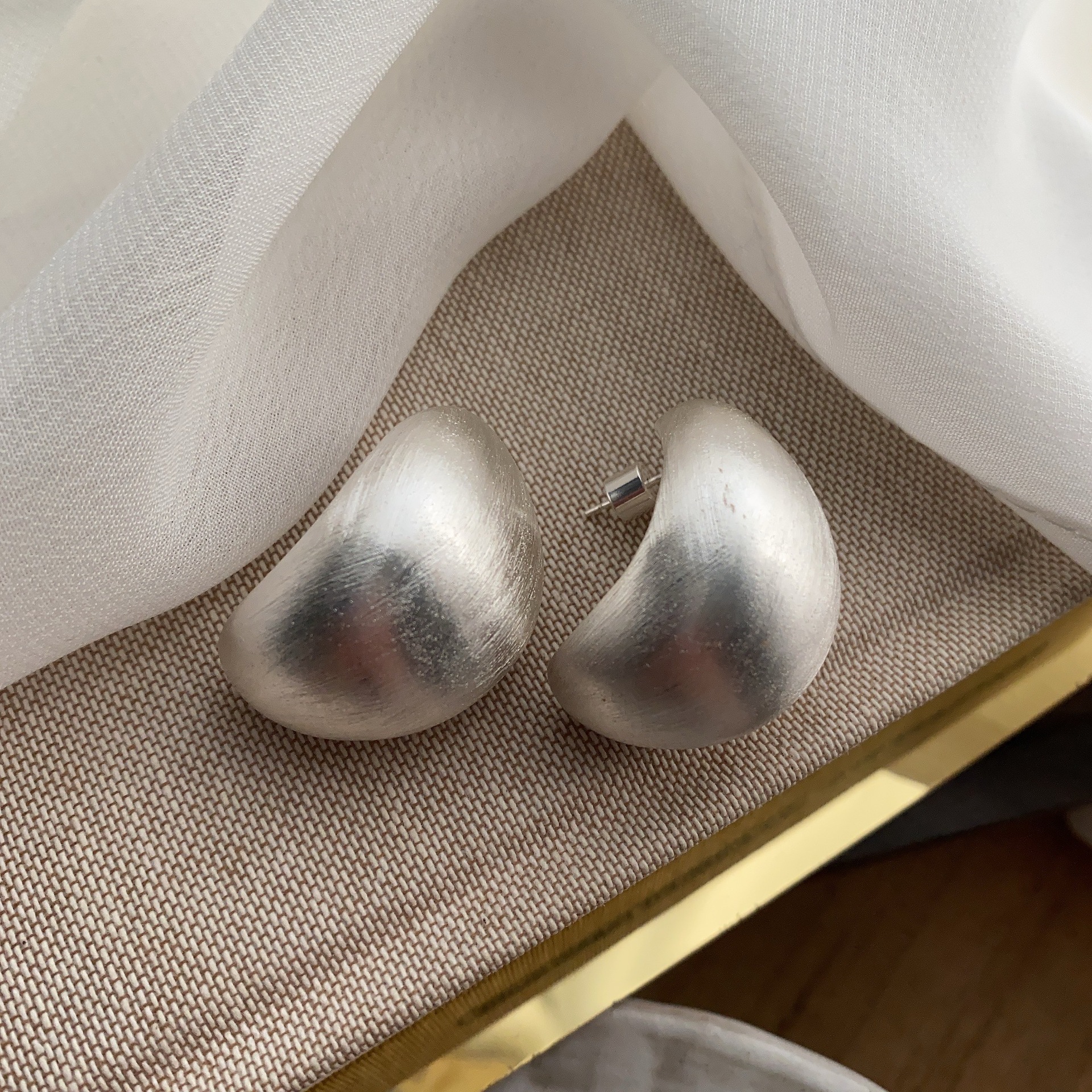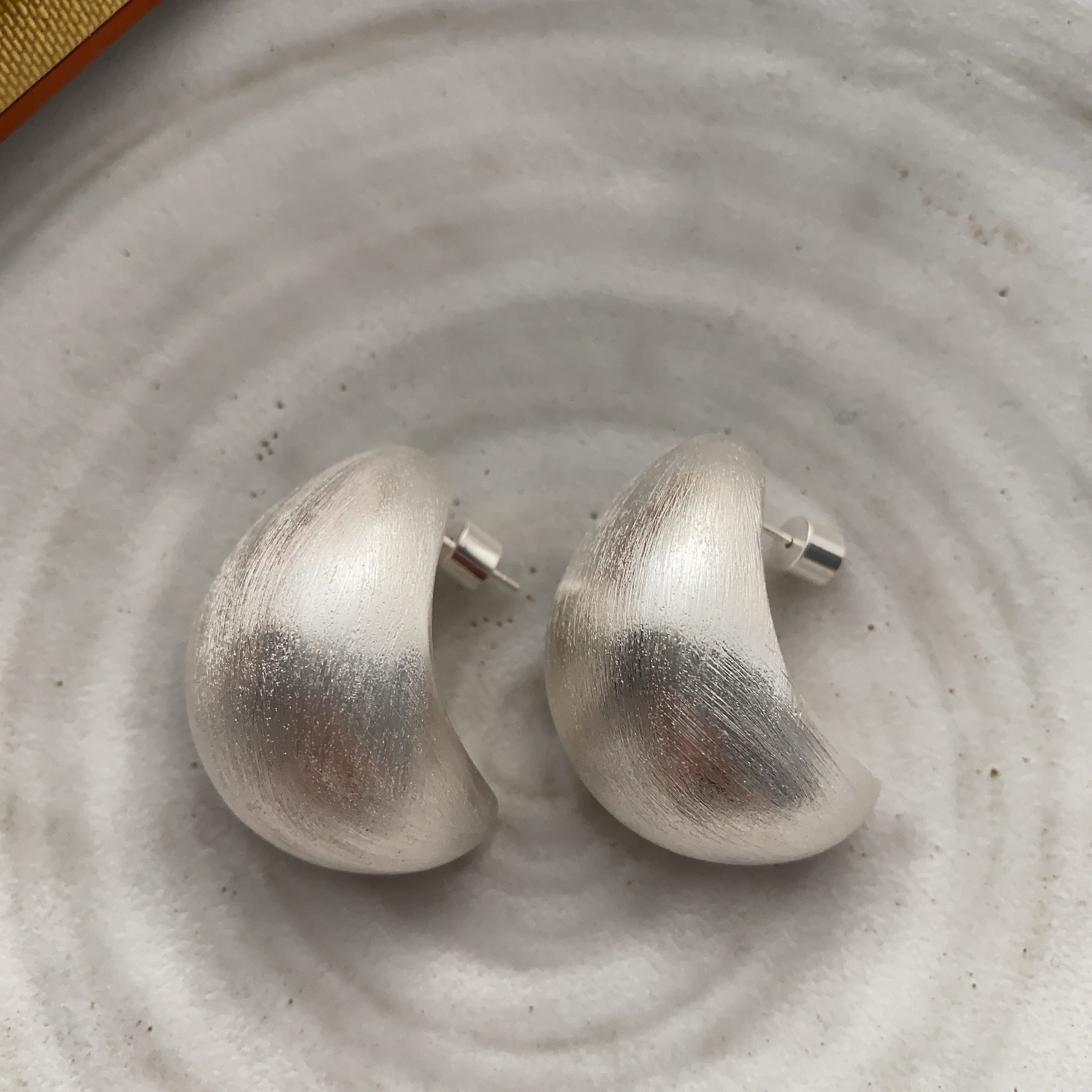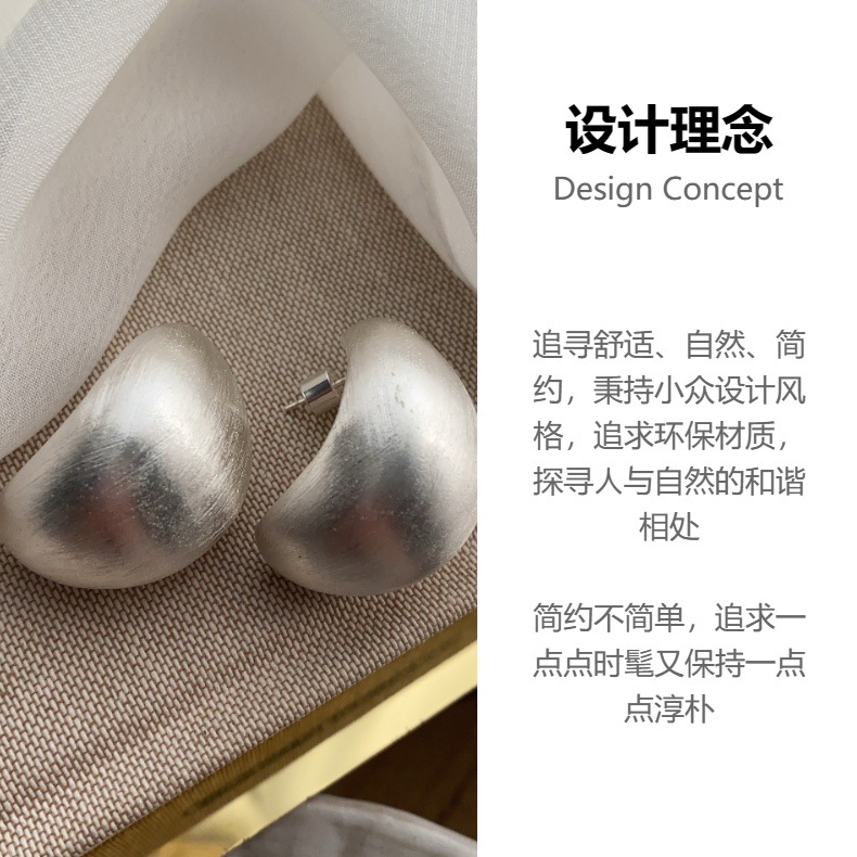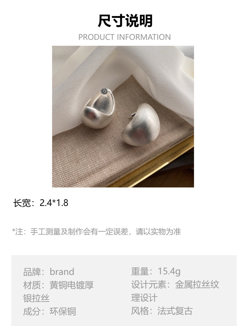 法式复古高级时尚轻奢气质女银色金属拉丝纹理设计感小众耳钉耳饰