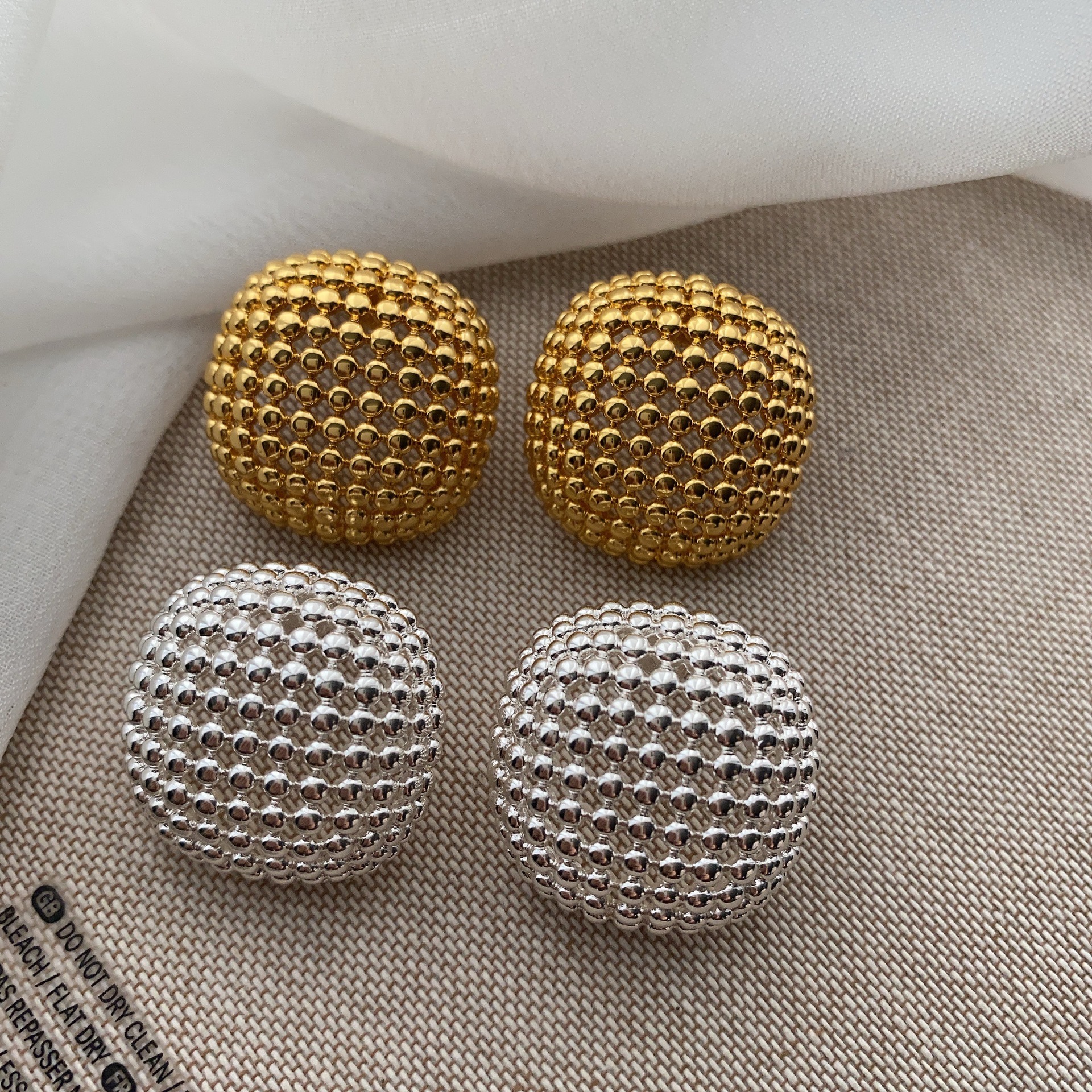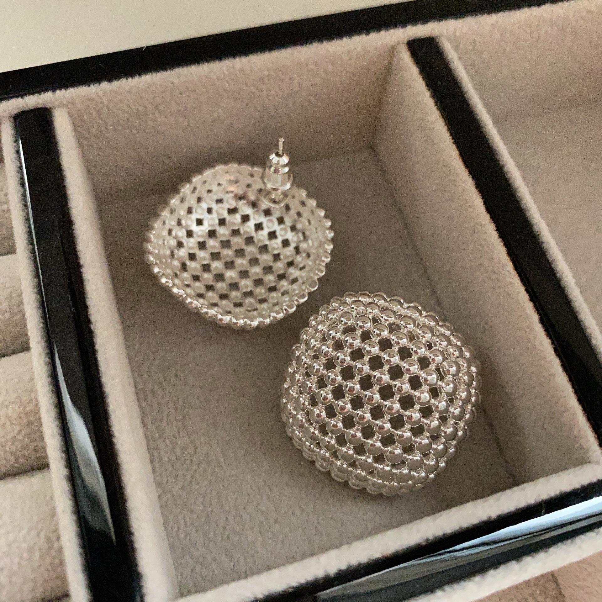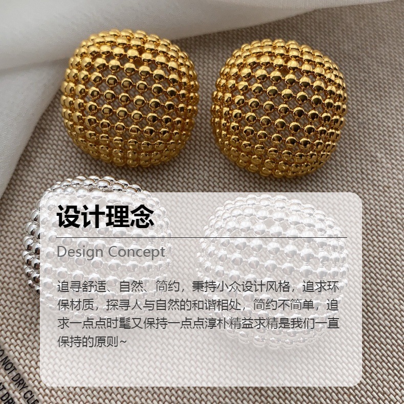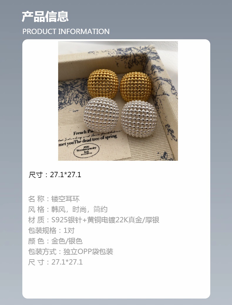 豆豆同款重工镂空珠珠耳钉女纯银针高级轻奢简约欧美设计小众时尚