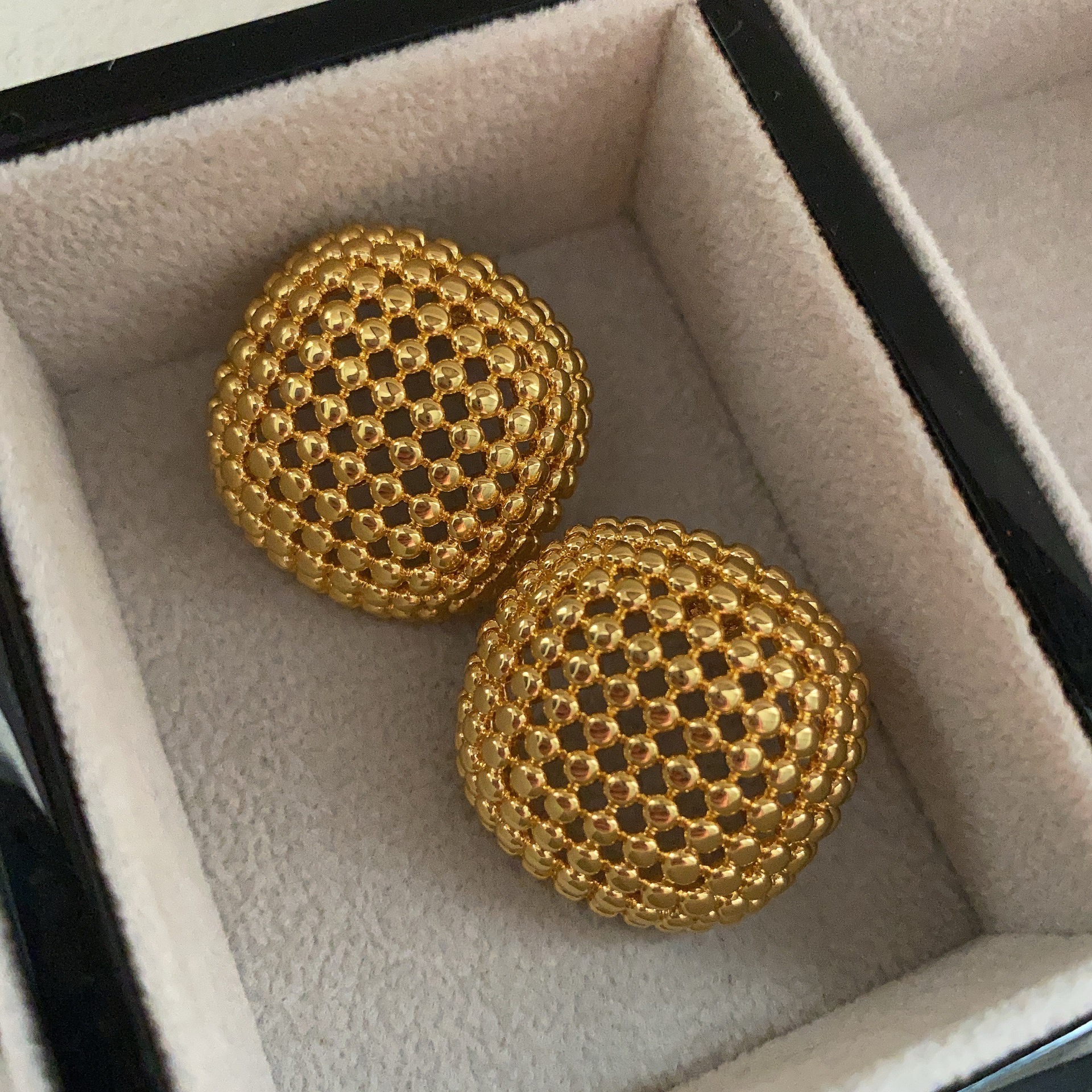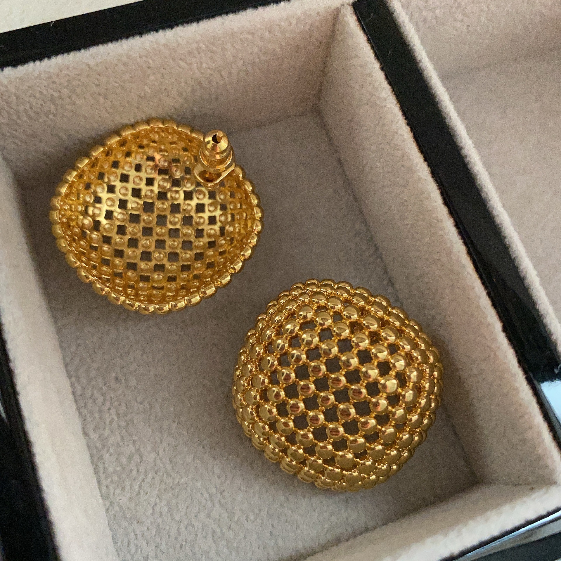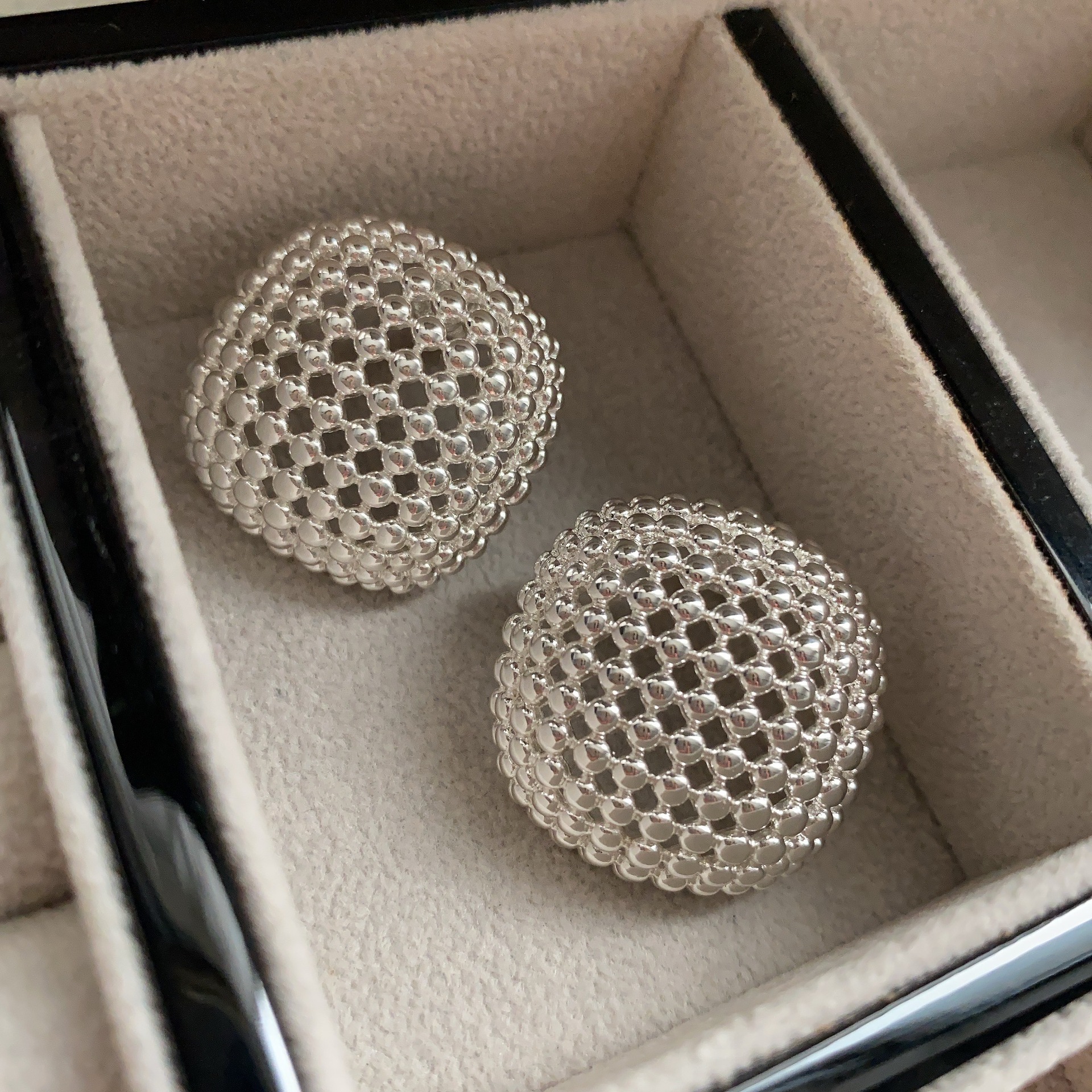 豆豆同款重工镂空珠珠耳钉女纯银针高级轻奢简约欧美设计小众时尚