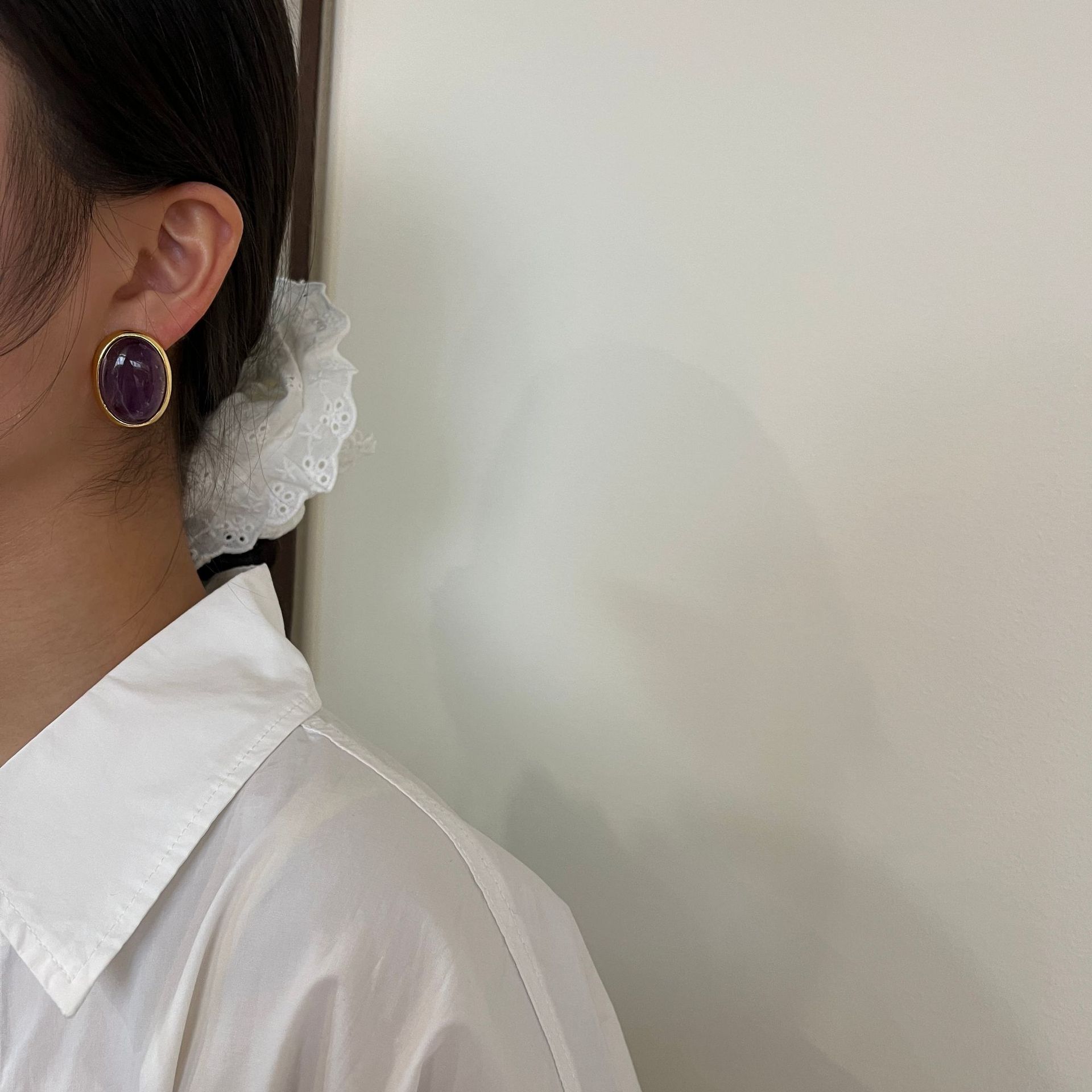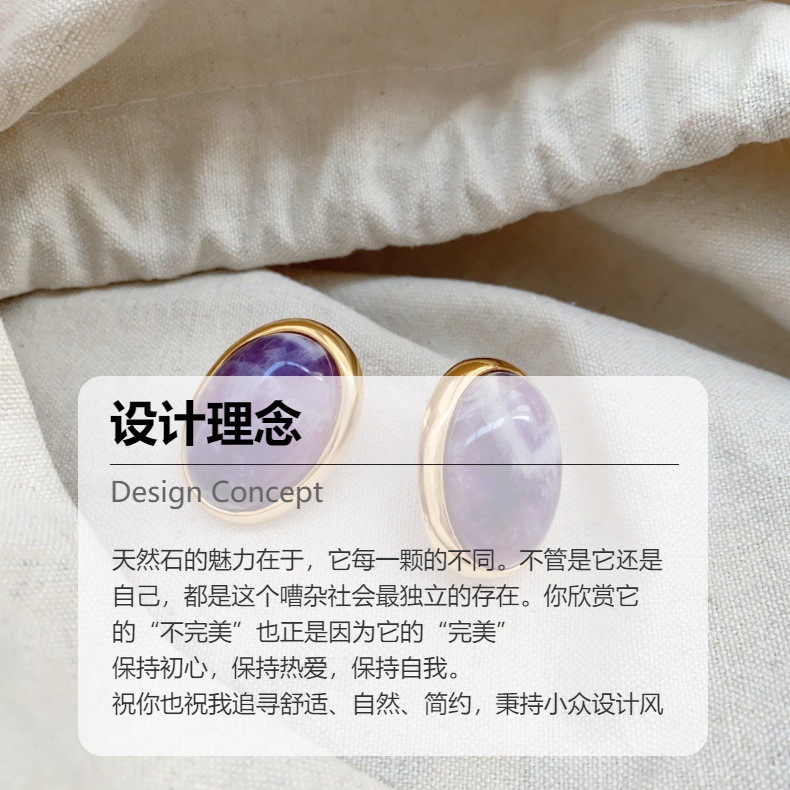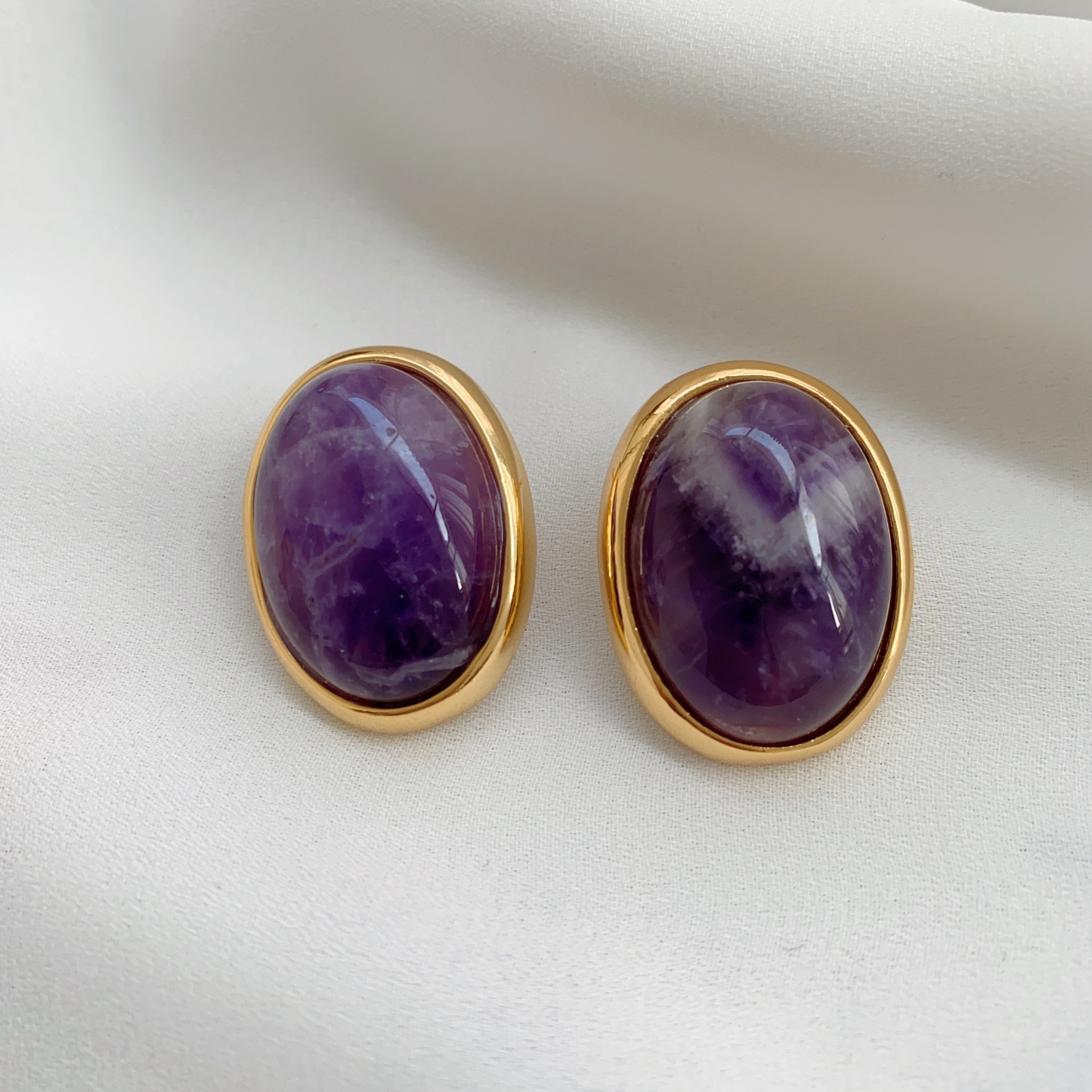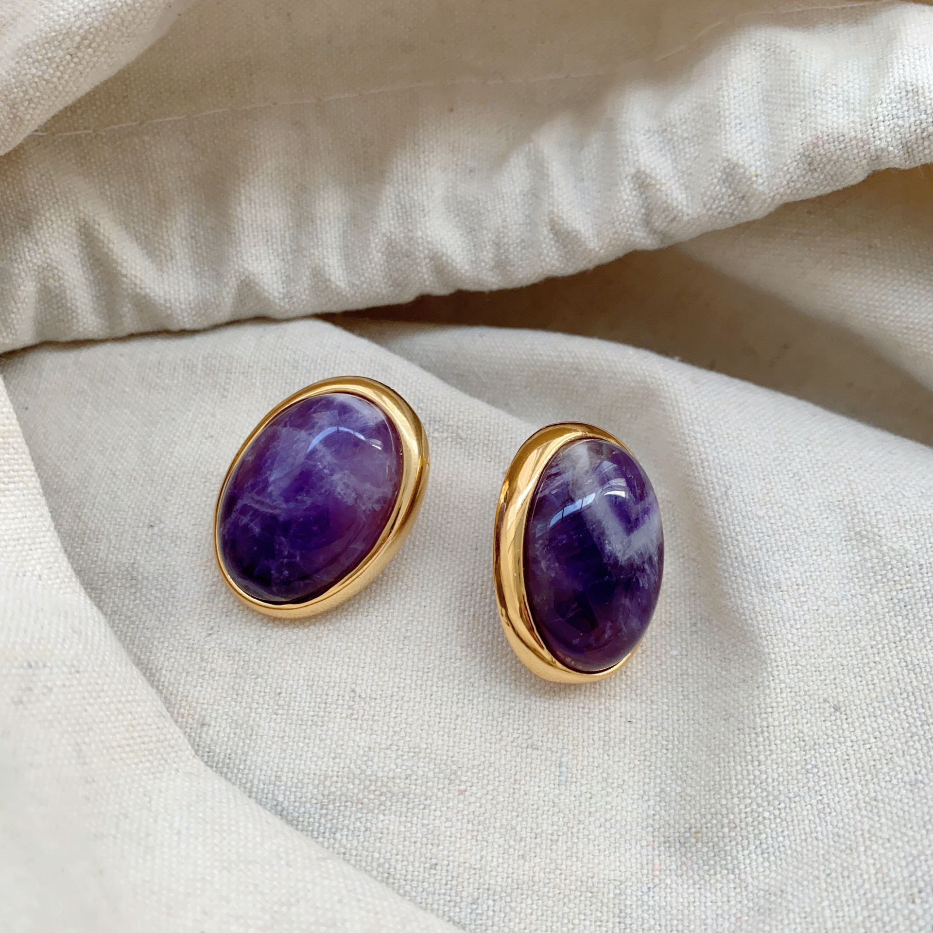 vintage复古宫廷椭圆形紫晶石通勤耳钉高级感法式复古轻奢耳钉
