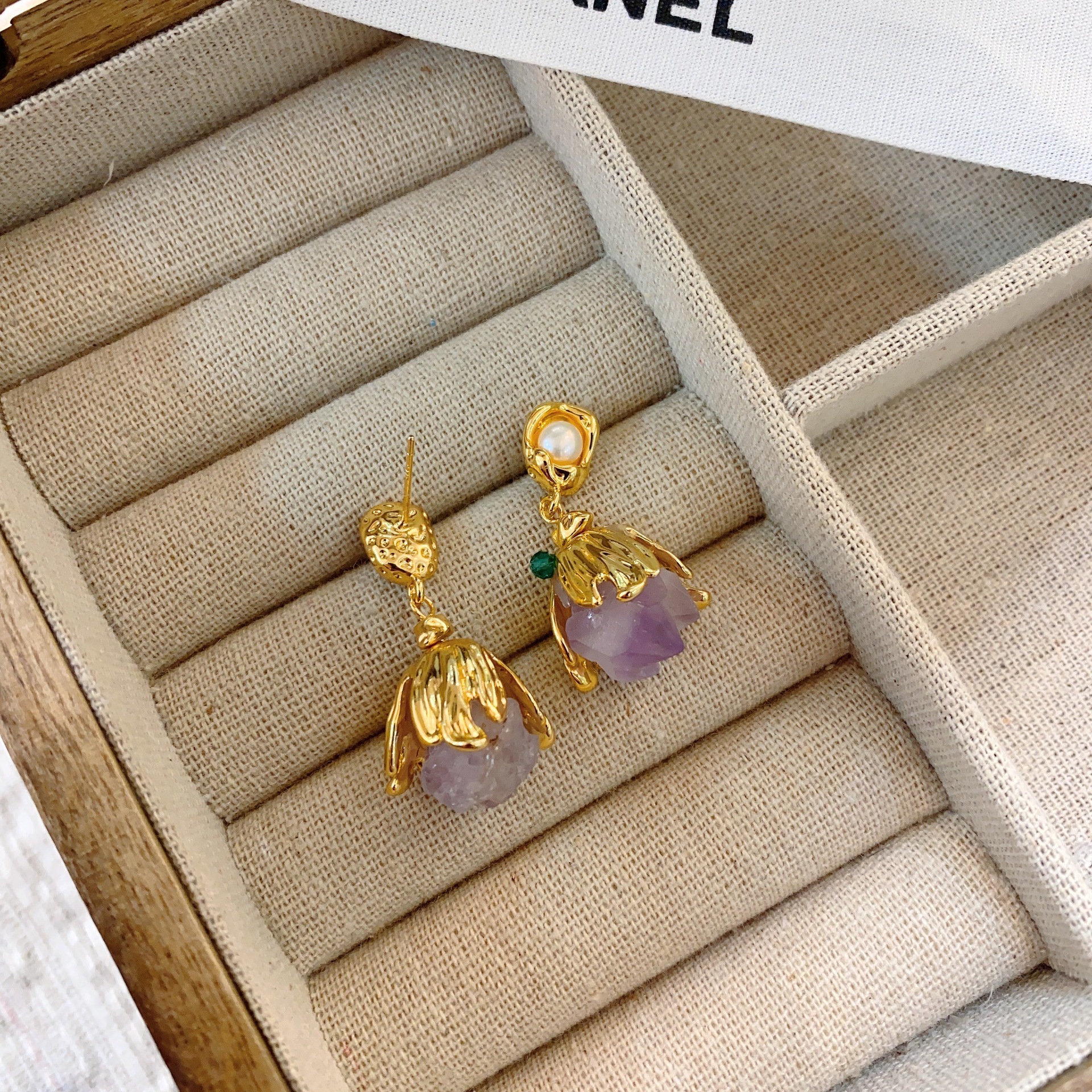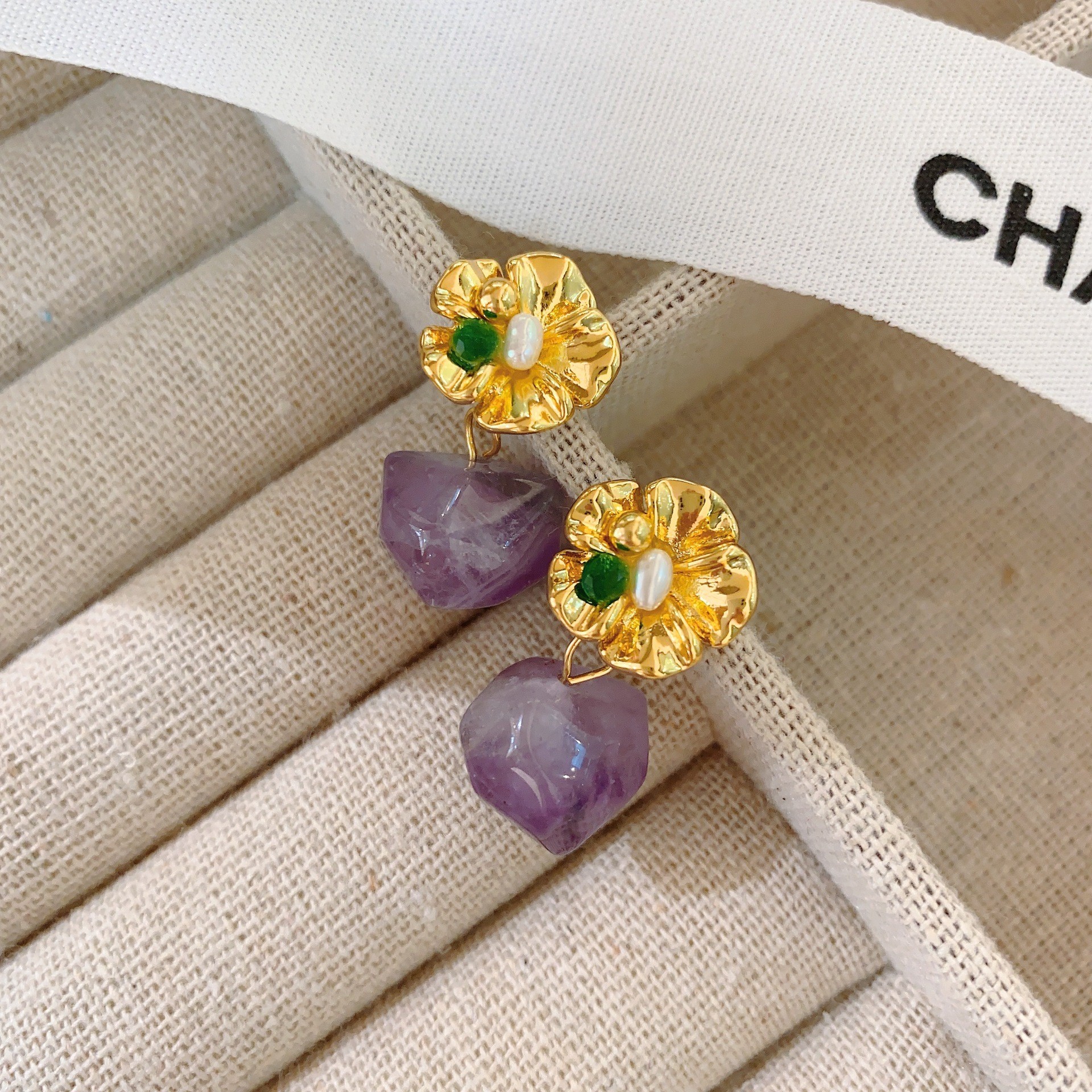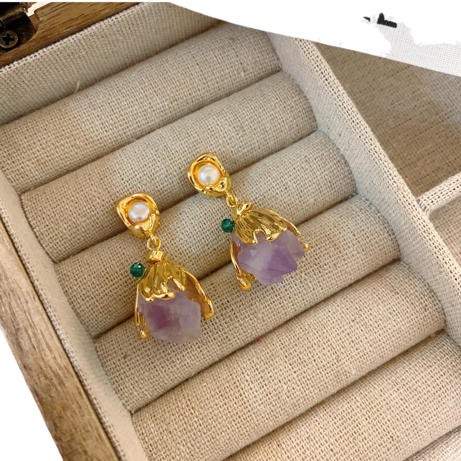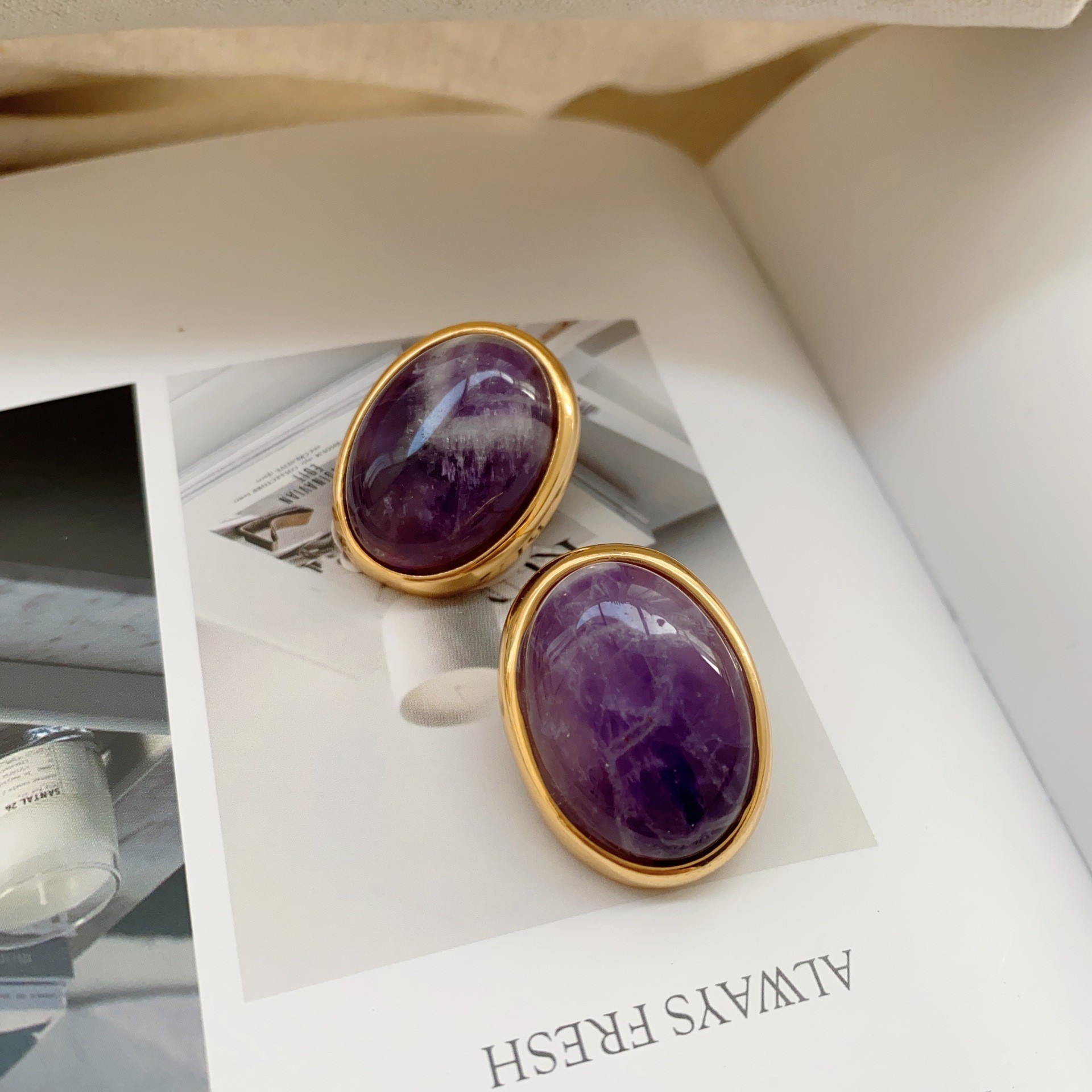 中古风小众复古紫水晶石耳环轻奢气质高级感耳环小众设计款养耳洞