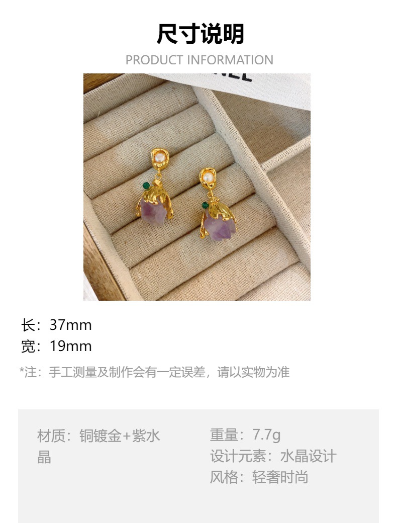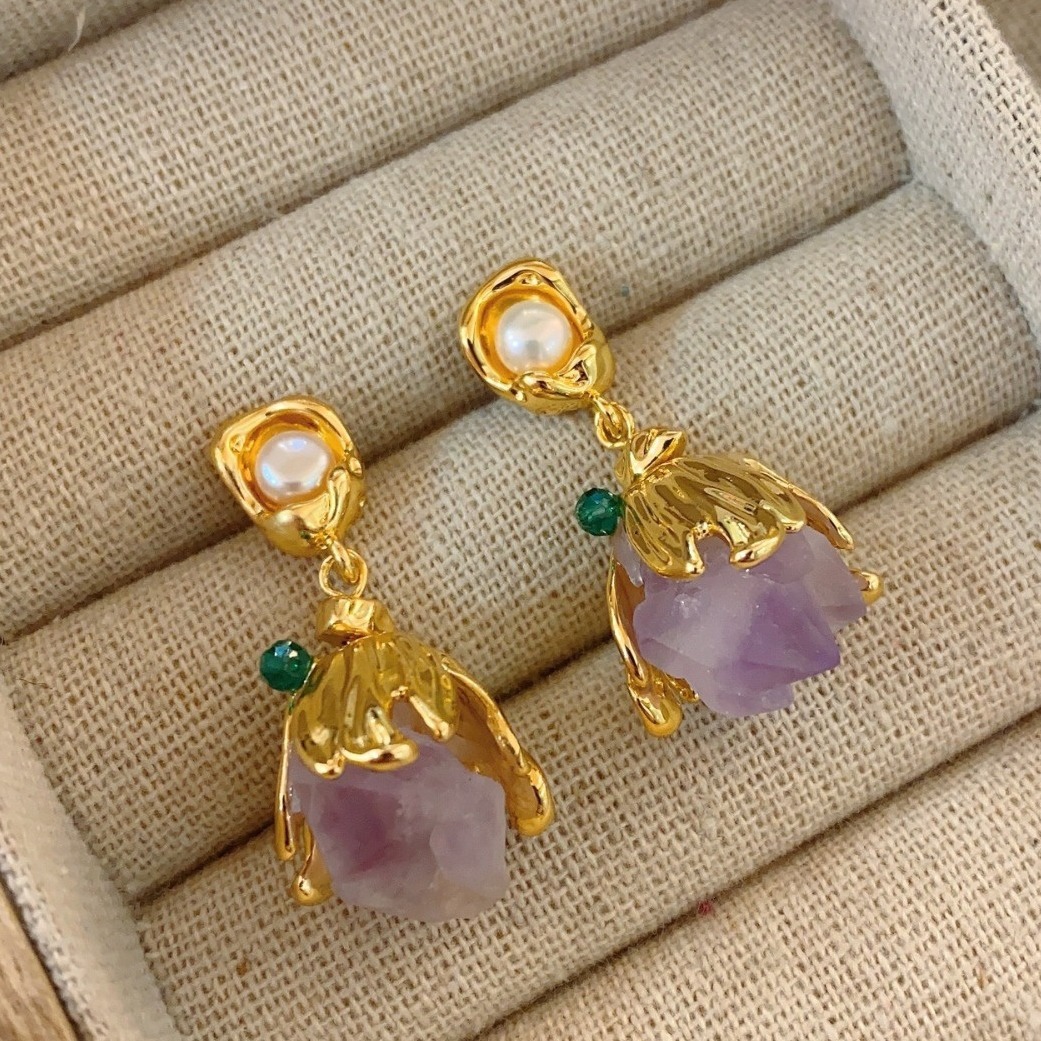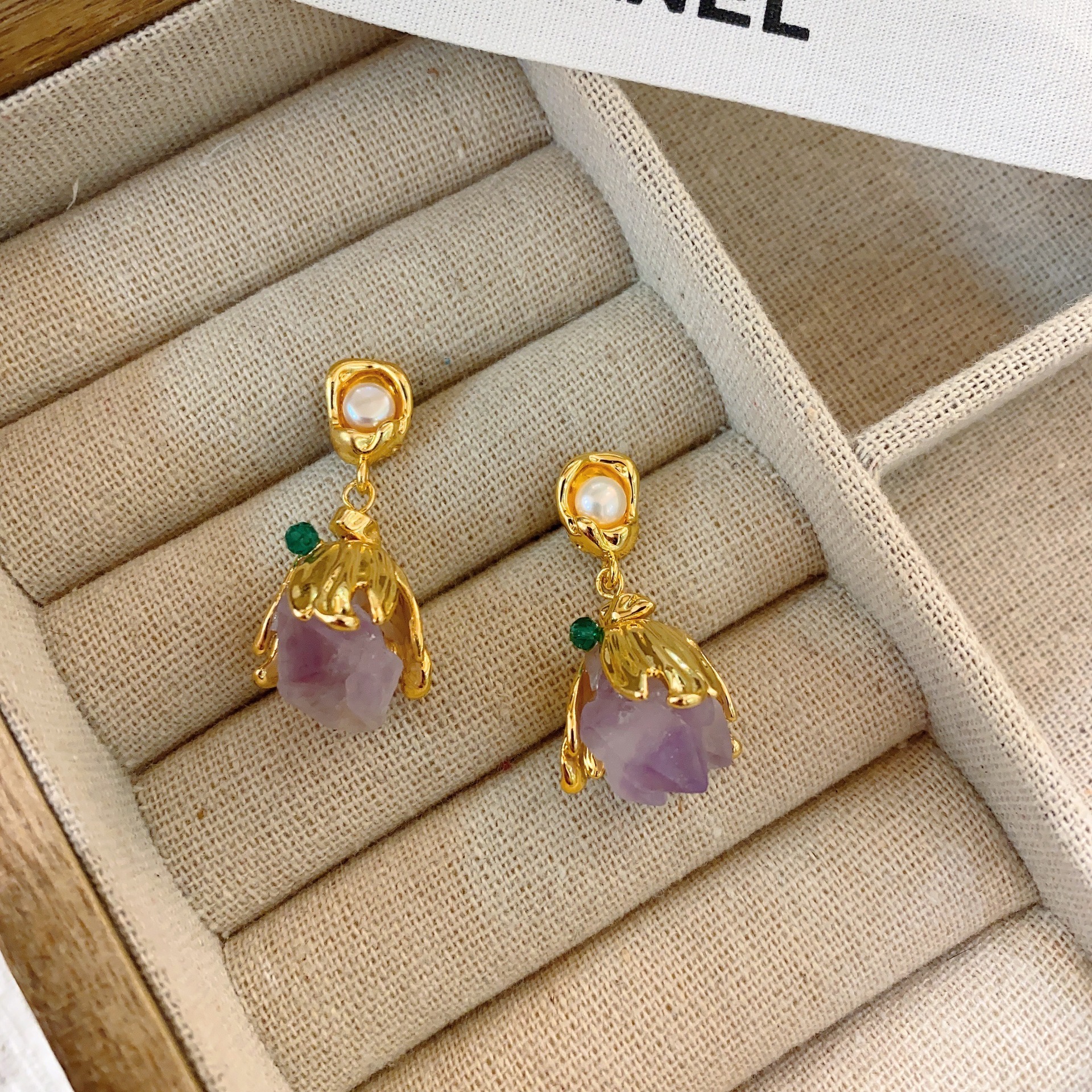 中古风小众复古紫水晶石耳环轻奢气质高级感耳环小众设计款养耳洞