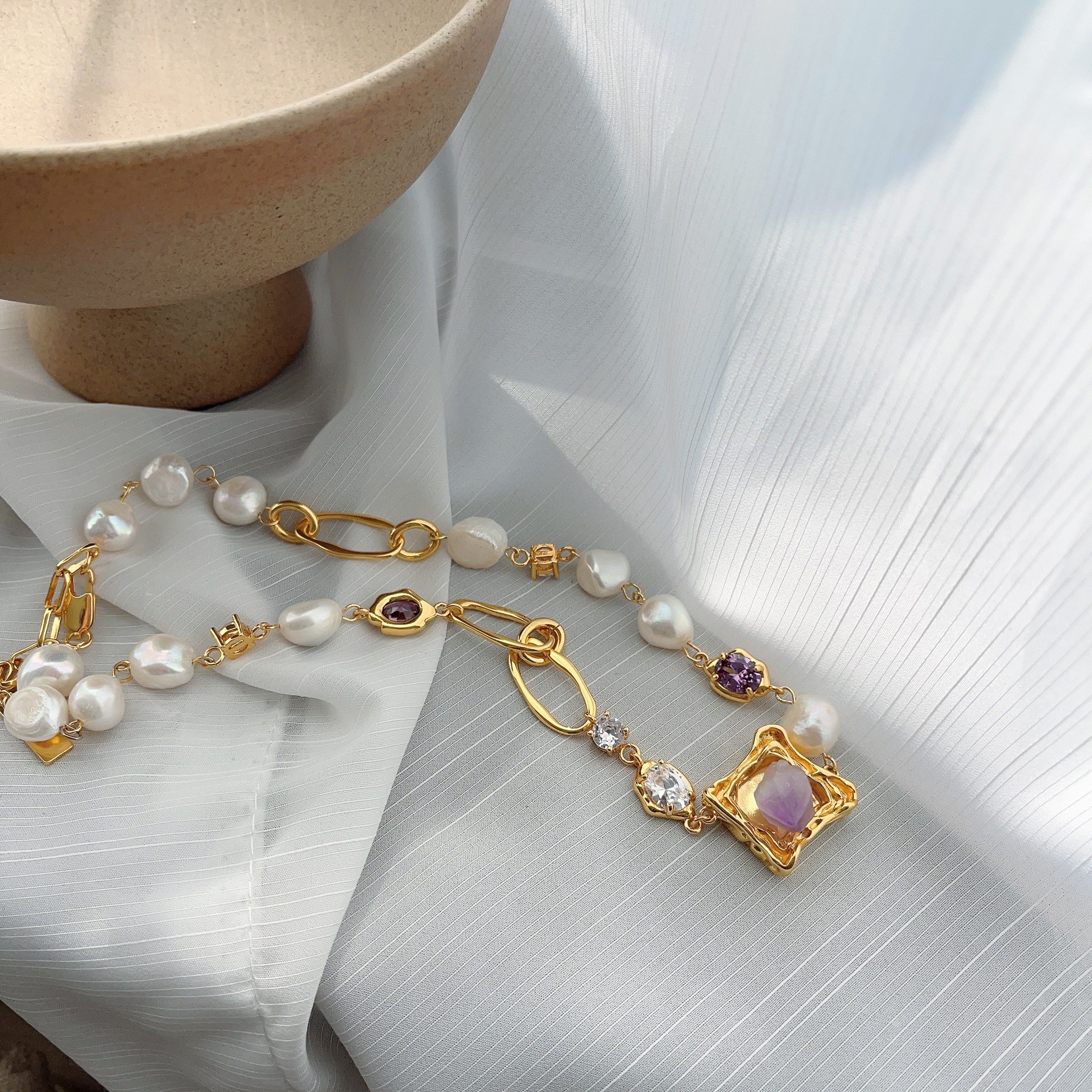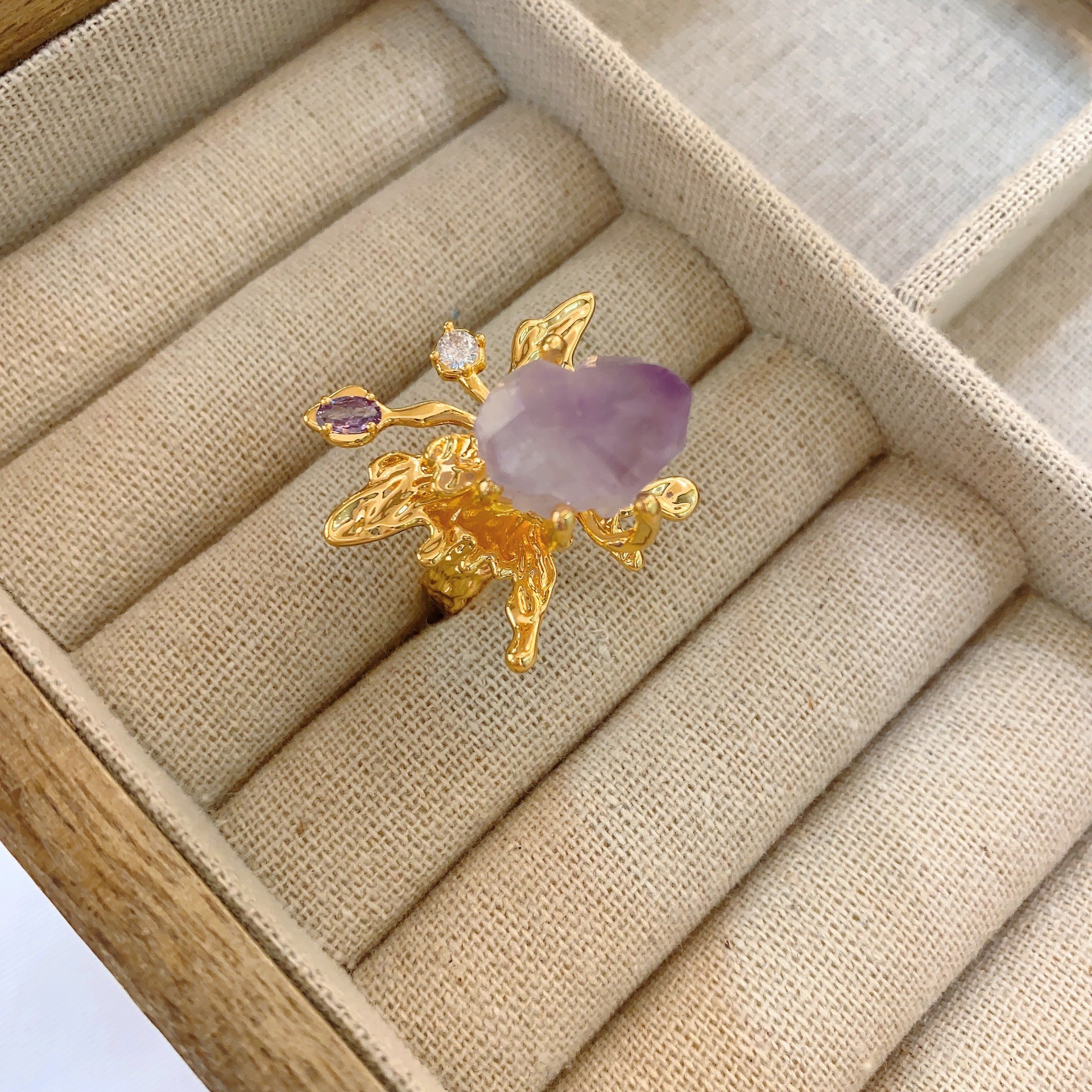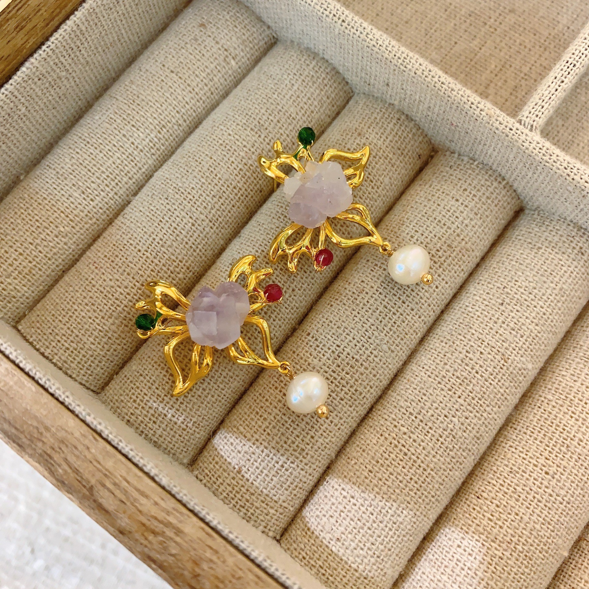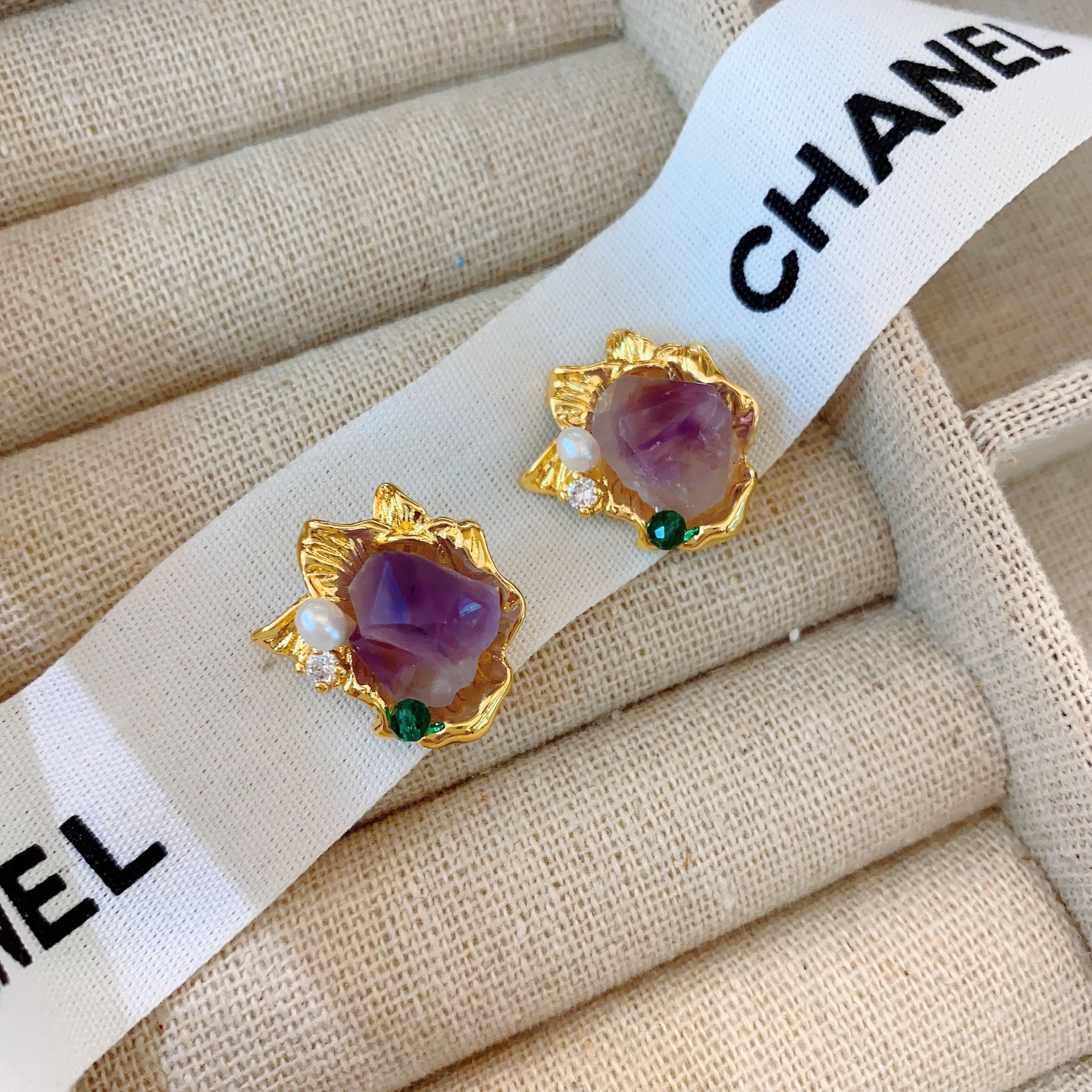 中古风小众复古紫水晶石耳环轻奢气质高级感耳环小众设计款养耳洞