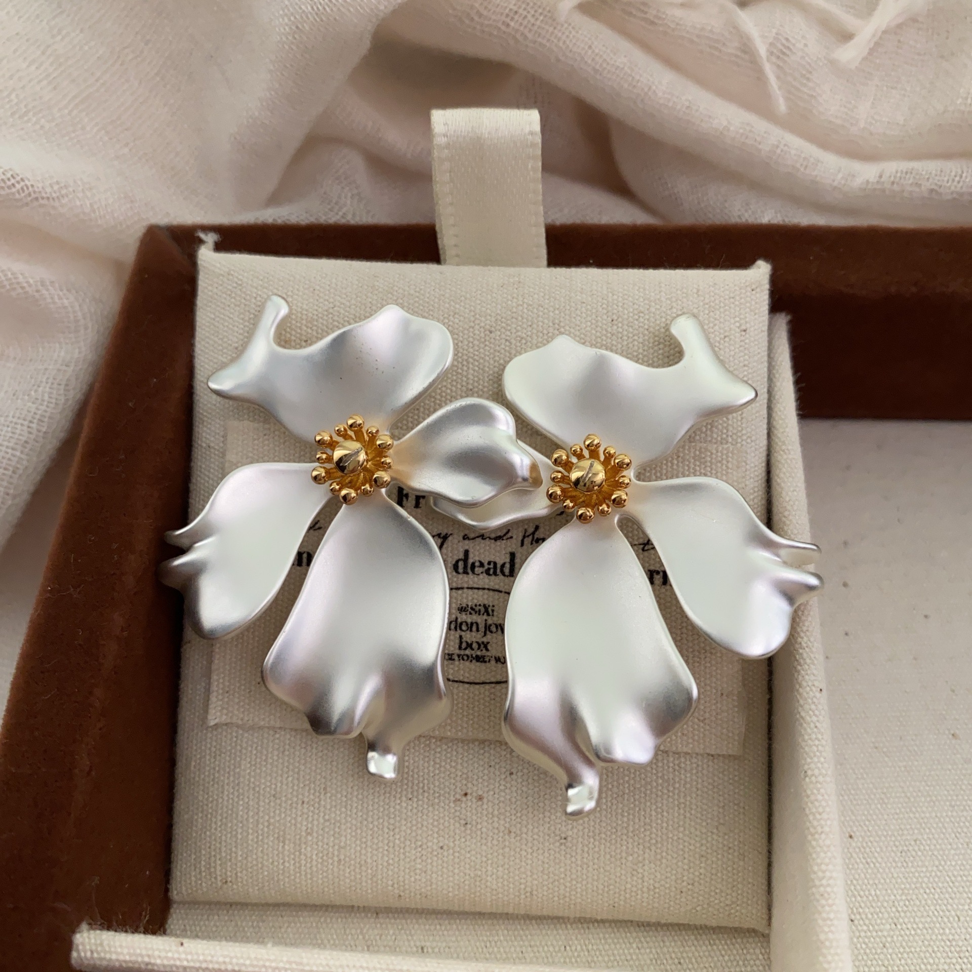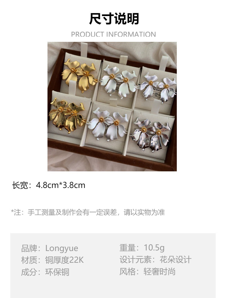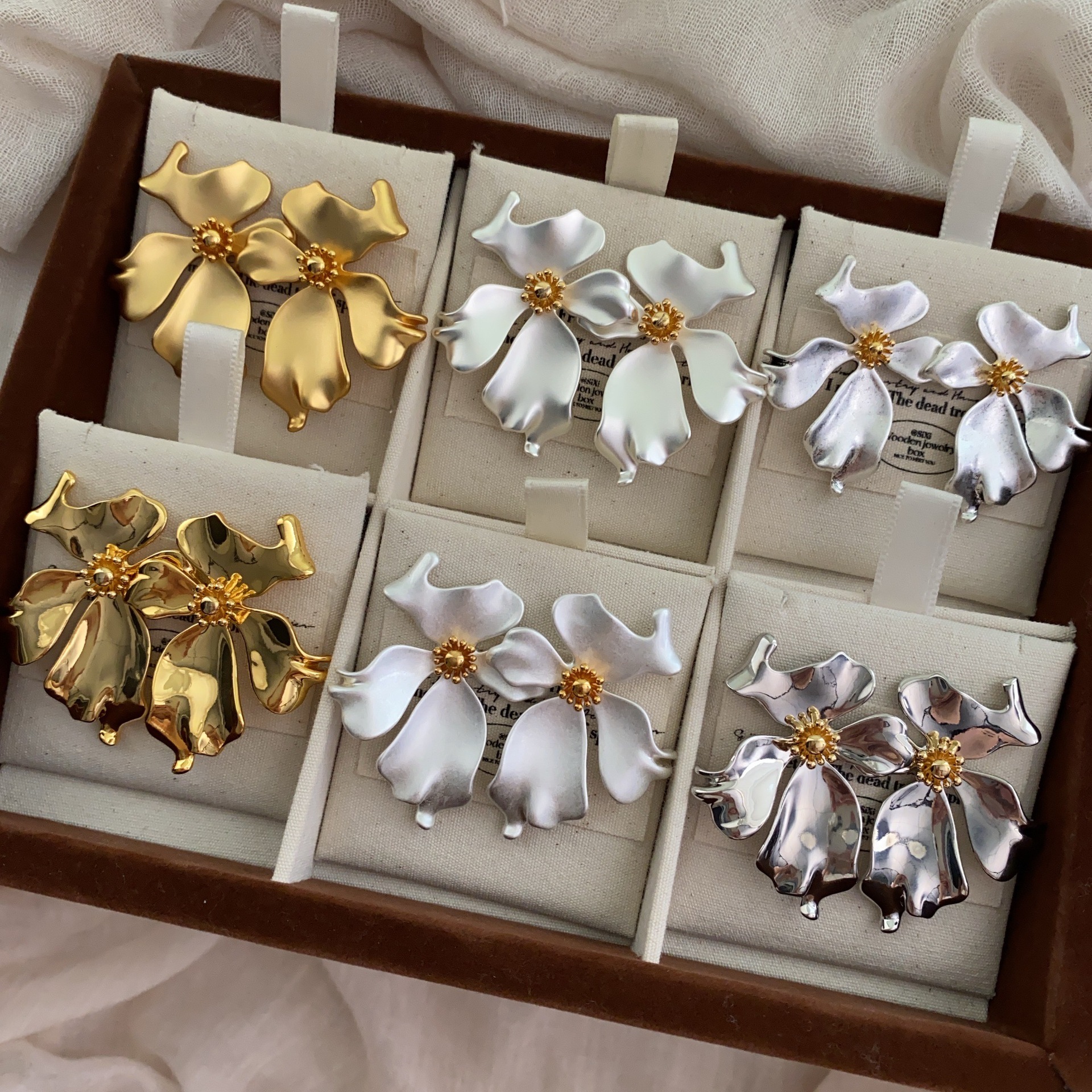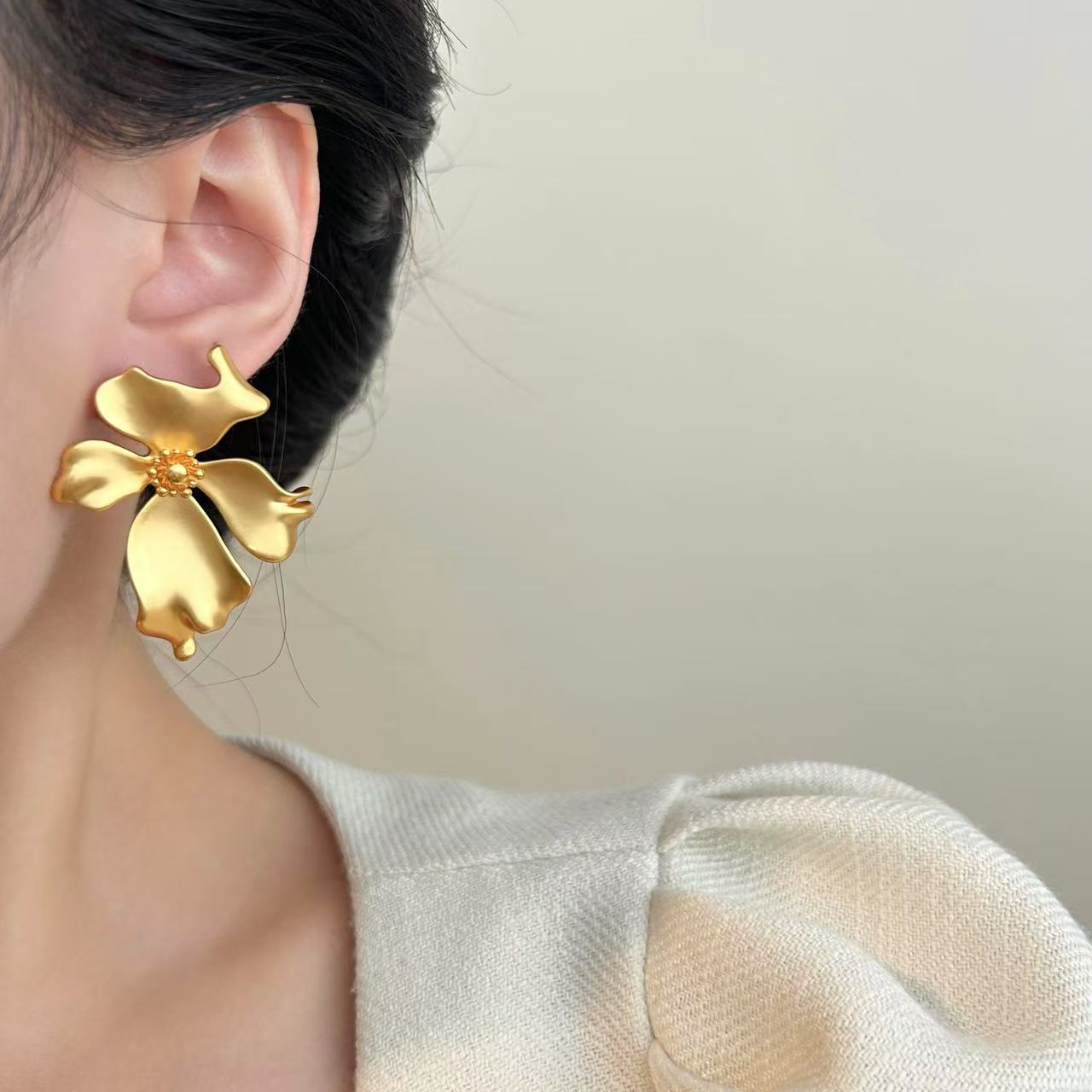 欧美高级感金属不规则花朵耳钉大气时尚耳饰奢华个性时髦花瓣耳环