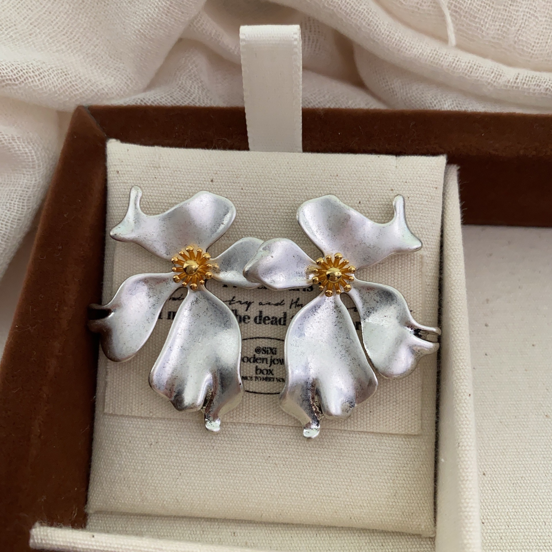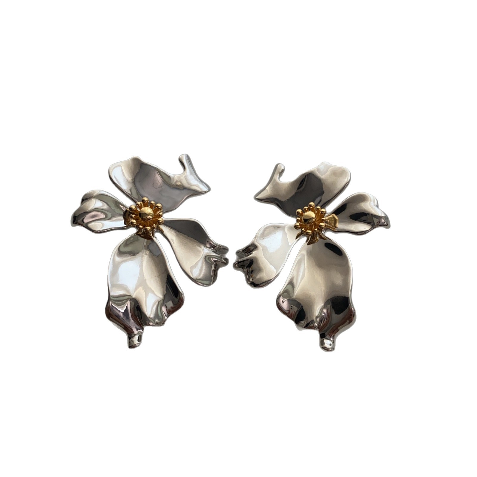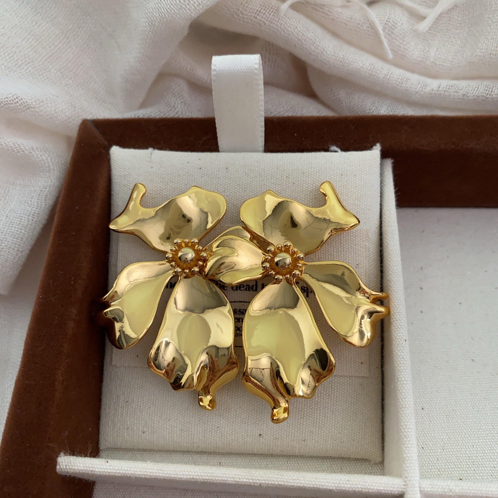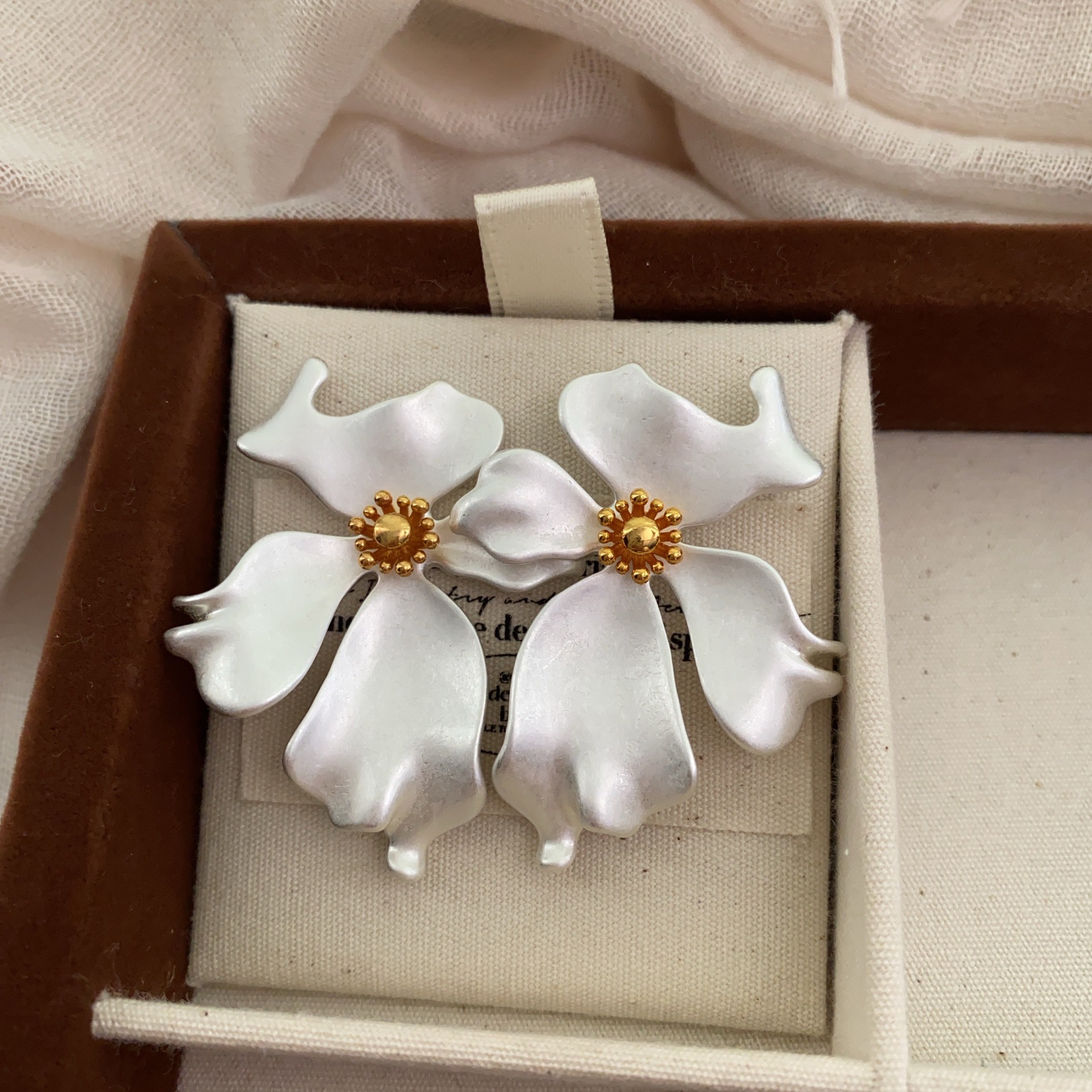 欧美高级感金属不规则花朵耳钉大气时尚耳饰奢华个性时髦花瓣耳环