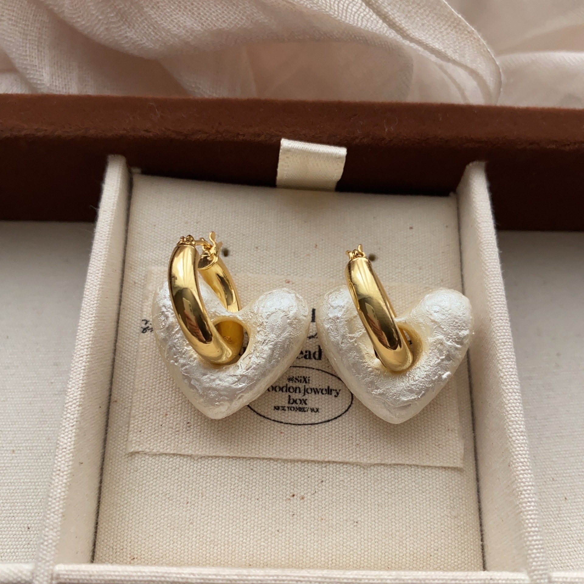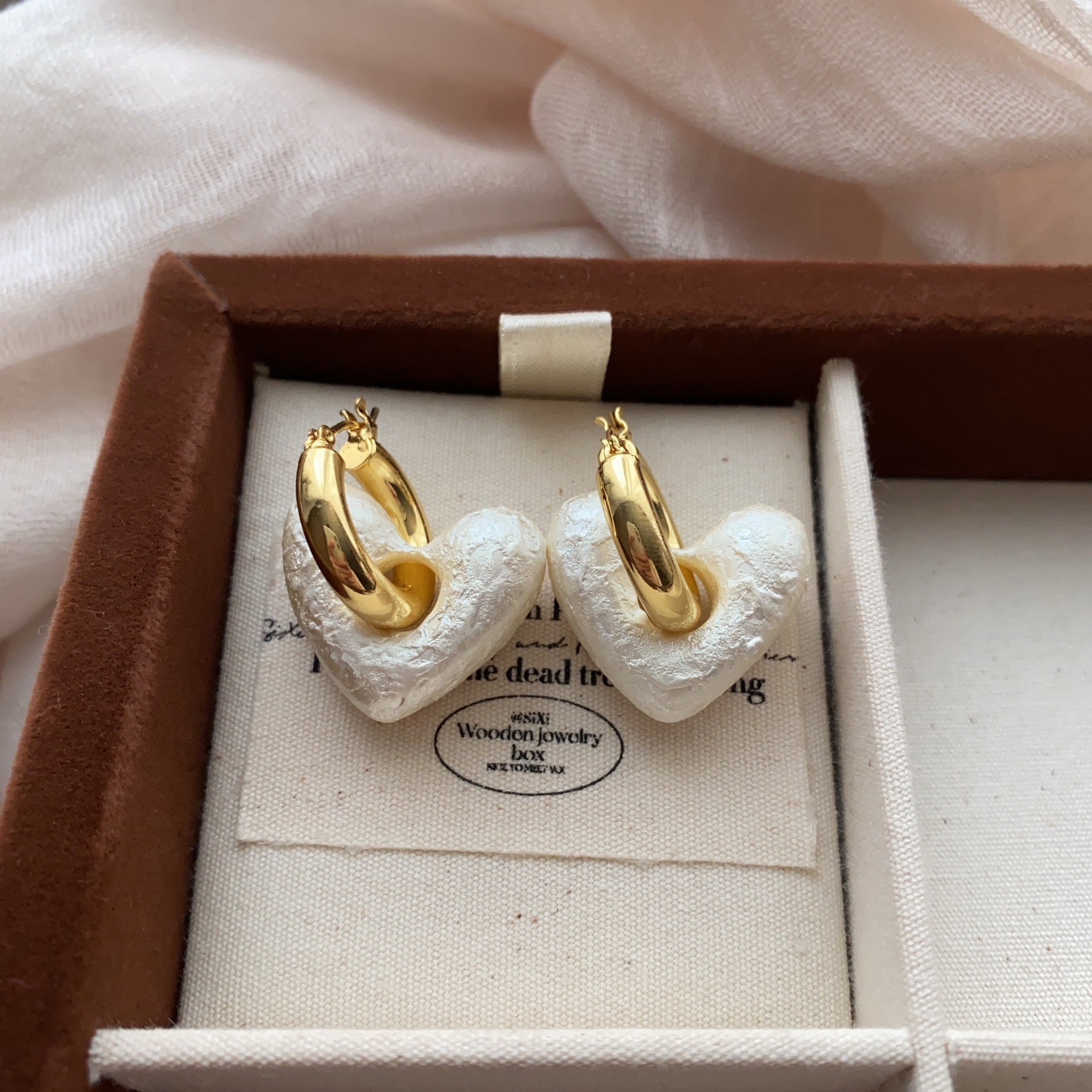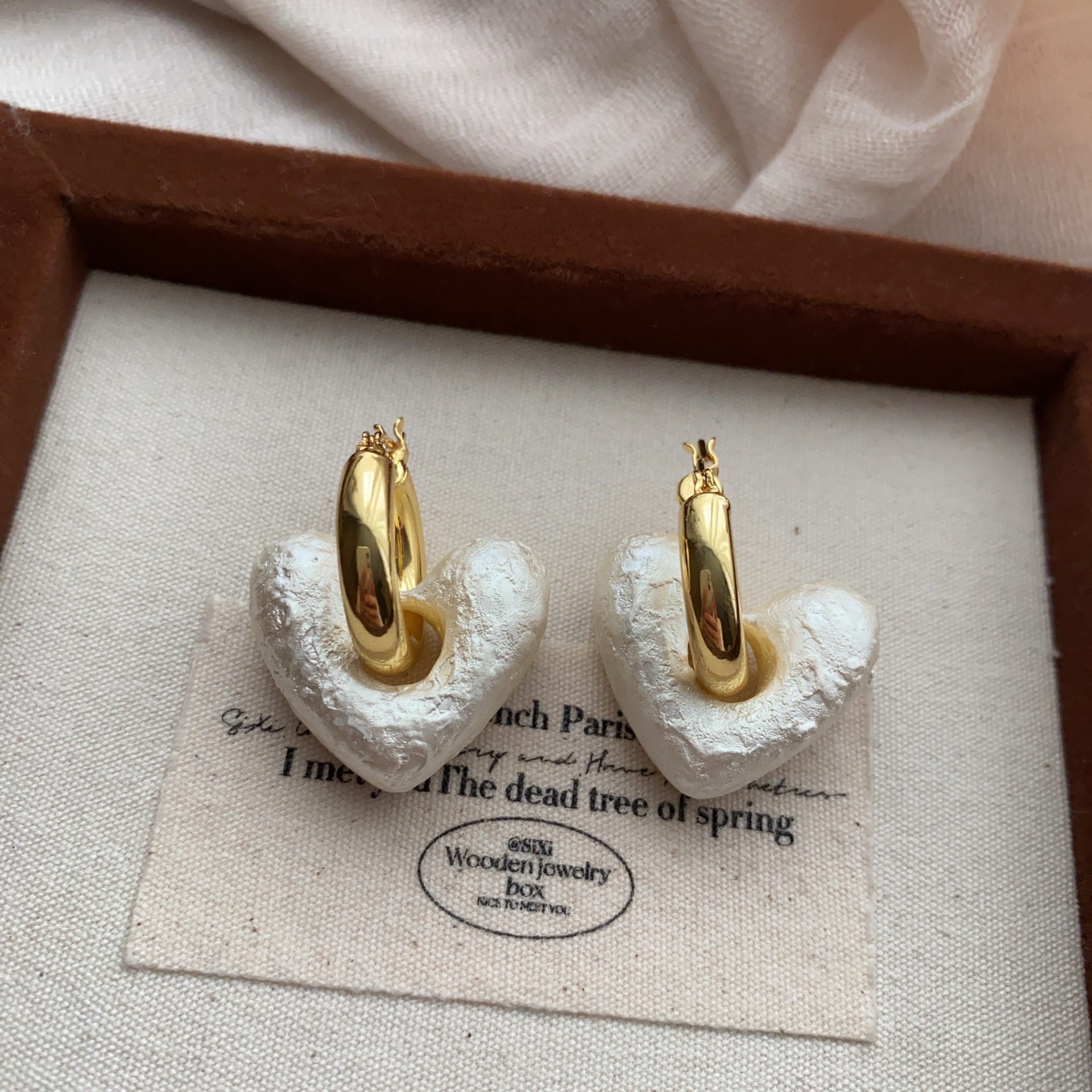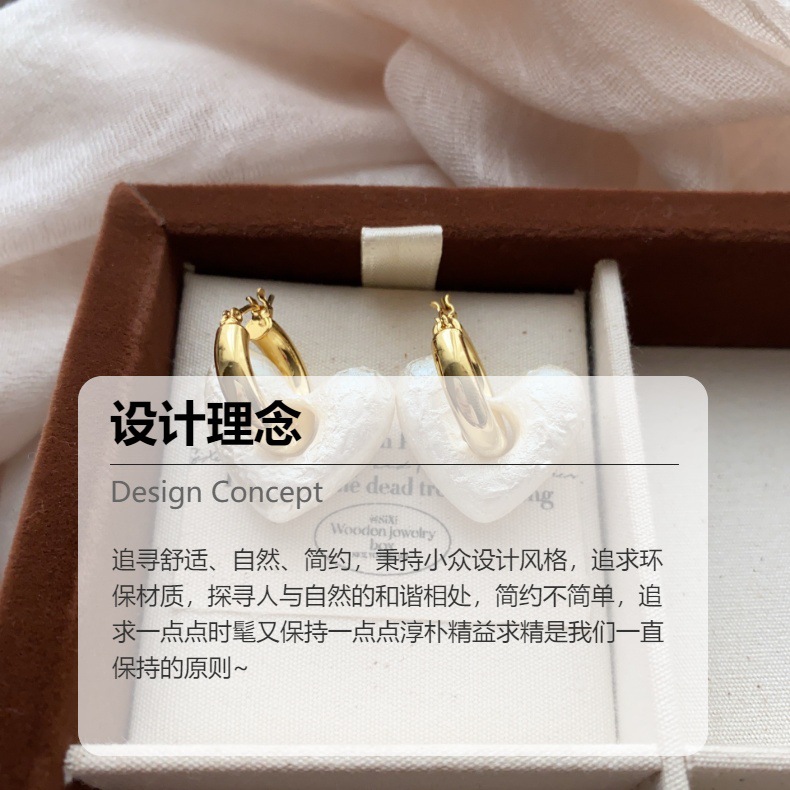 秋冬新款天然树脂耳钉奶白色气质小众设计爱心形状耳扣百搭耳环女