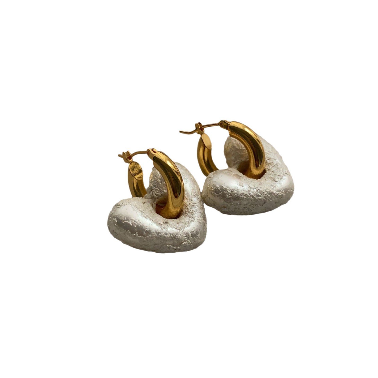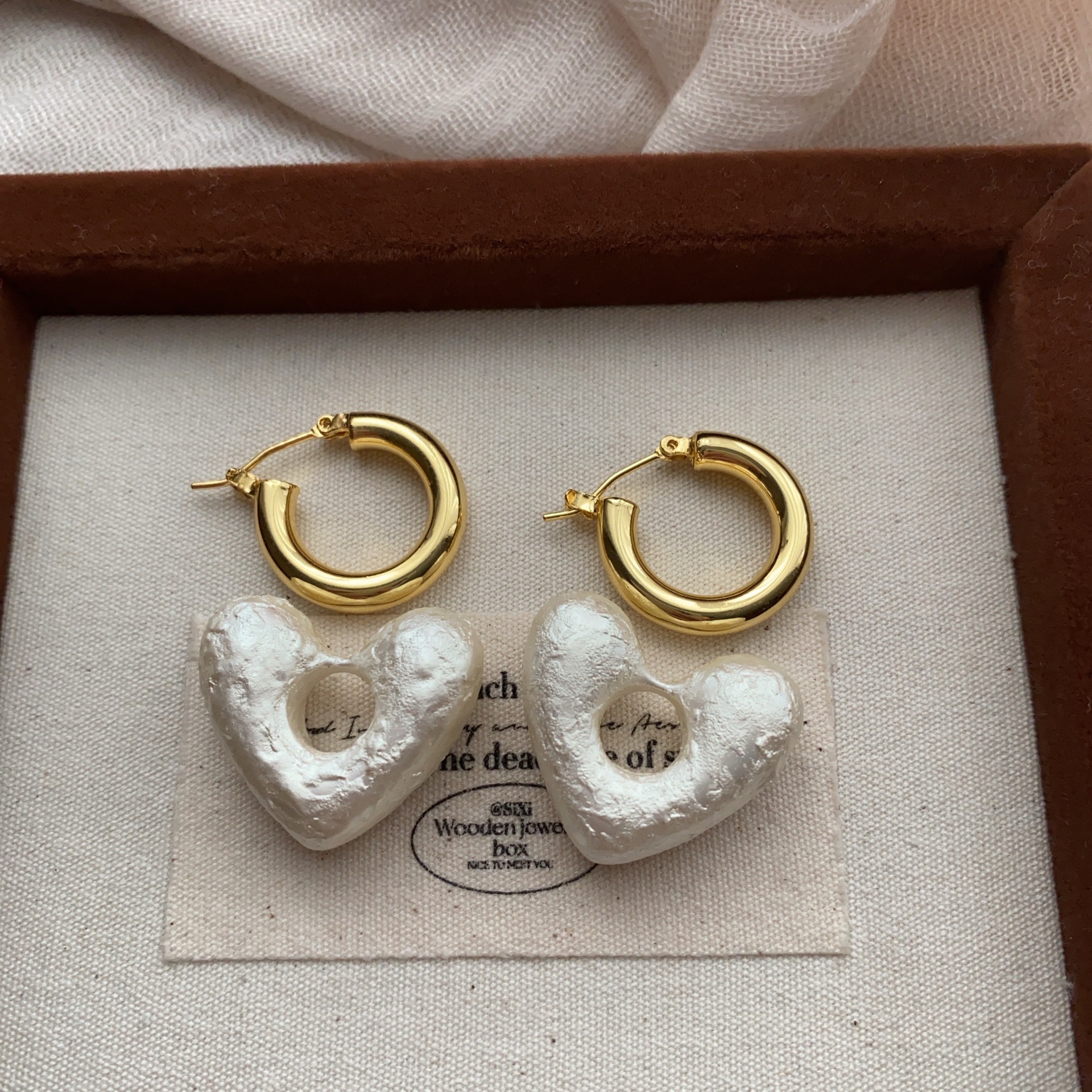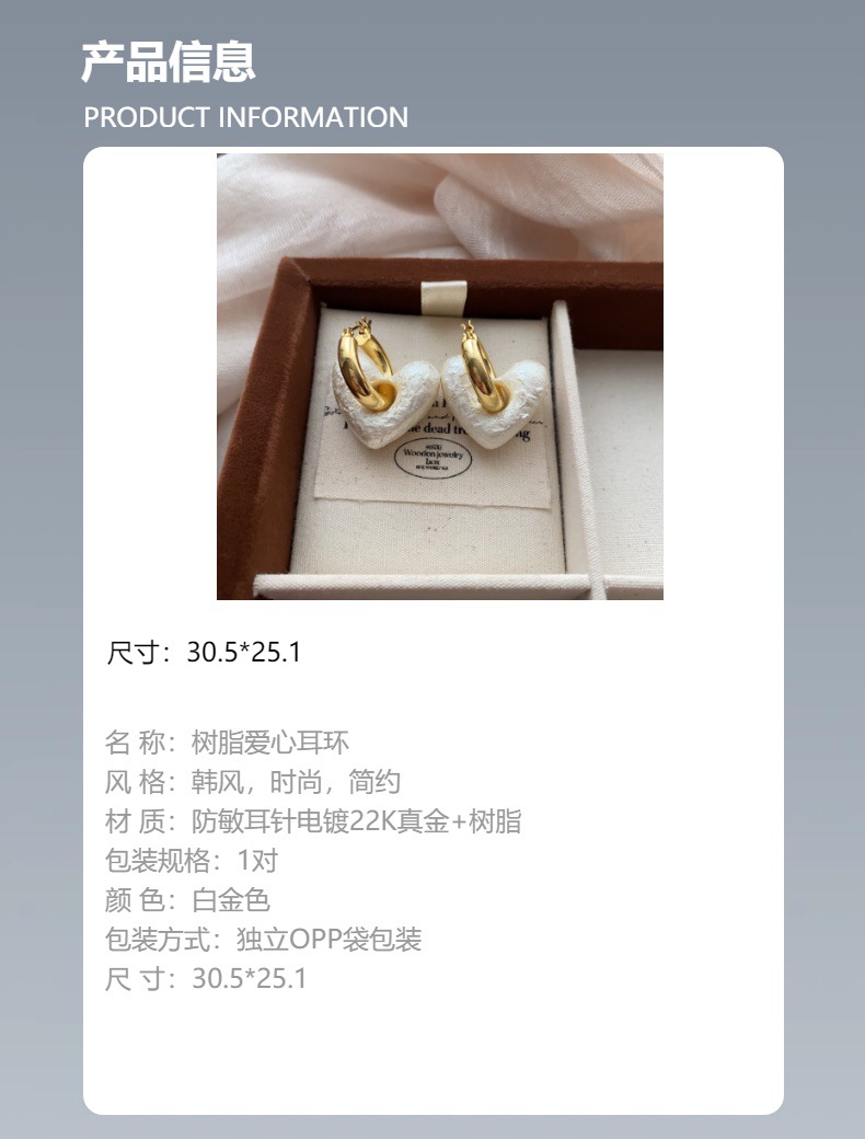 秋冬新款天然树脂耳钉奶白色气质小众设计爱心形状耳扣百搭耳环女