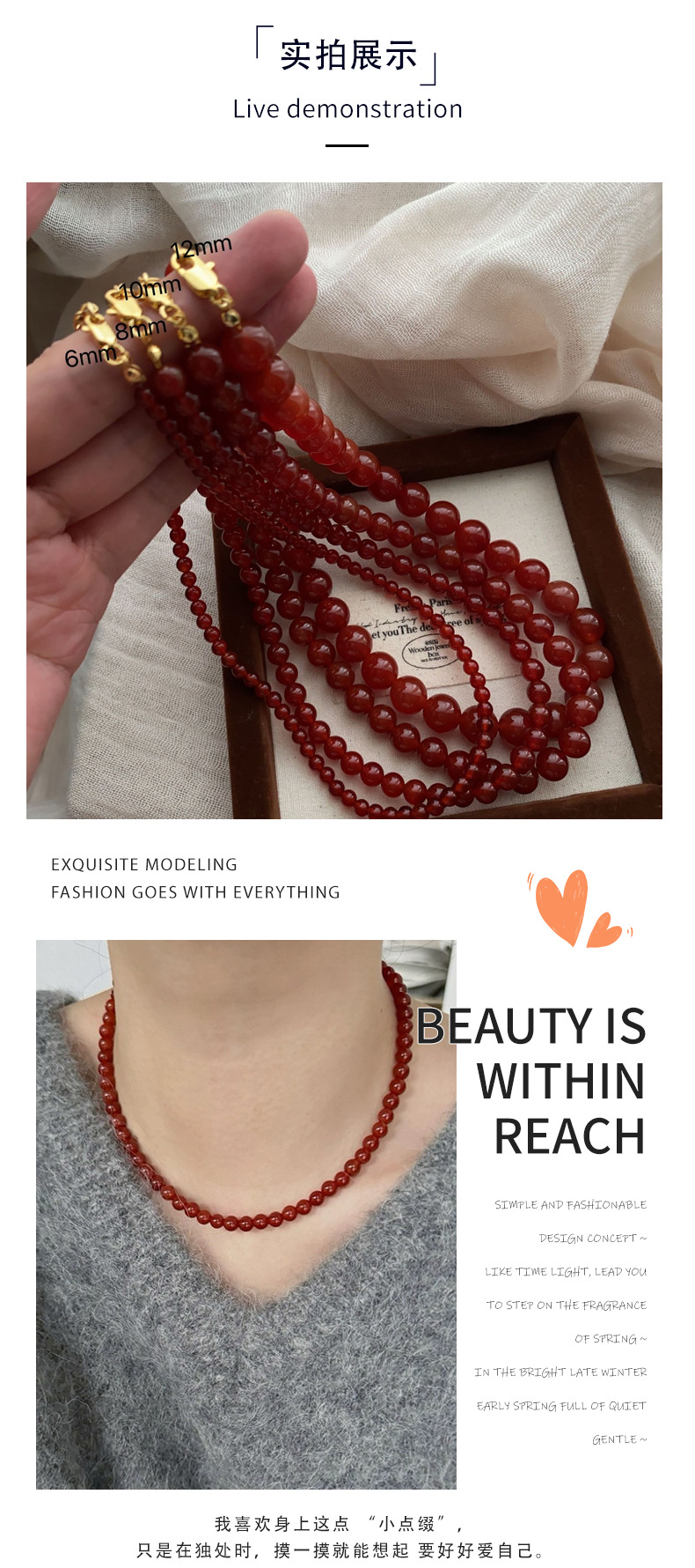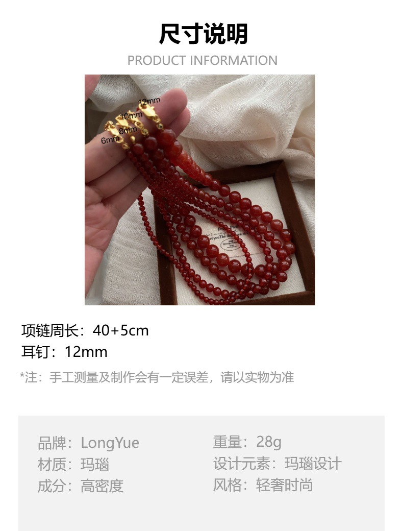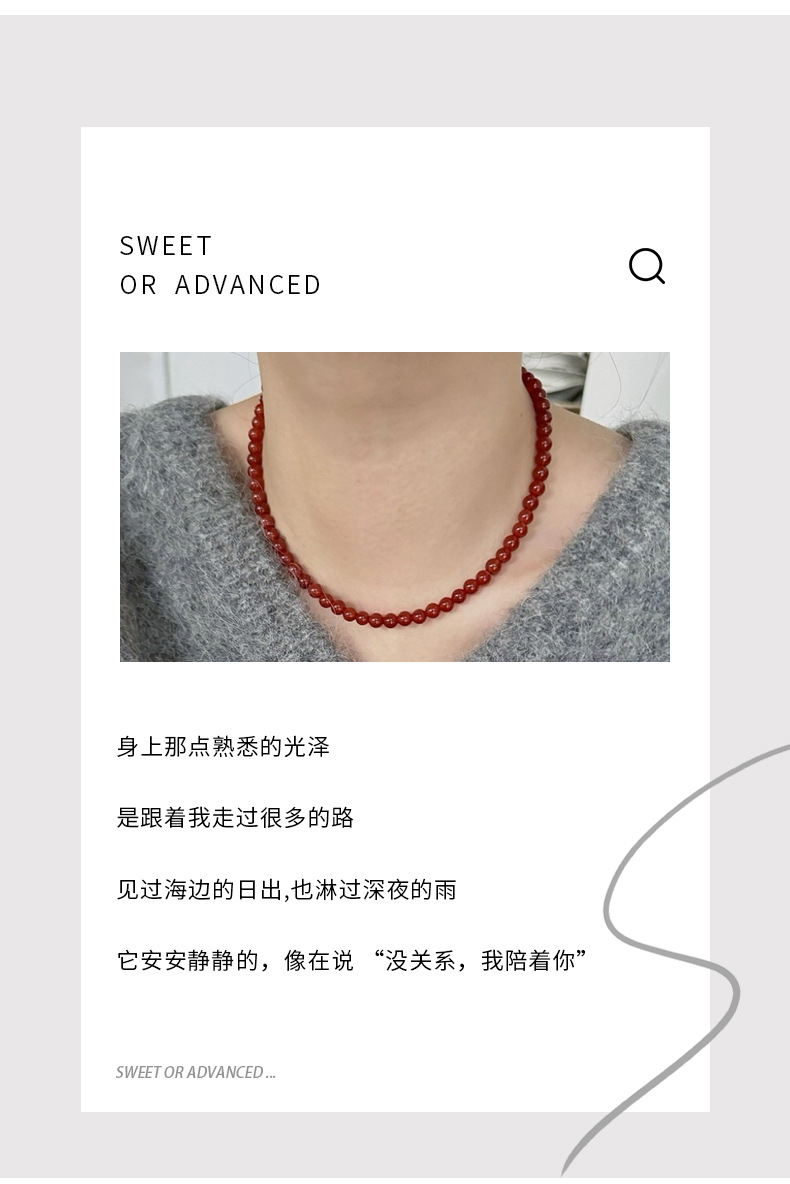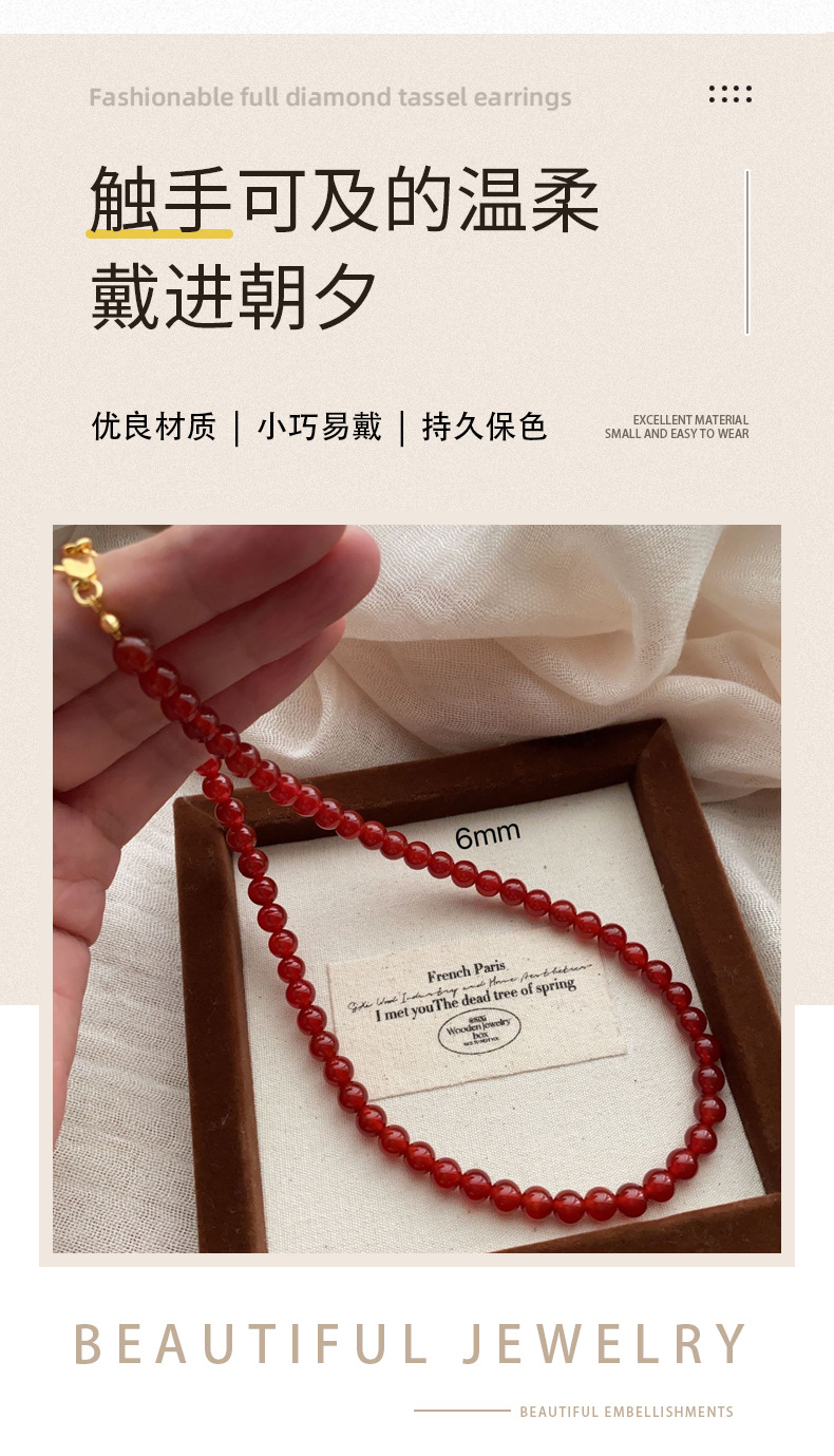 新中式复古红玛瑙项链气质简约时尚项链锁骨链红玛瑙串珠高级百搭