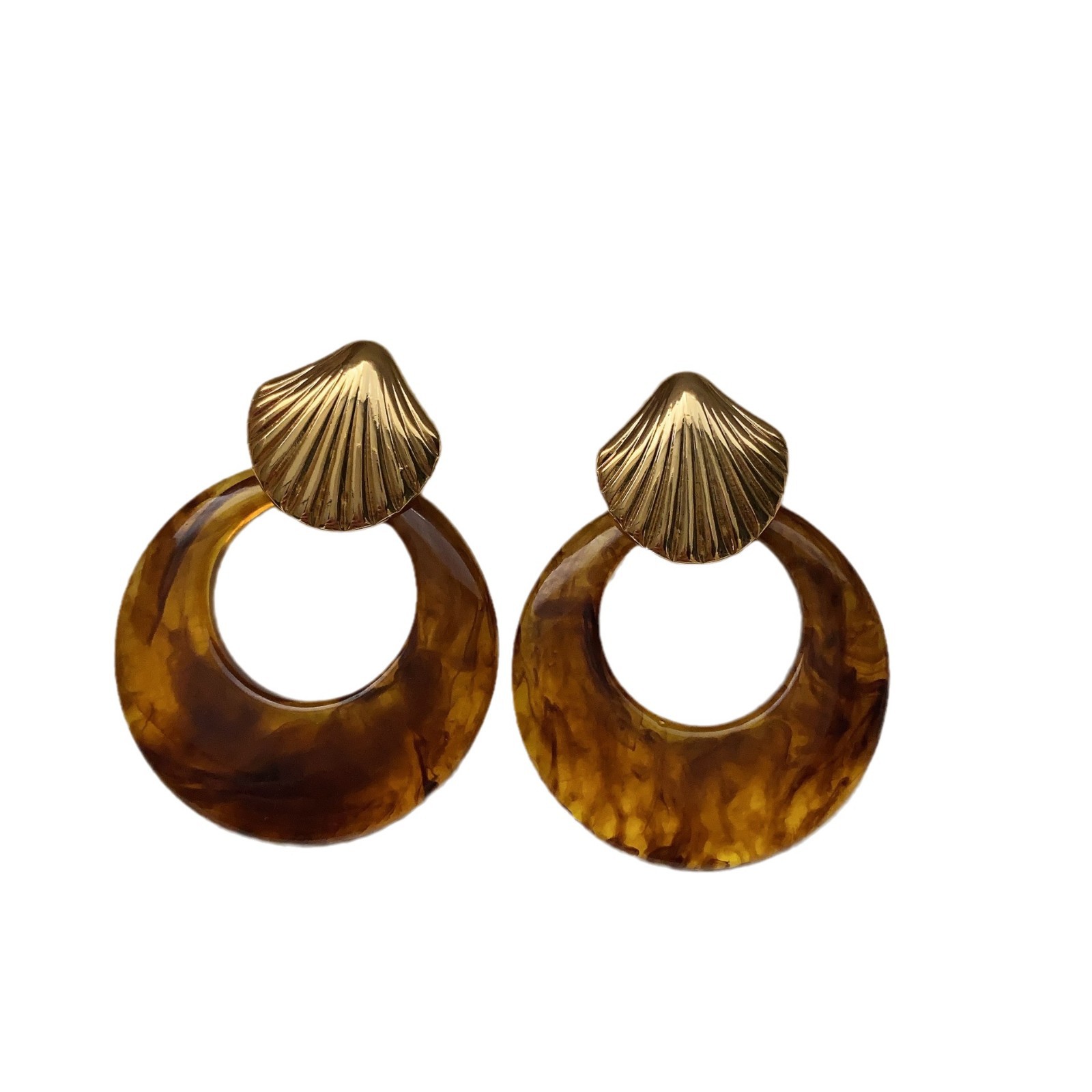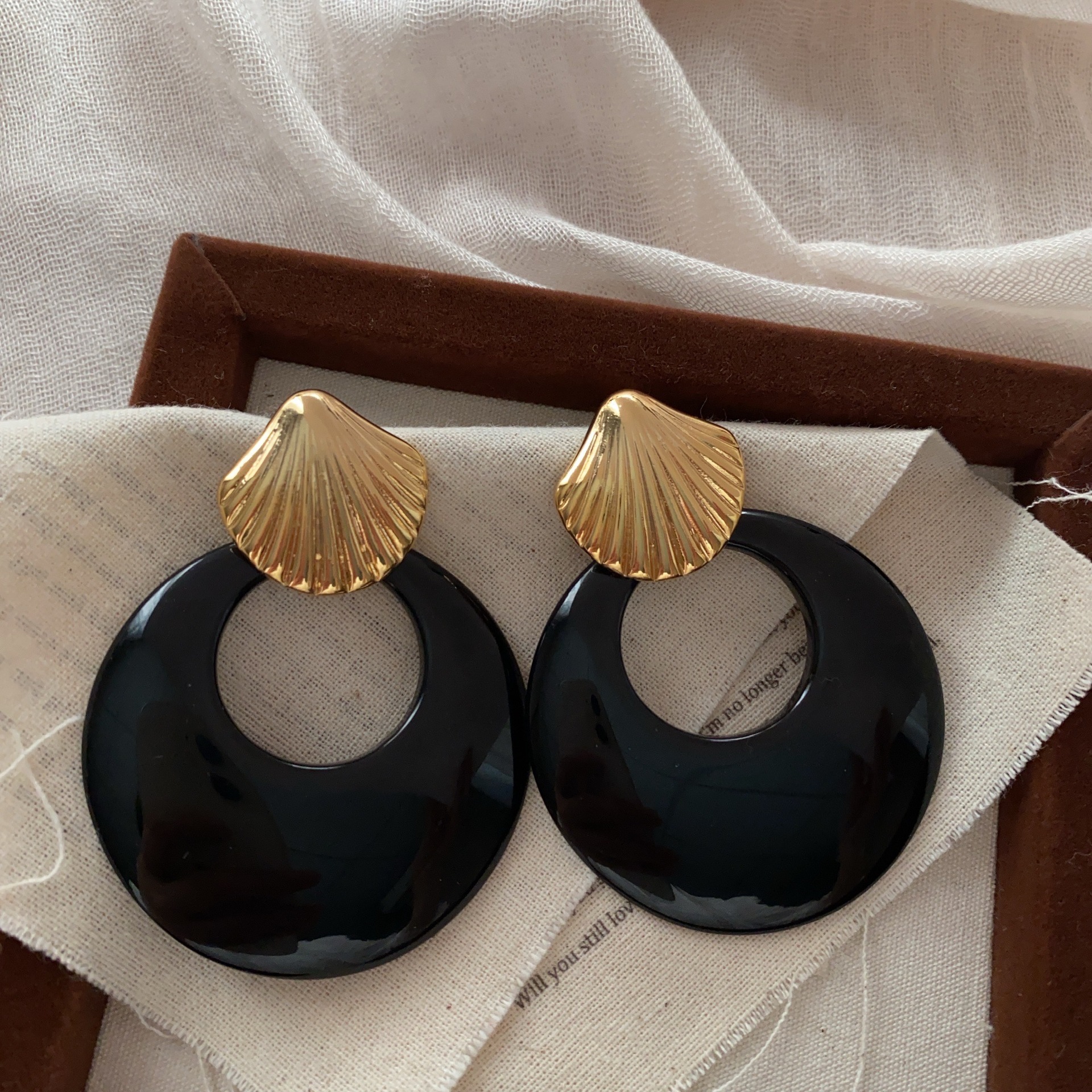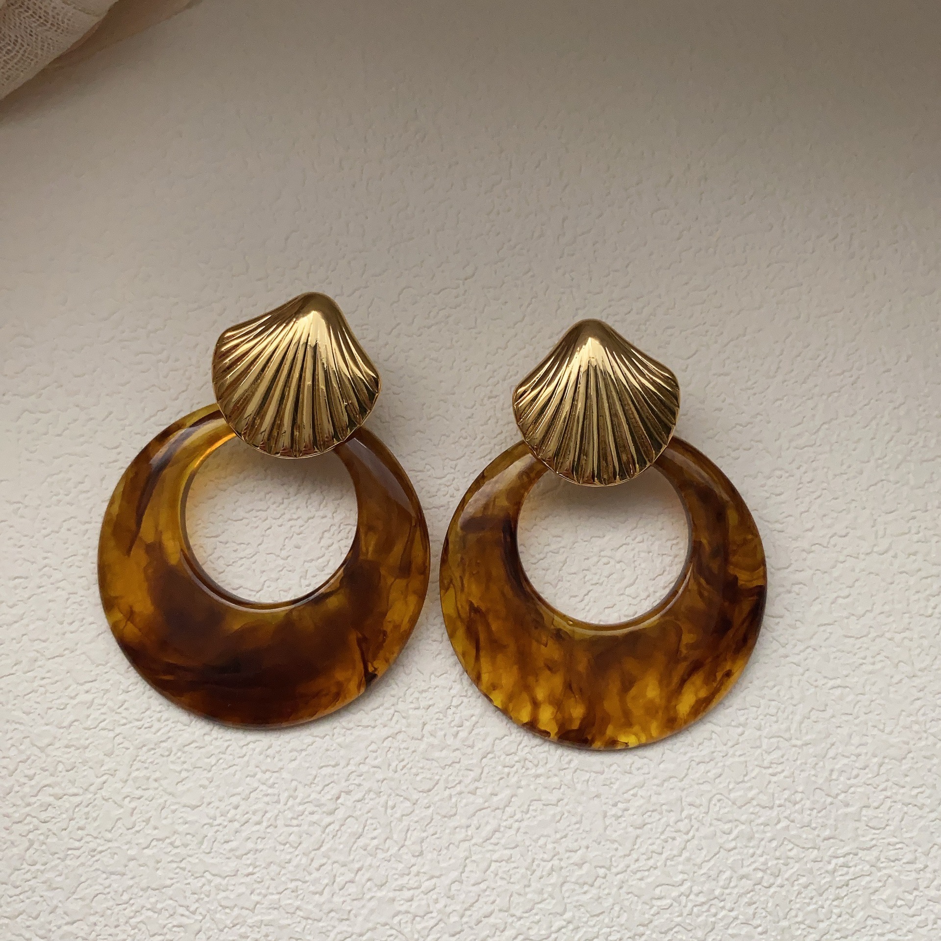 复古风金属贝壳耳环玄学耳饰气质轻奢高级感新款耳钉秋冬夸张首饰