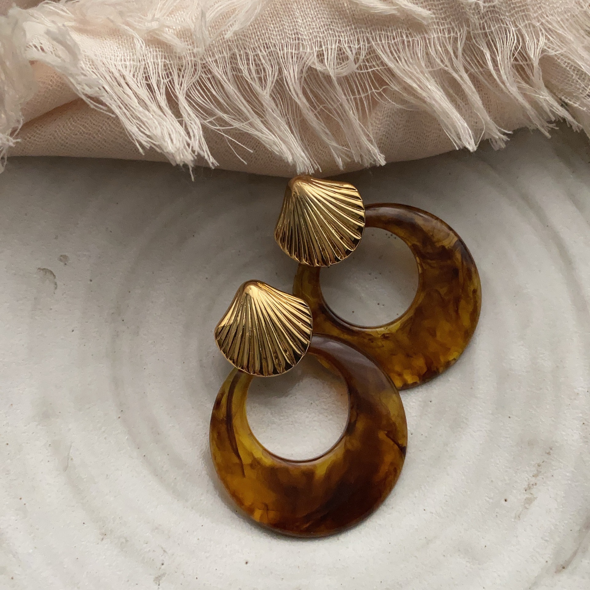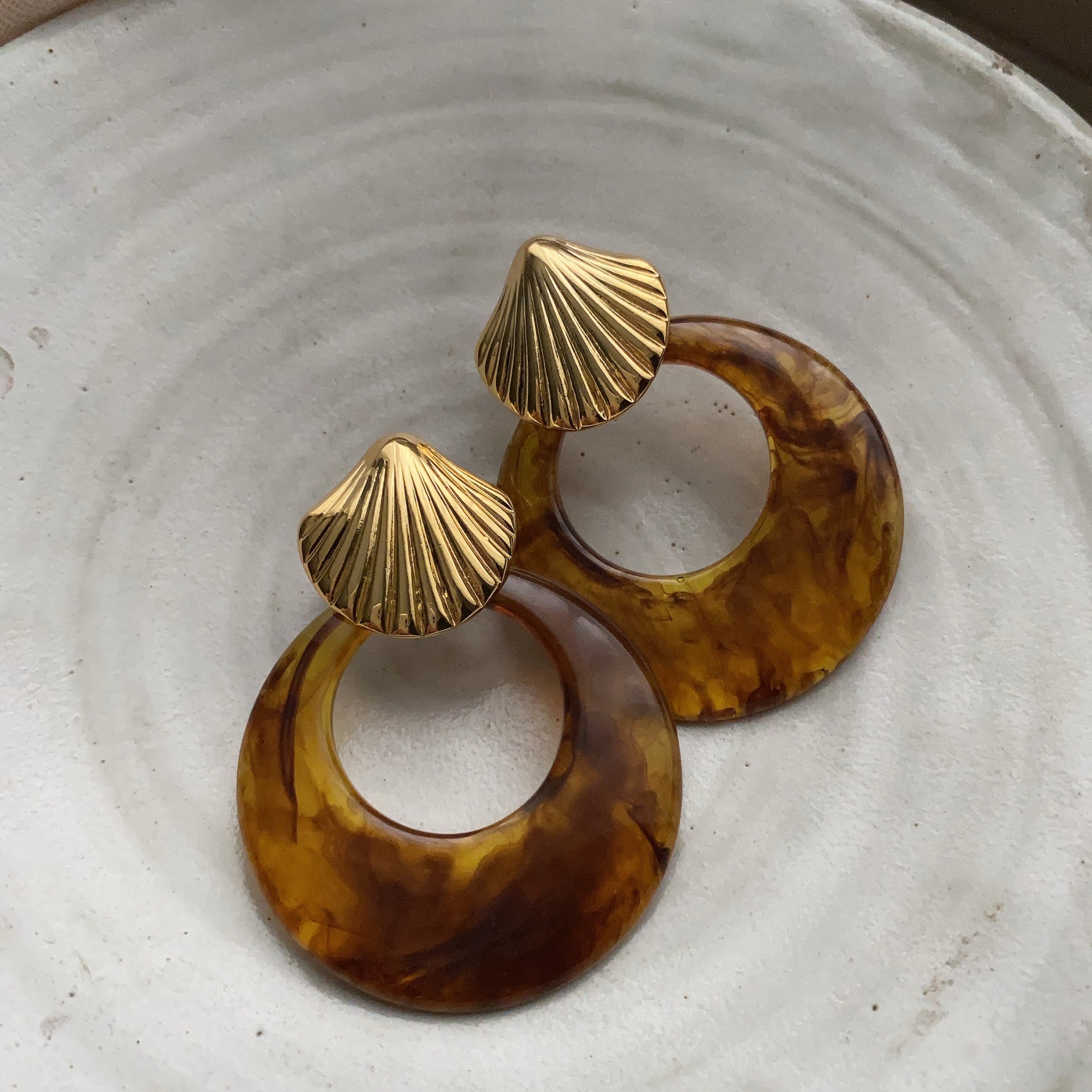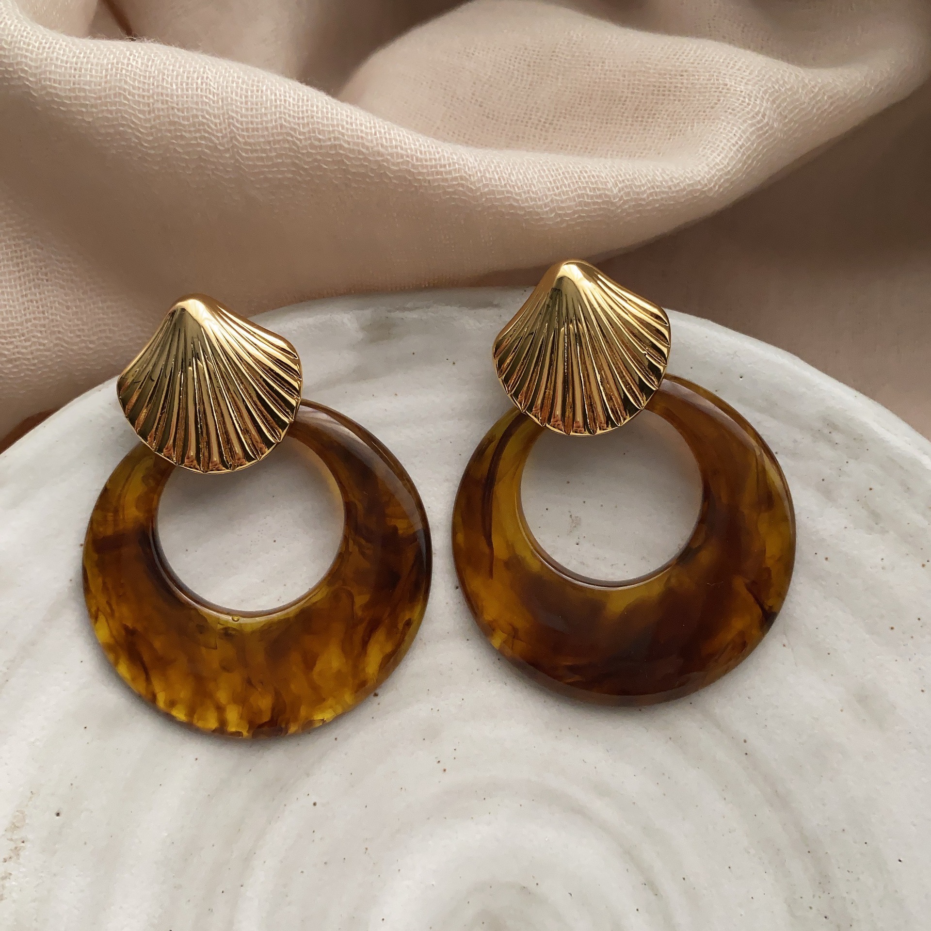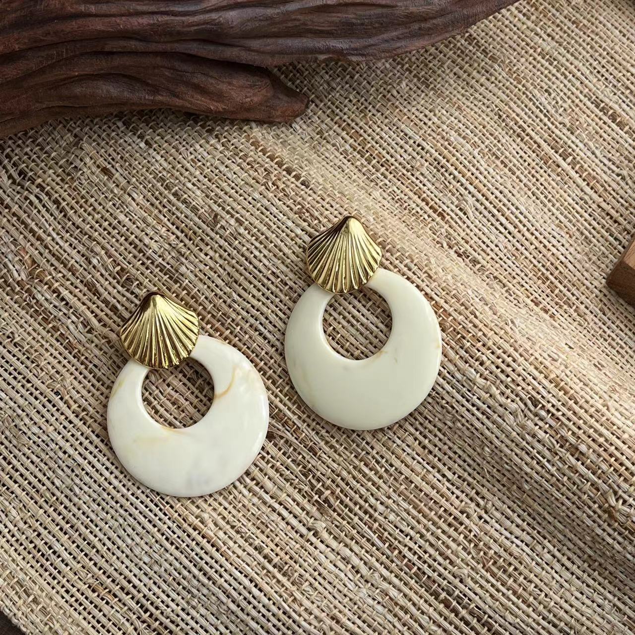 复古风金属贝壳耳环玄学耳饰气质轻奢高级感新款耳钉秋冬夸张首饰