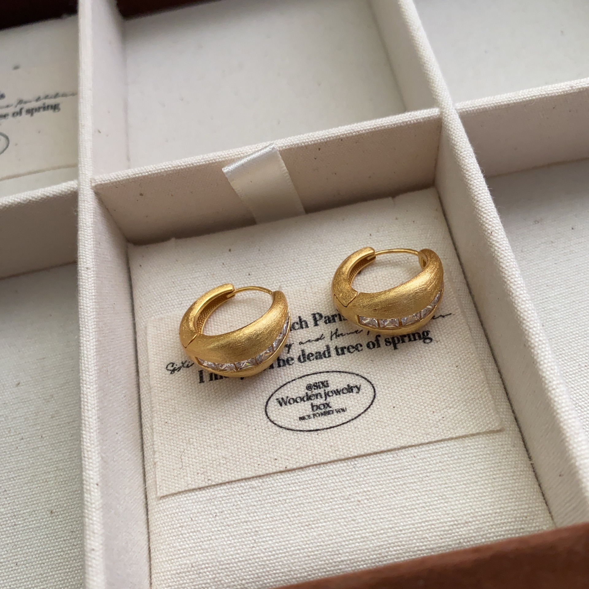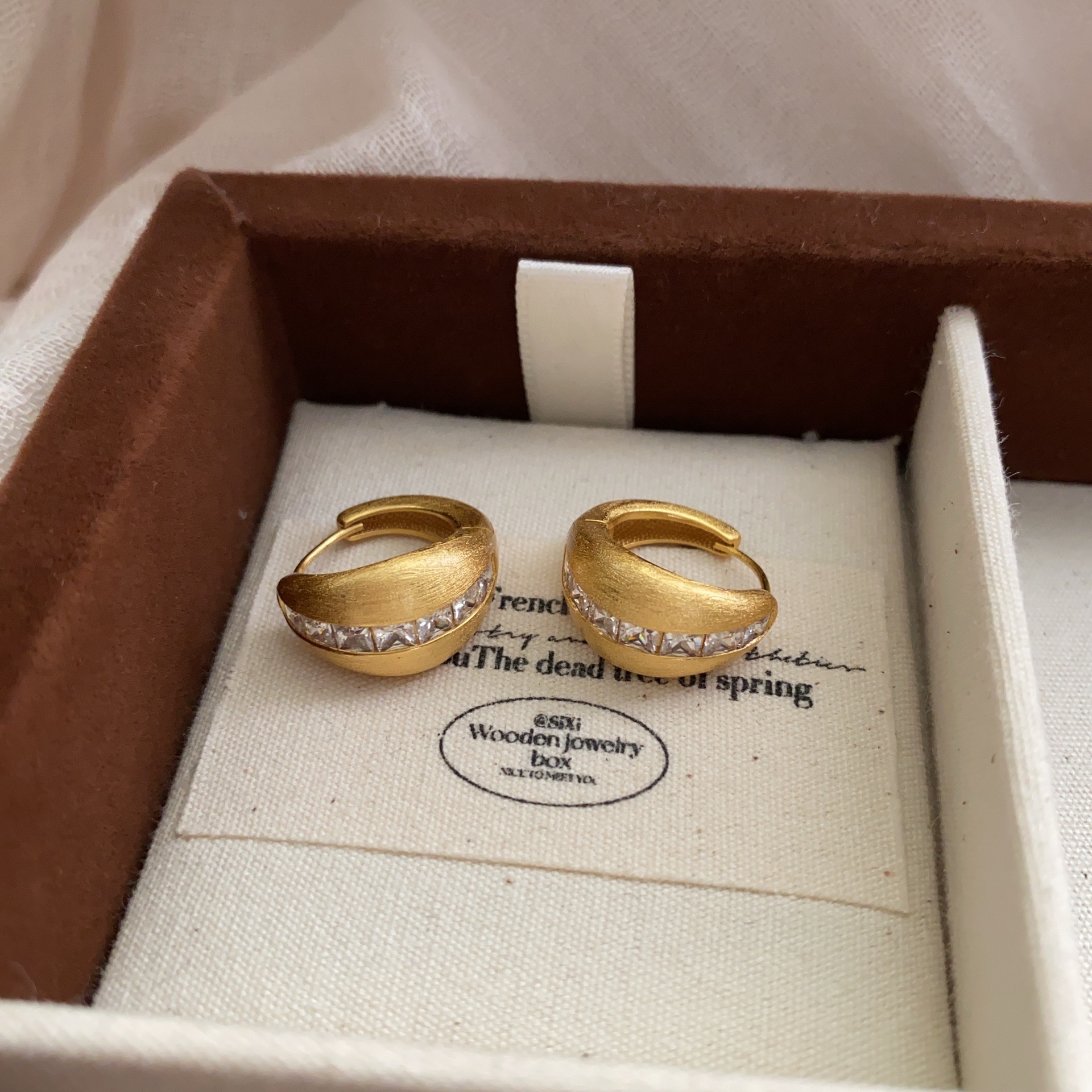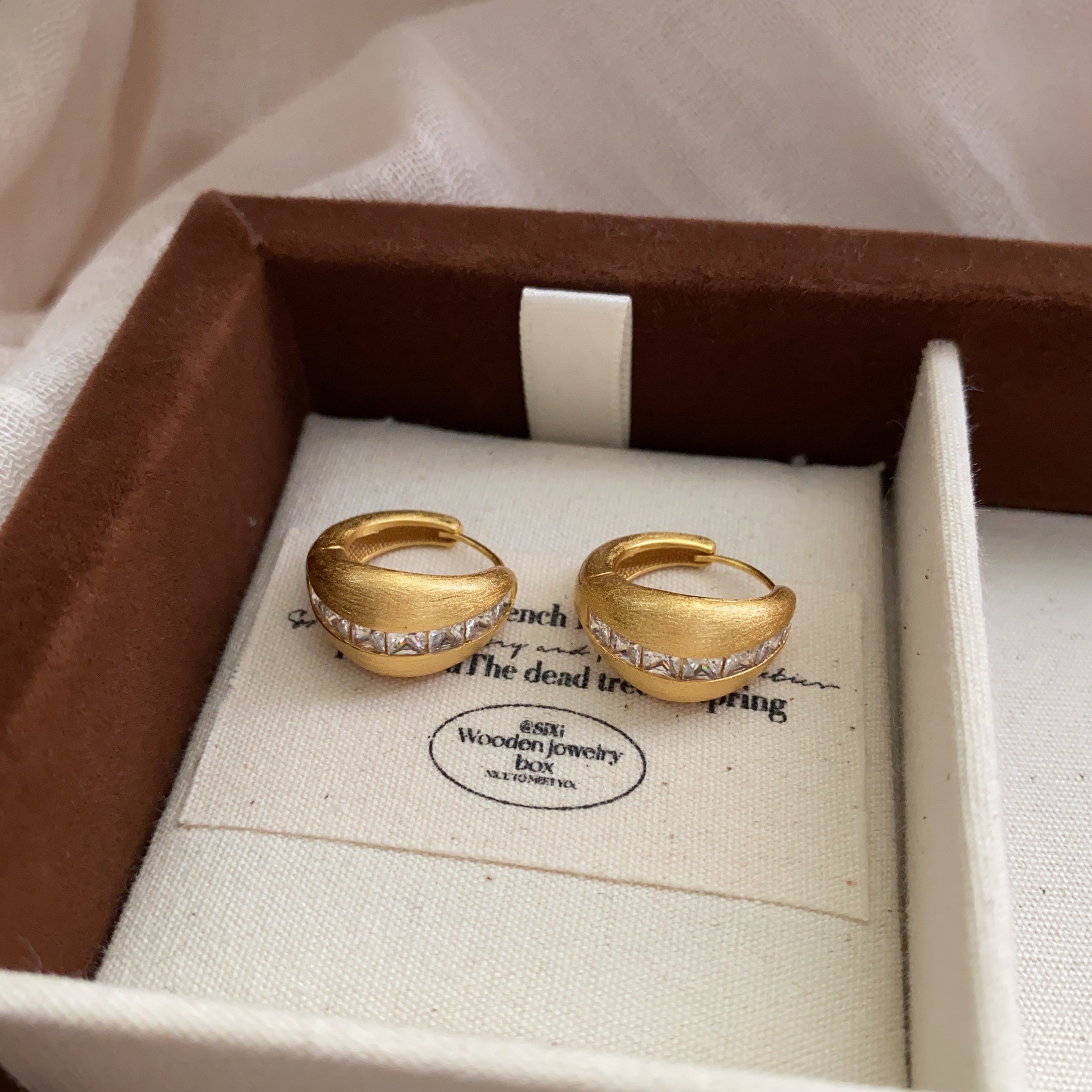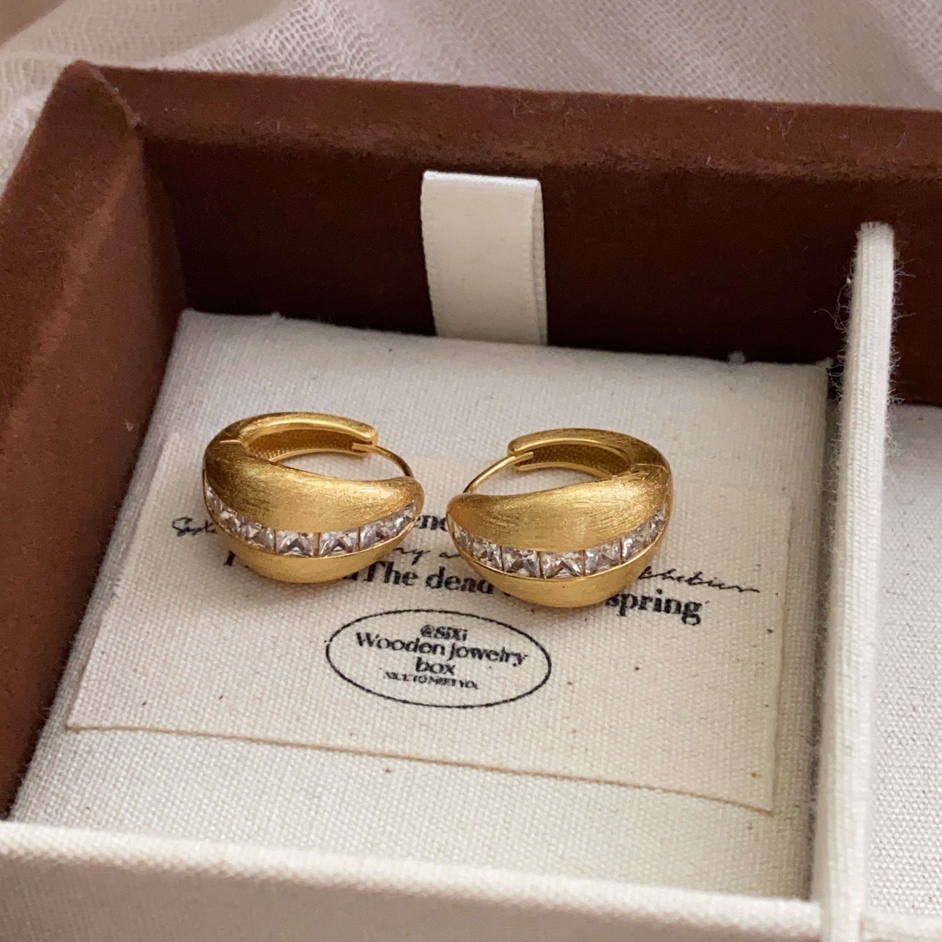 复古简约新款高级感沙金微镶锆石耳圈欧美时尚锆石复古轻奢耳钉女