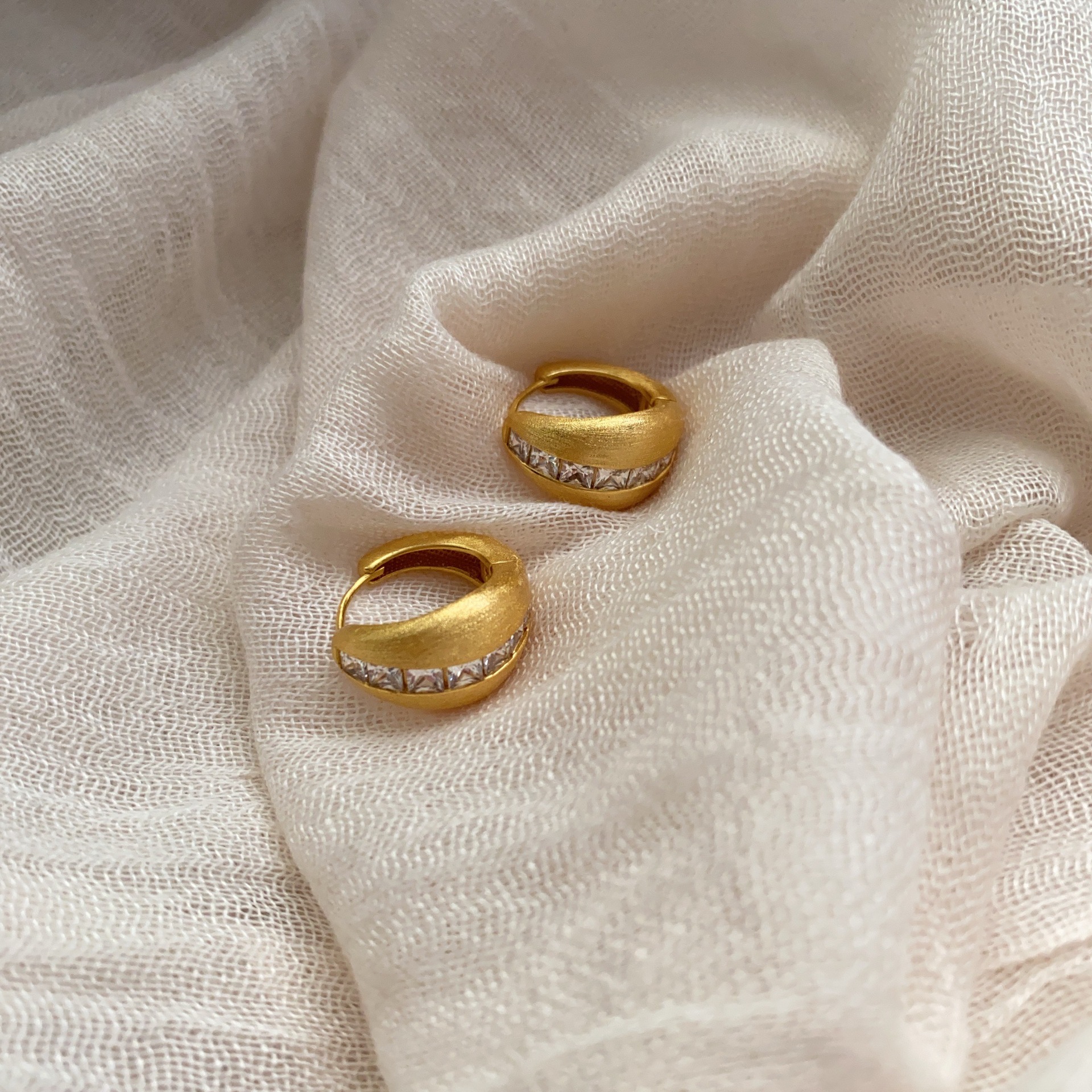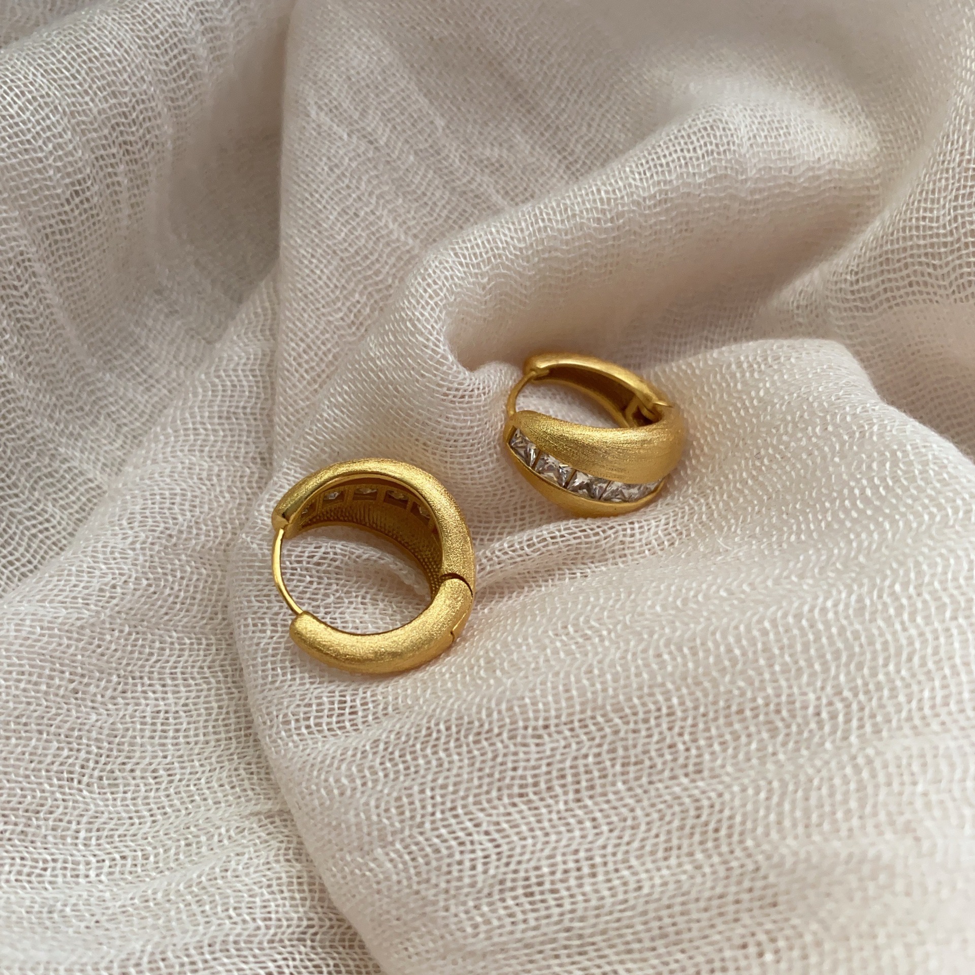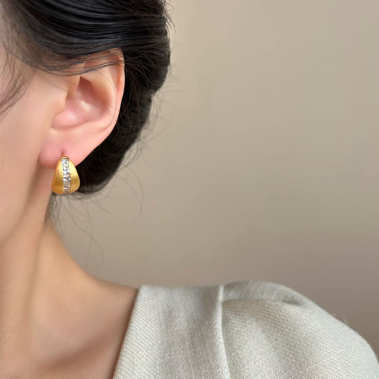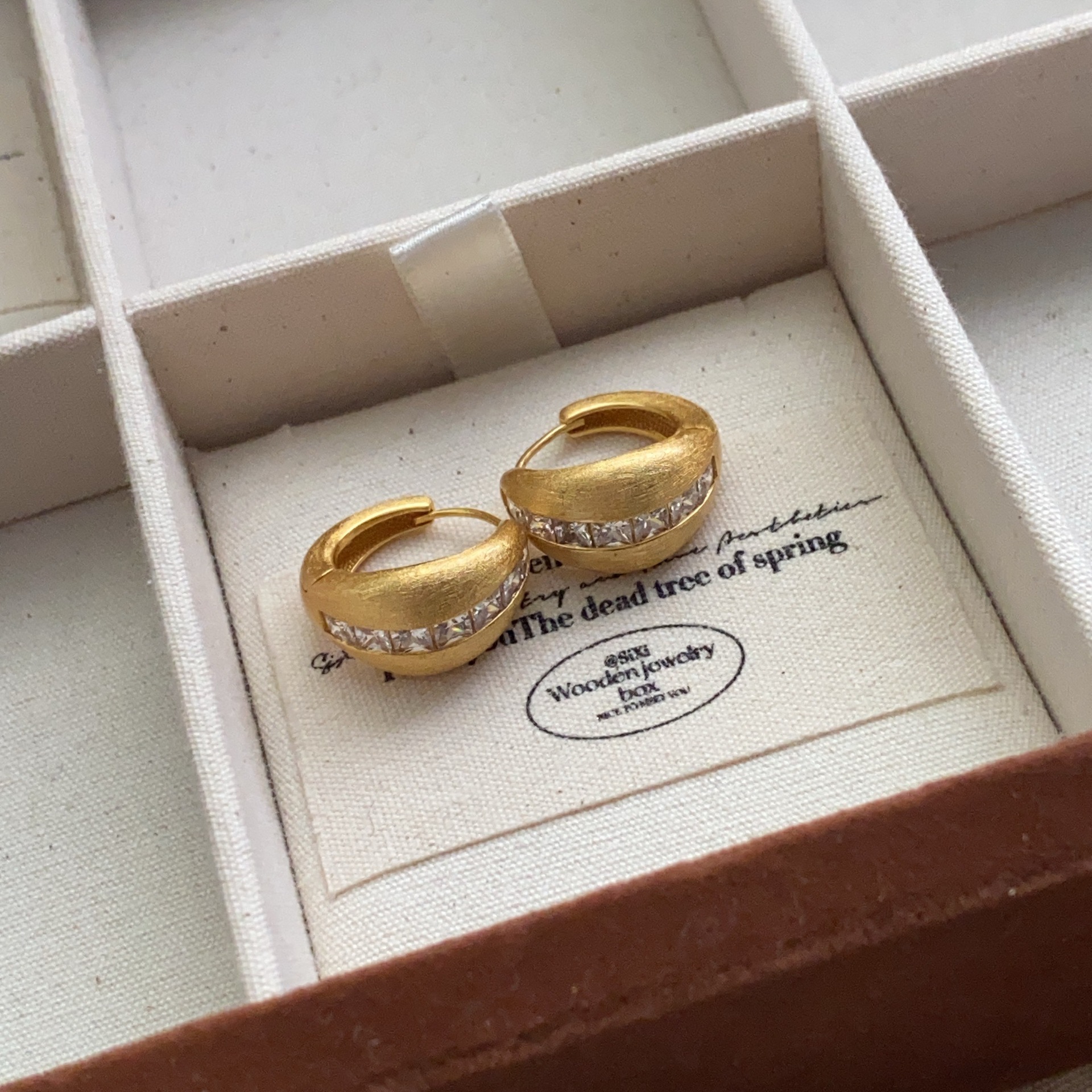 复古简约新款高级感沙金微镶锆石耳圈欧美时尚锆石复古轻奢耳钉女