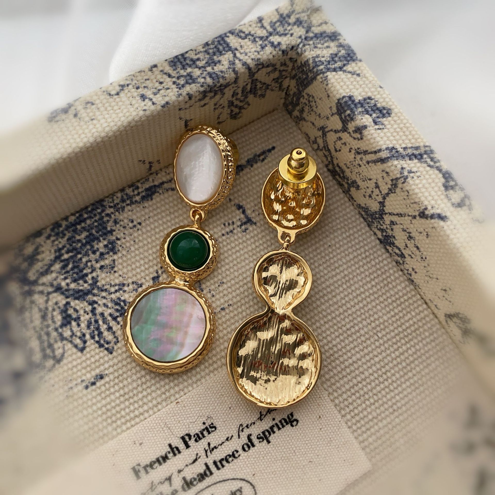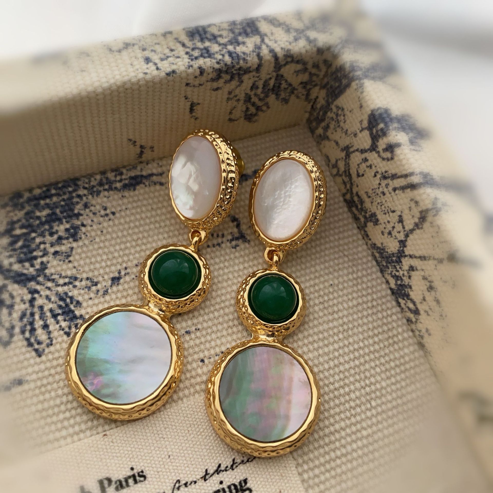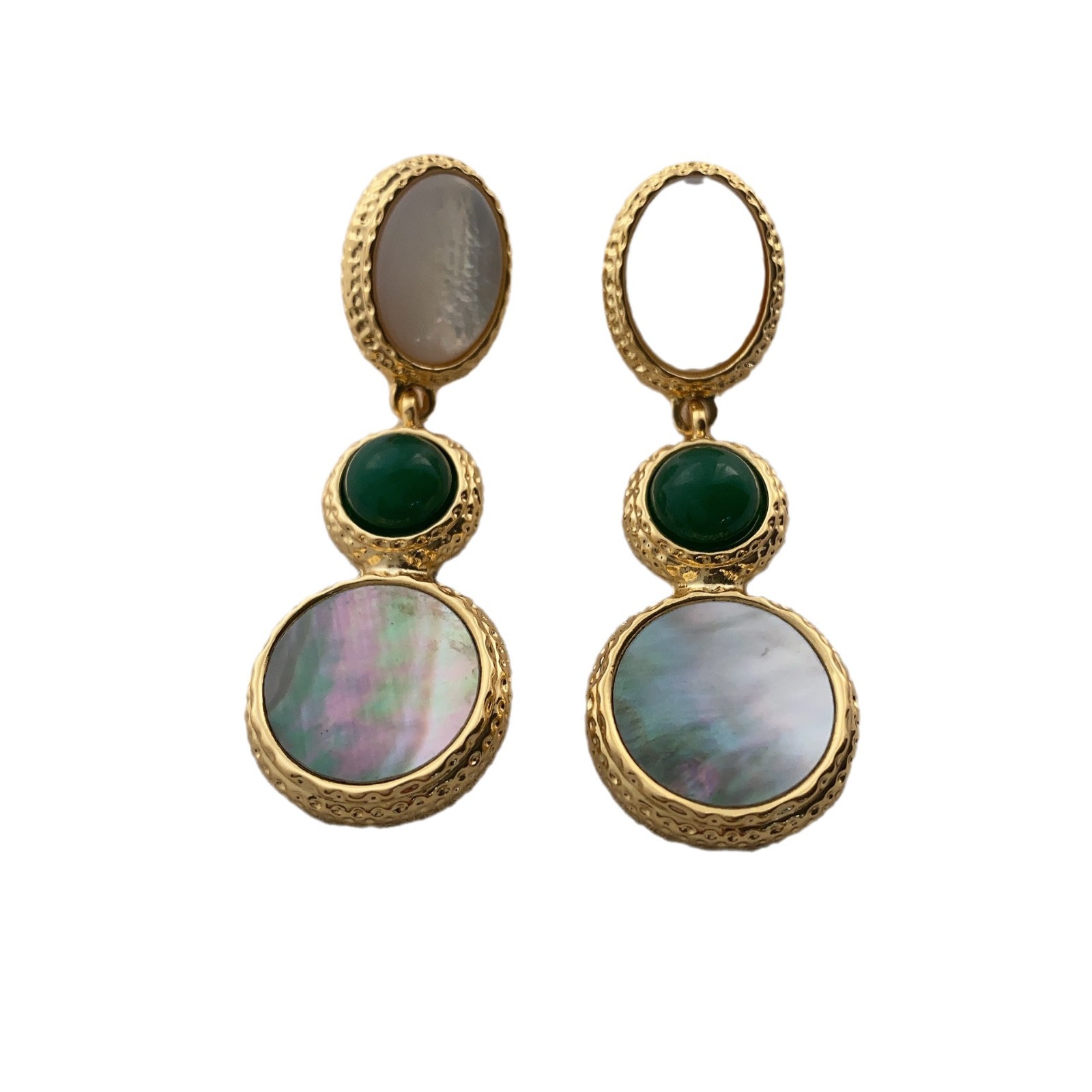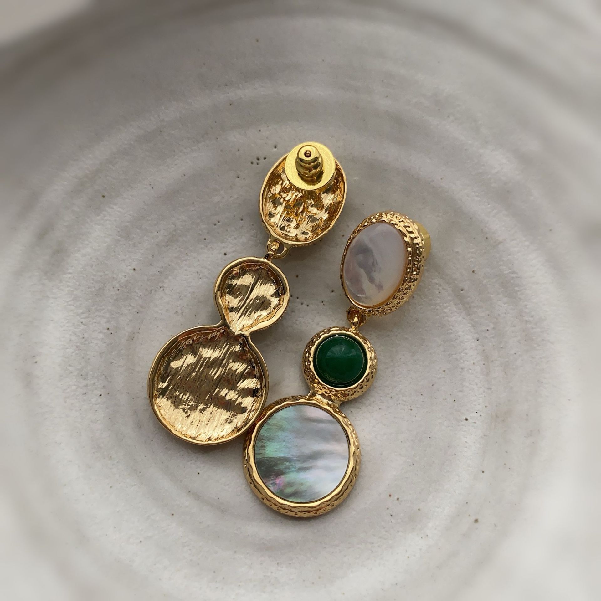 新款电镀22K真金耳环天然灰贝壳欧美时尚轻奢风复古高级百搭耳饰