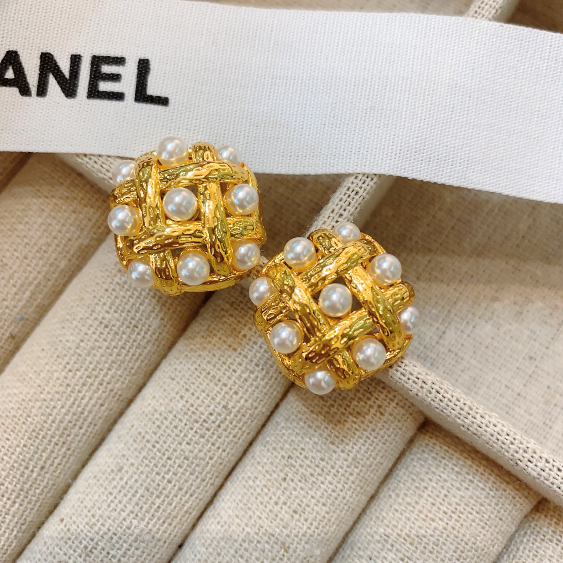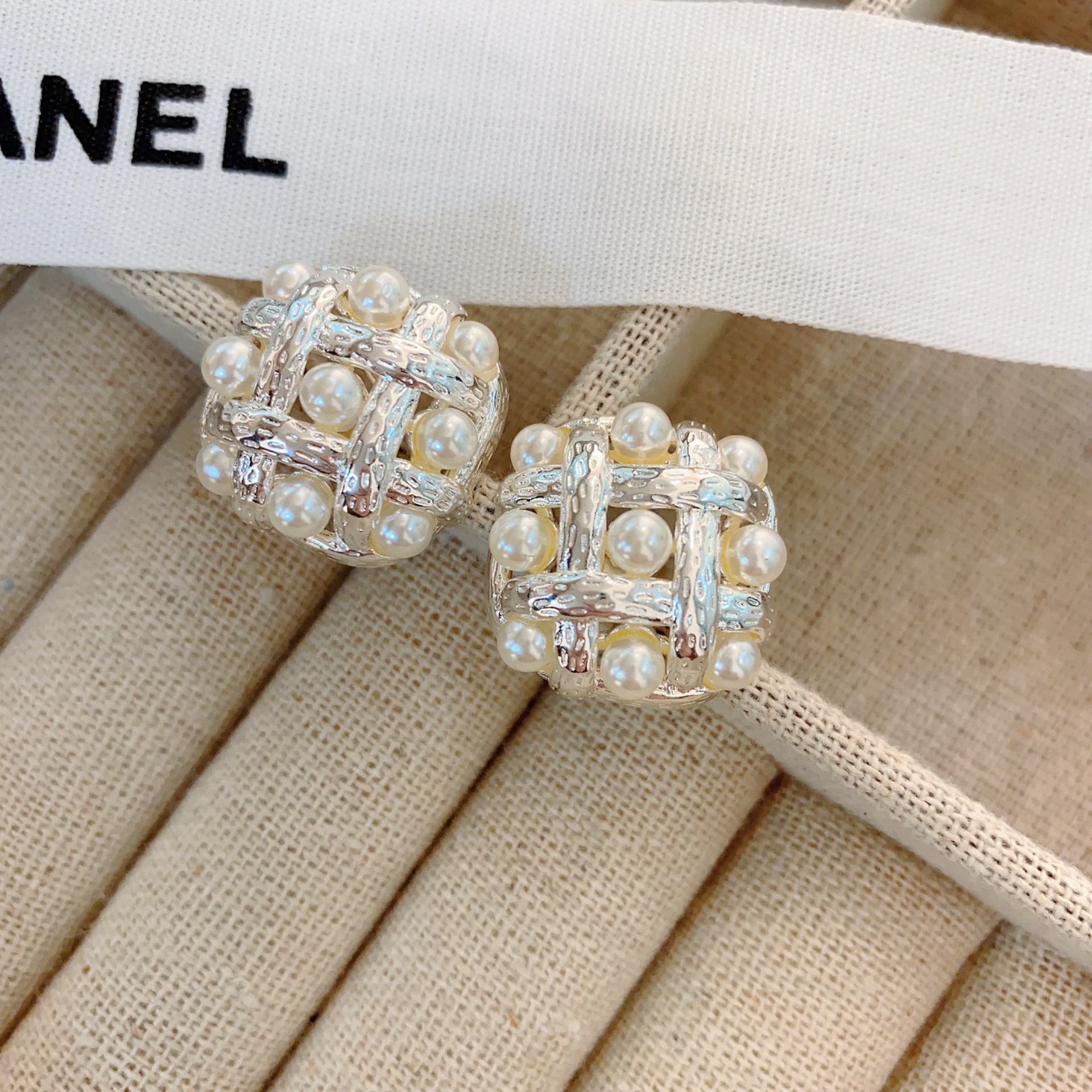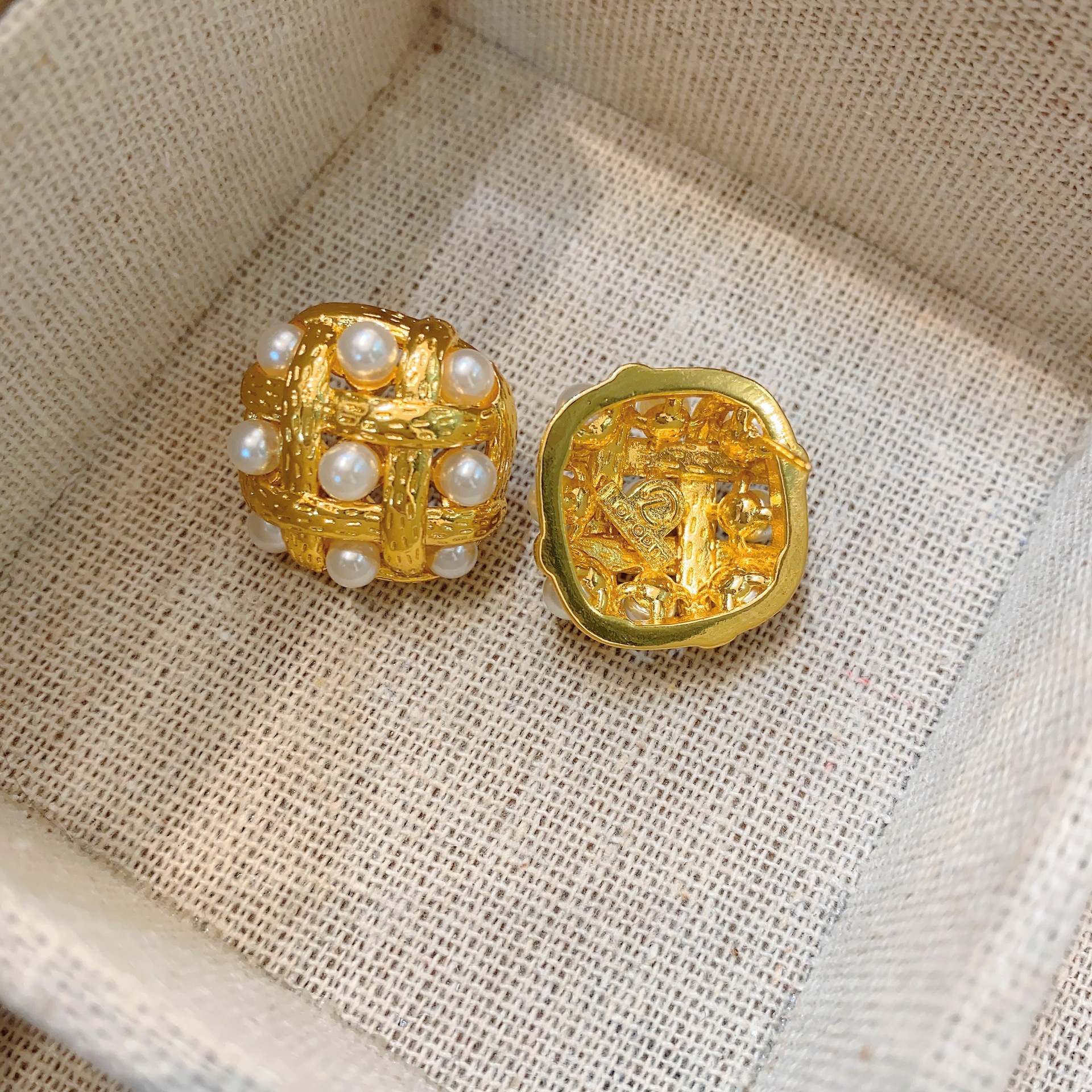 法式复古中古风时尚气质金属菱形珍珠耳钉小众独特精致高级感耳环