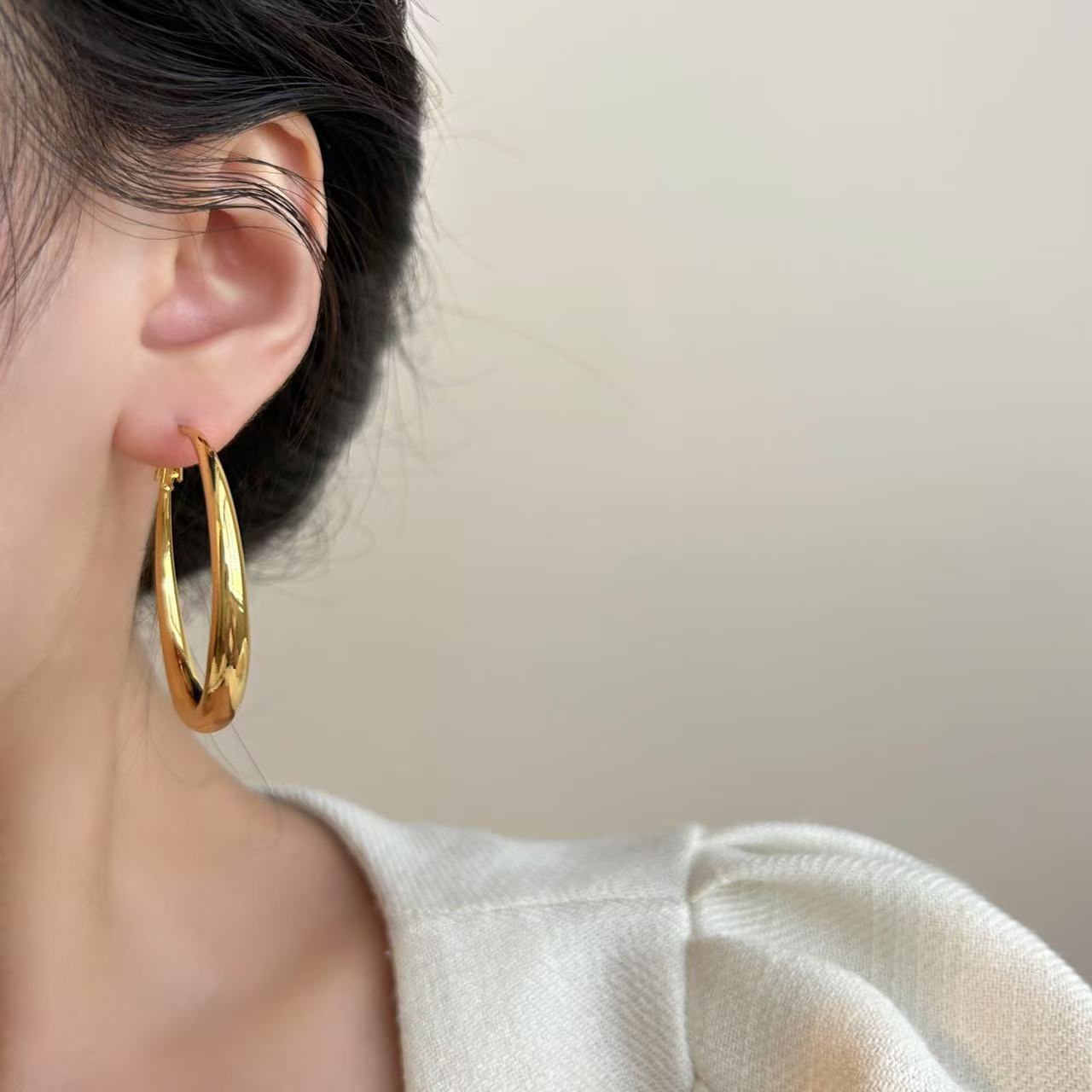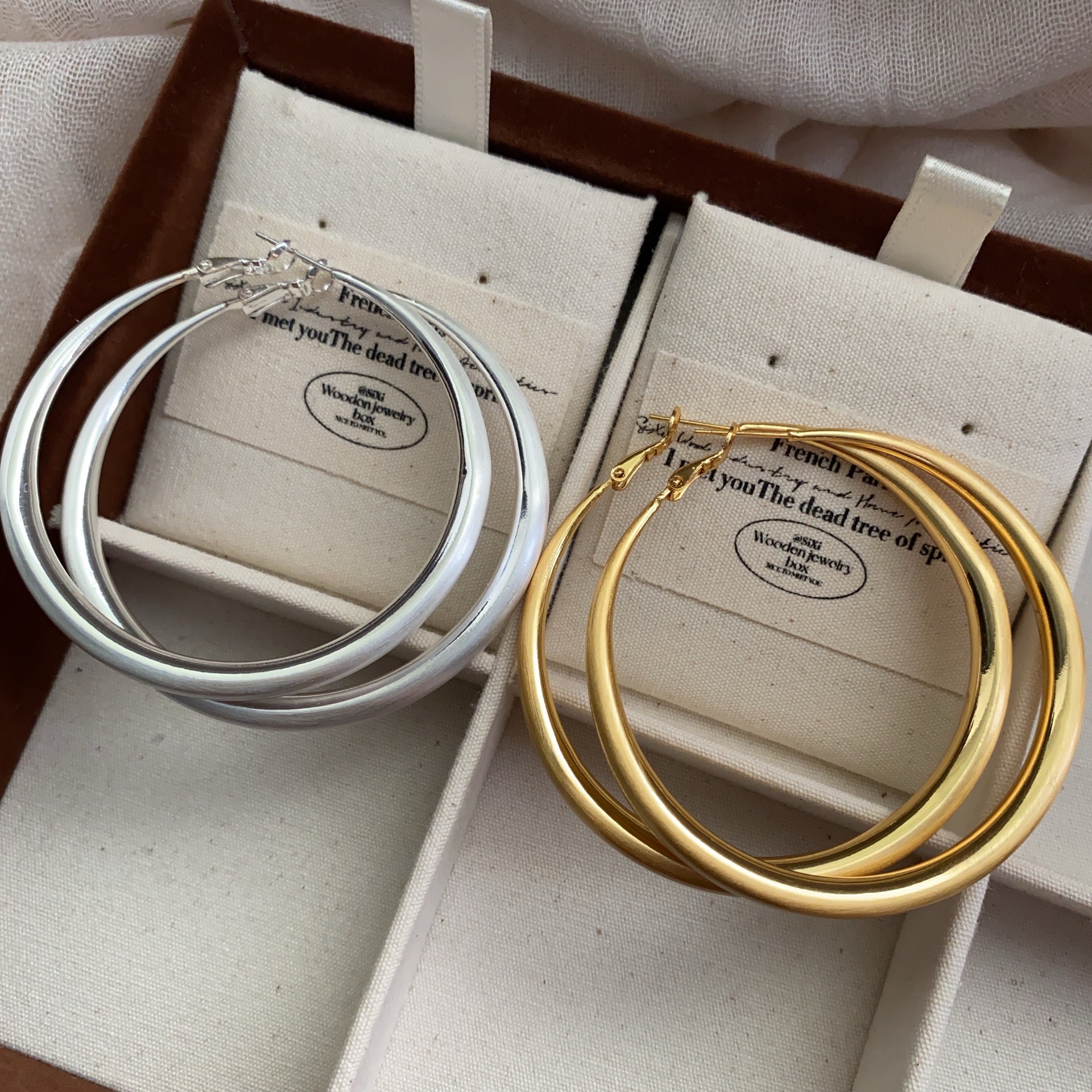 韩国金属冷淡风个性圈圈耳环高级感拉丝个性大耳圈原宿风潮流耳环