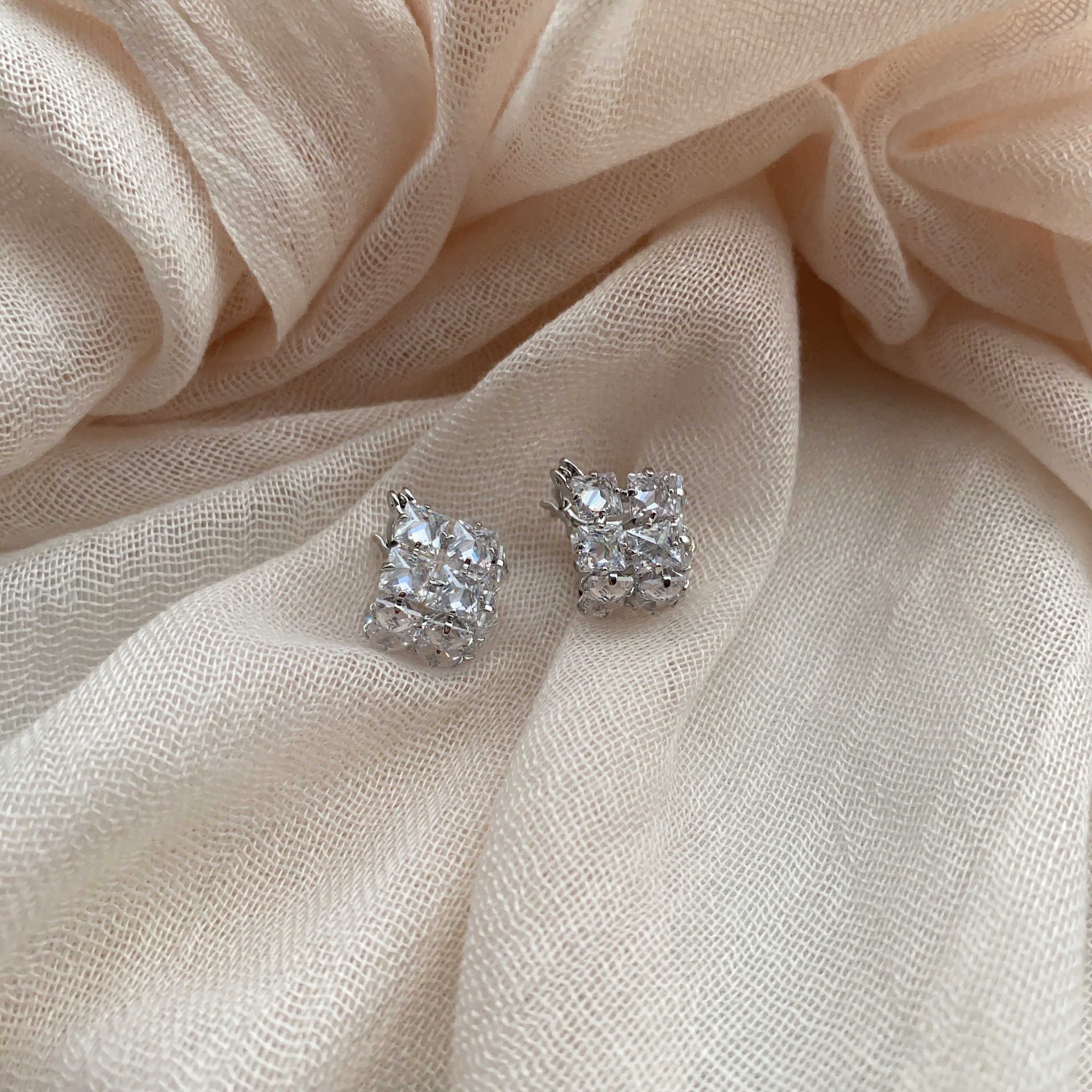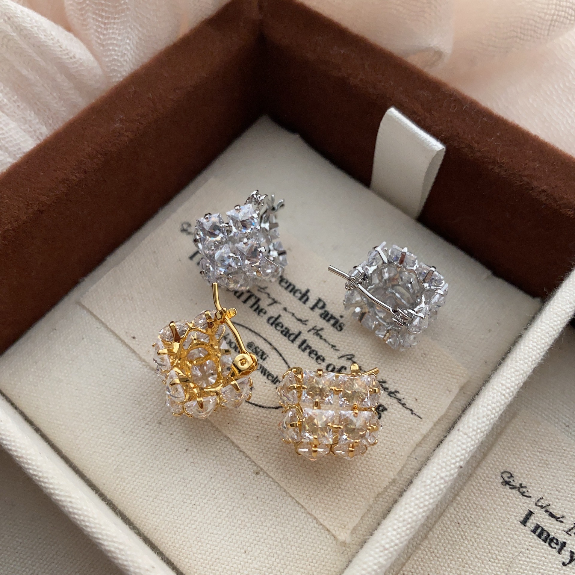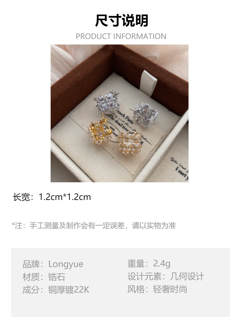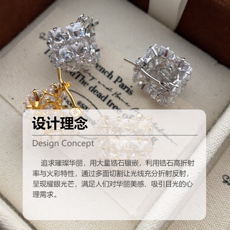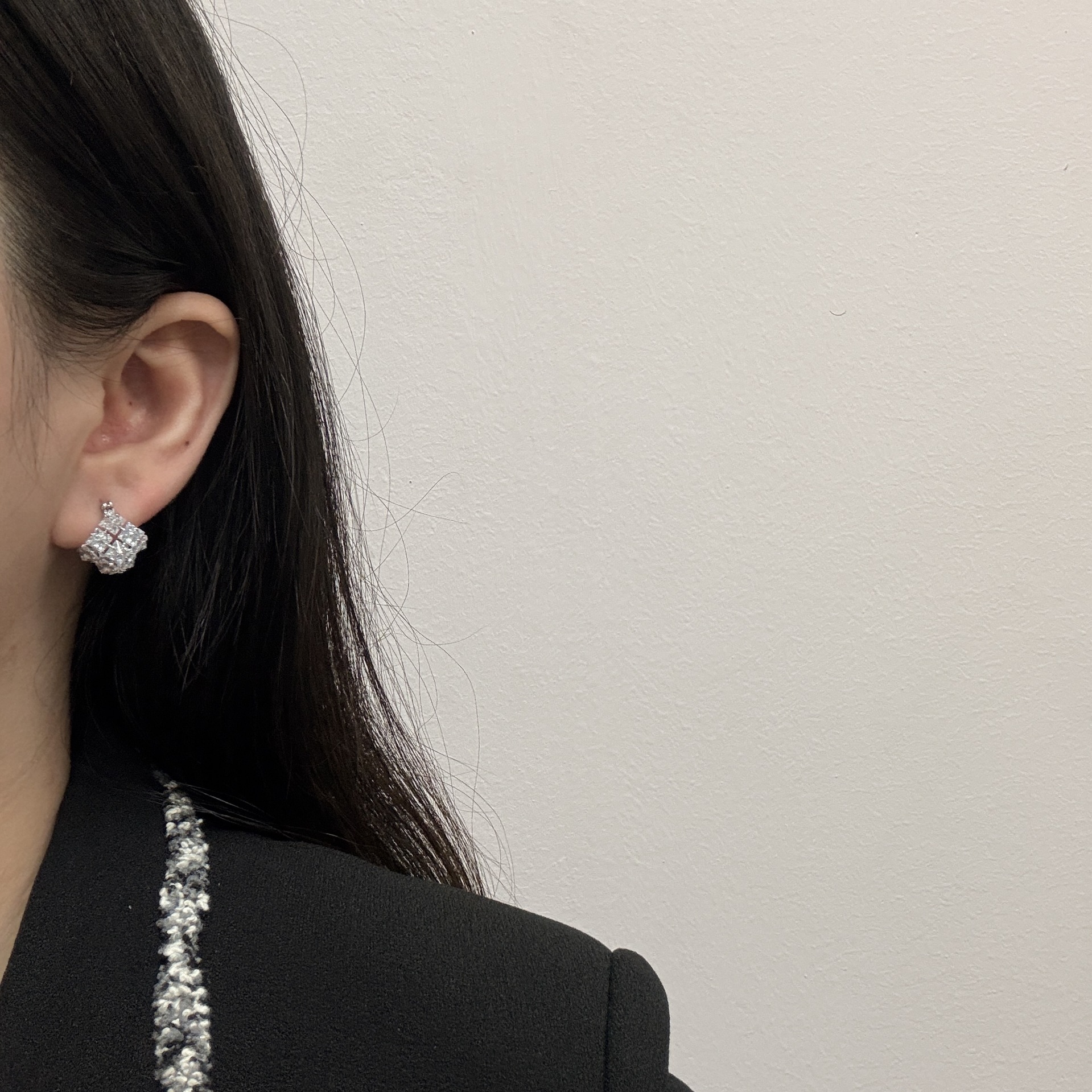 锆石方块耳环女轻奢风高级感百搭耳钉2025年新款小众独特气质耳饰