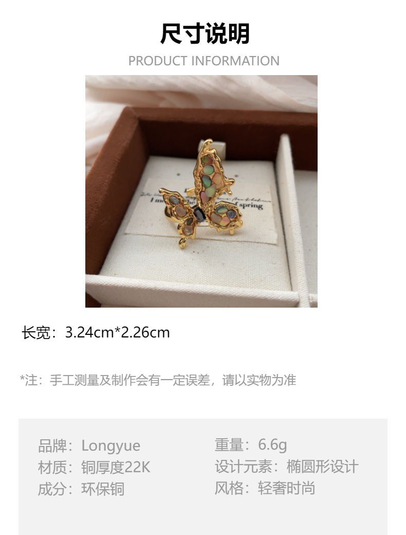 美拉德绿系列轻度风情馆浪漫天然贝壳蝴蝶戒指女 镶嵌指环