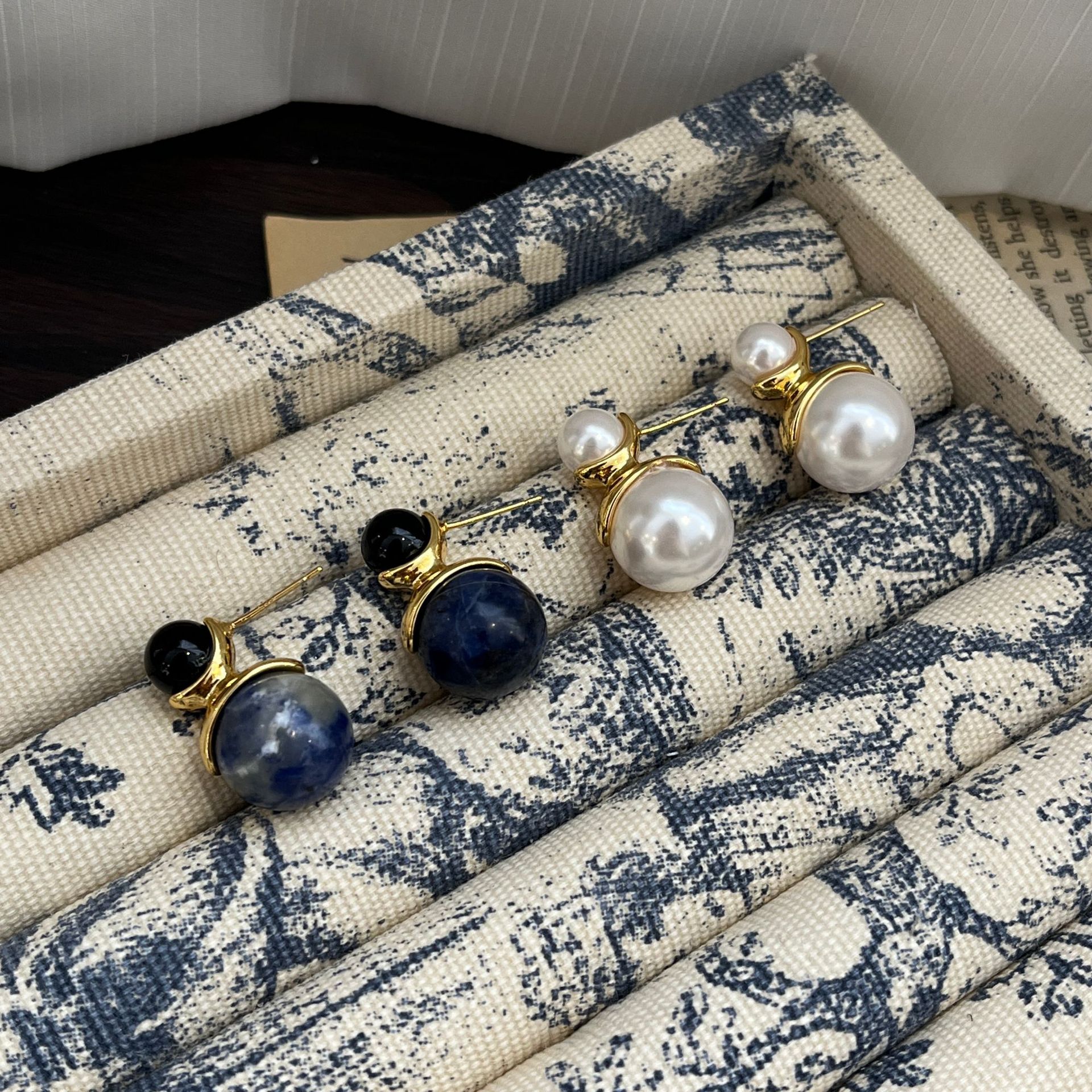 法式优雅欧美冷淡青金石复古简约双珠耳环小众设计耳钉法式复古女