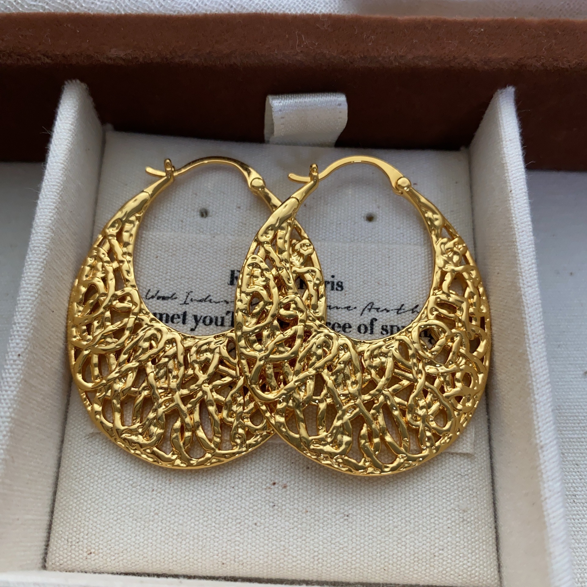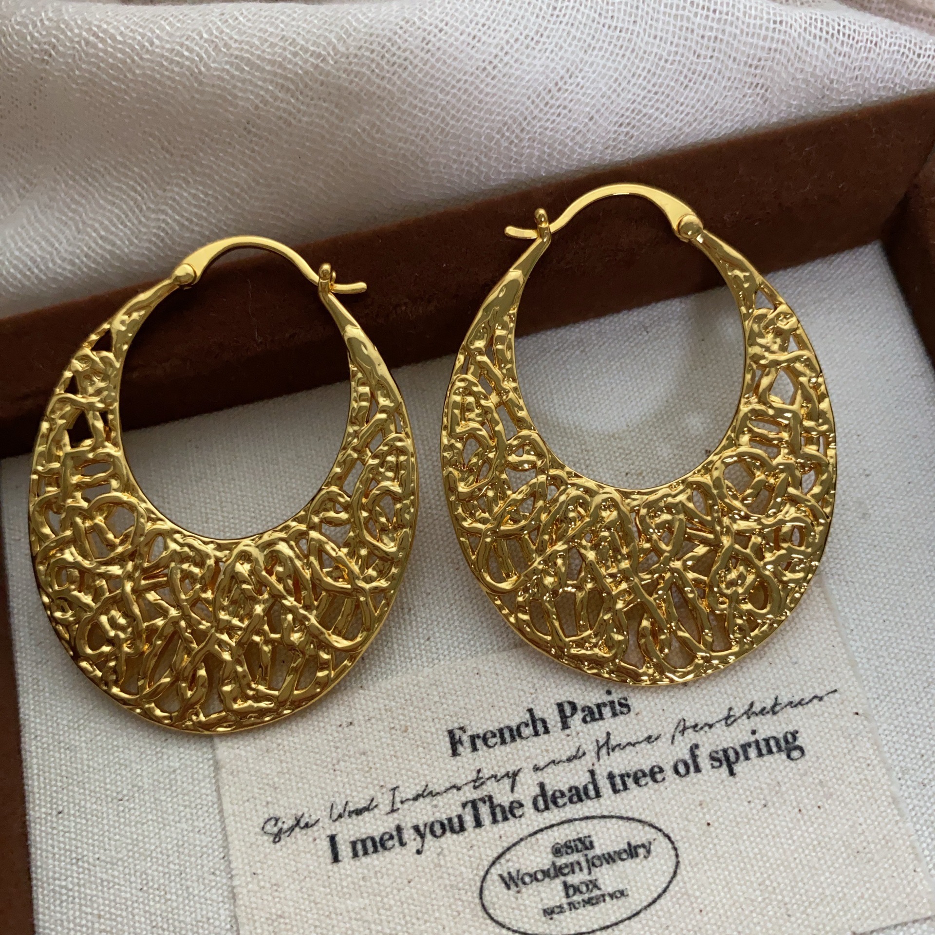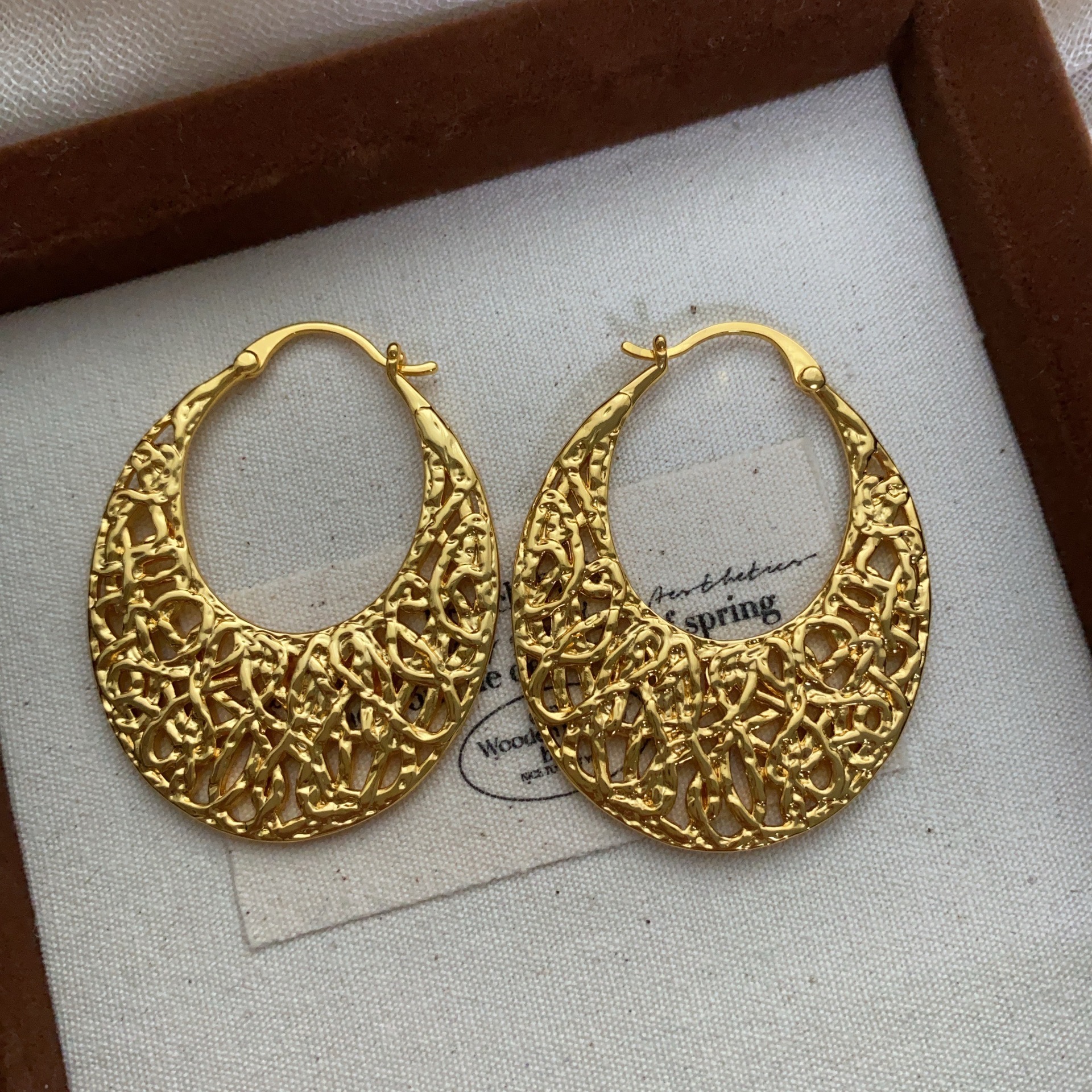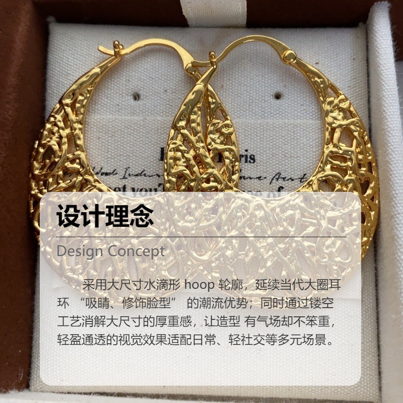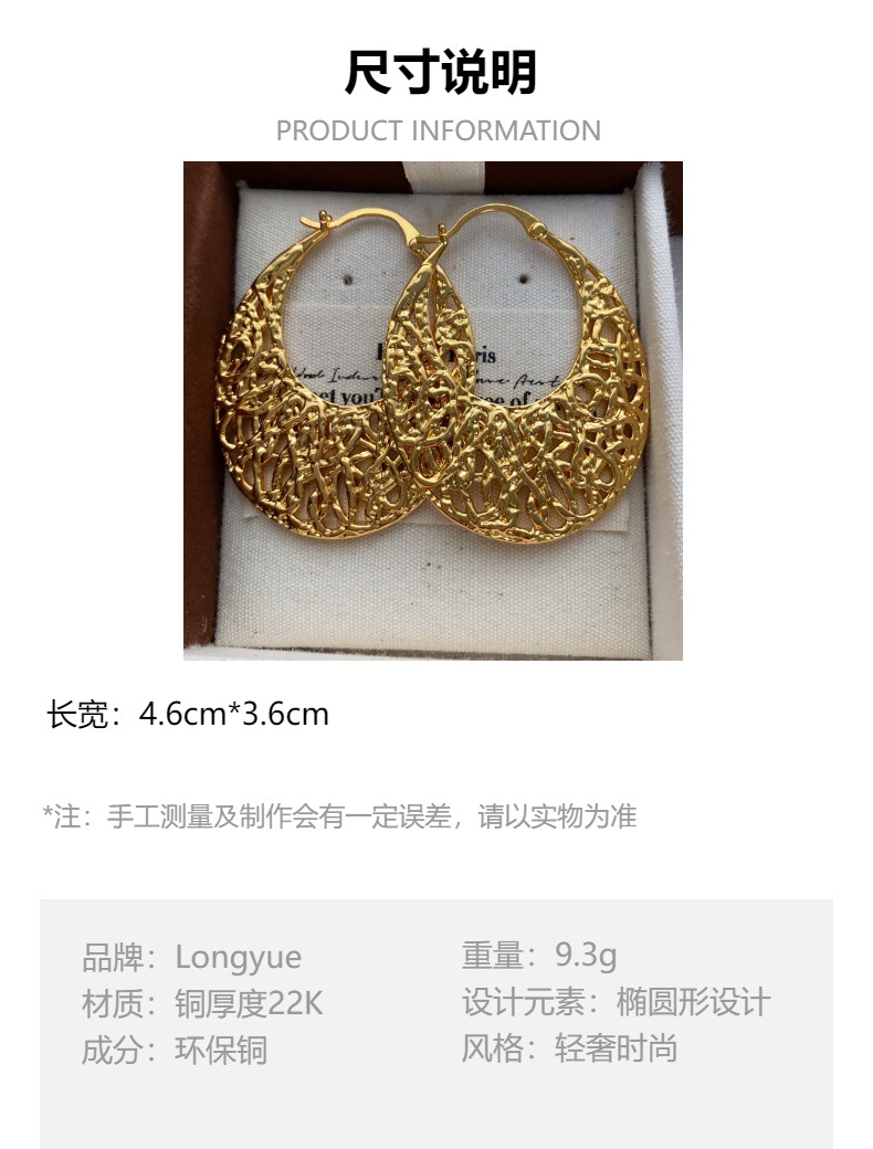 金属镂空复古编织耳钉耳扣气质小众设计金色耳环轻奢气场灵动高级