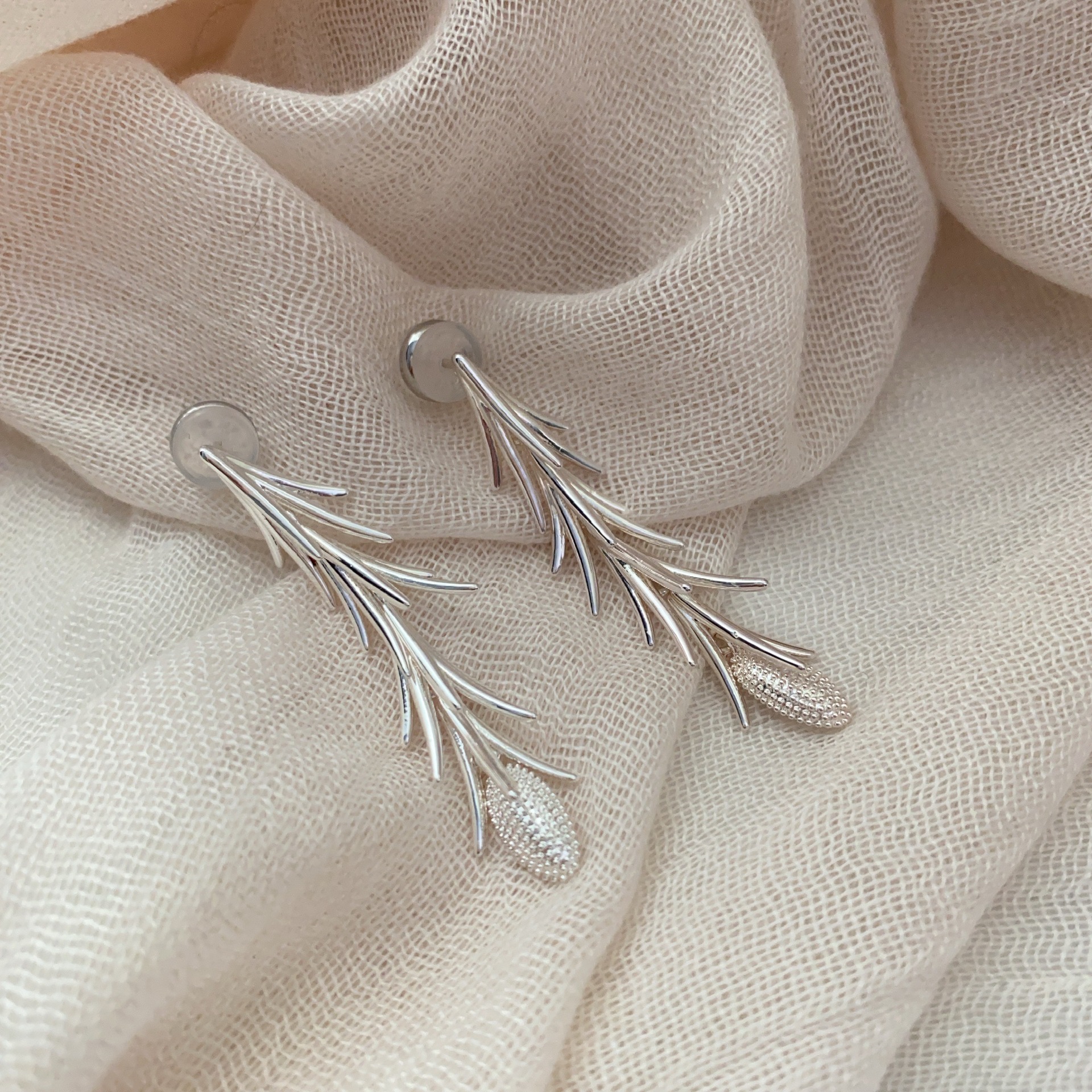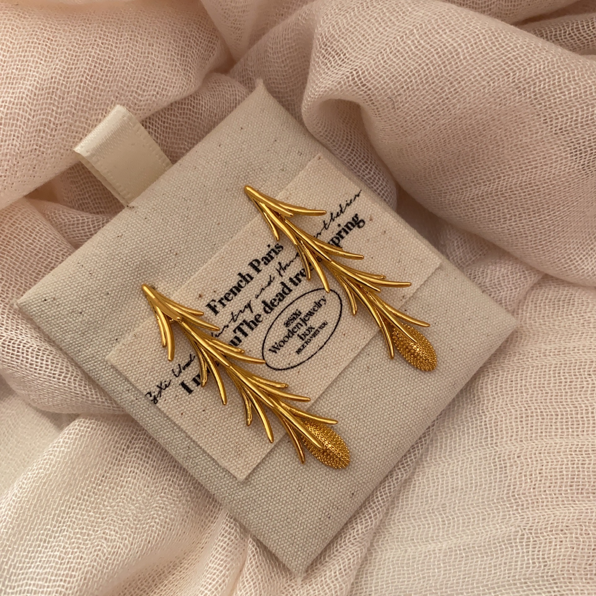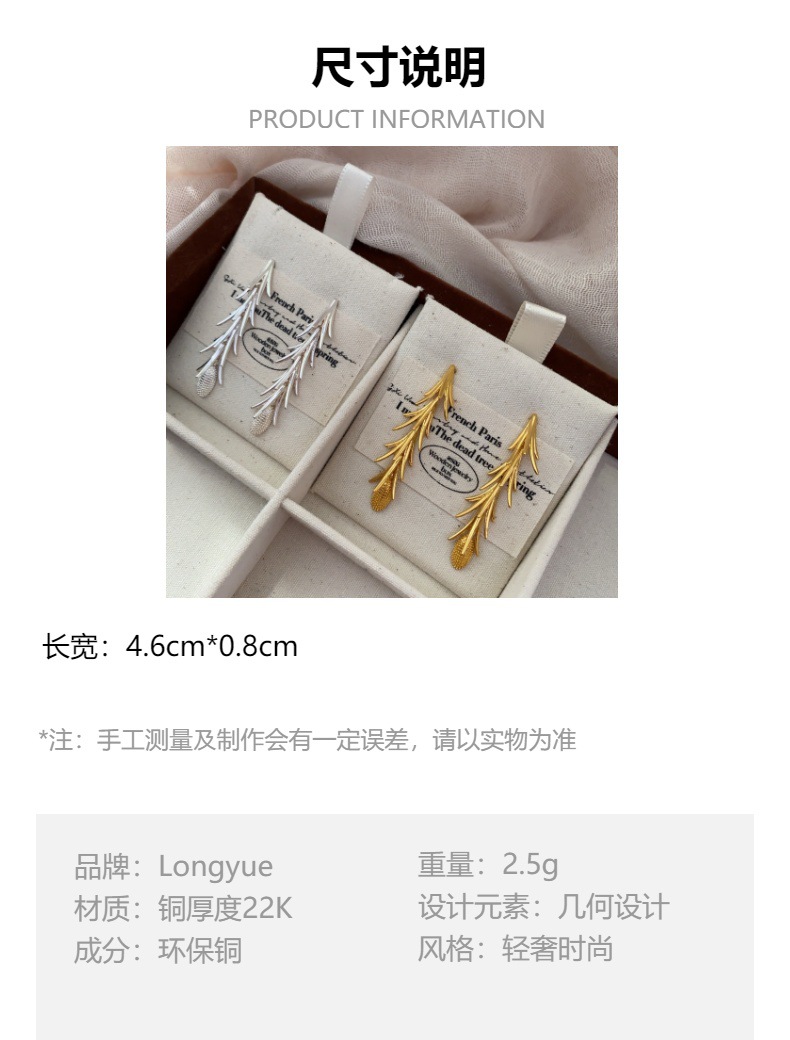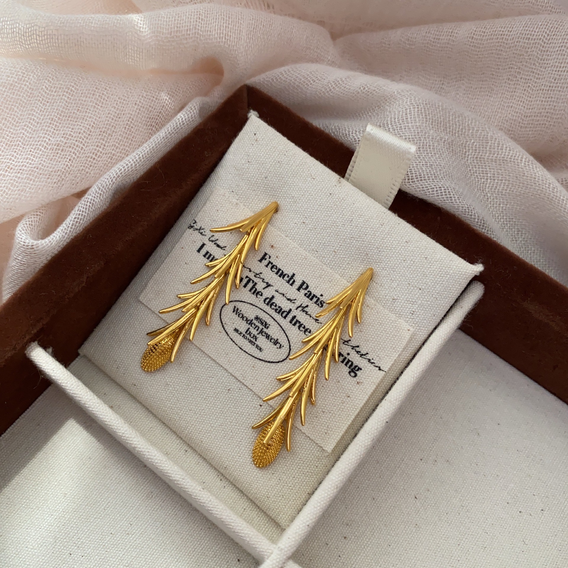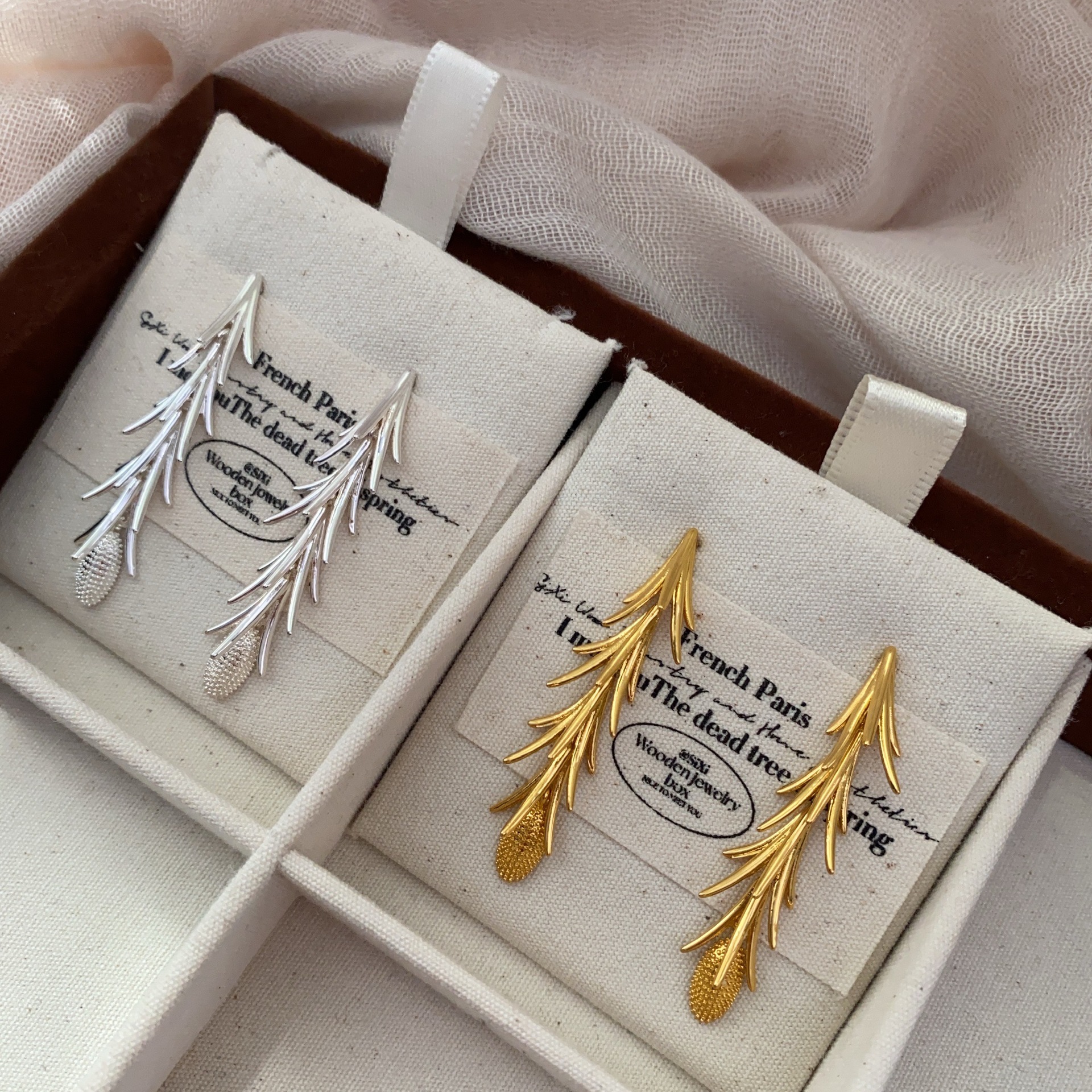 简约时尚树叶流苏精致轻奢耳钉个性气质羽毛小众耳环百搭时尚耳钉