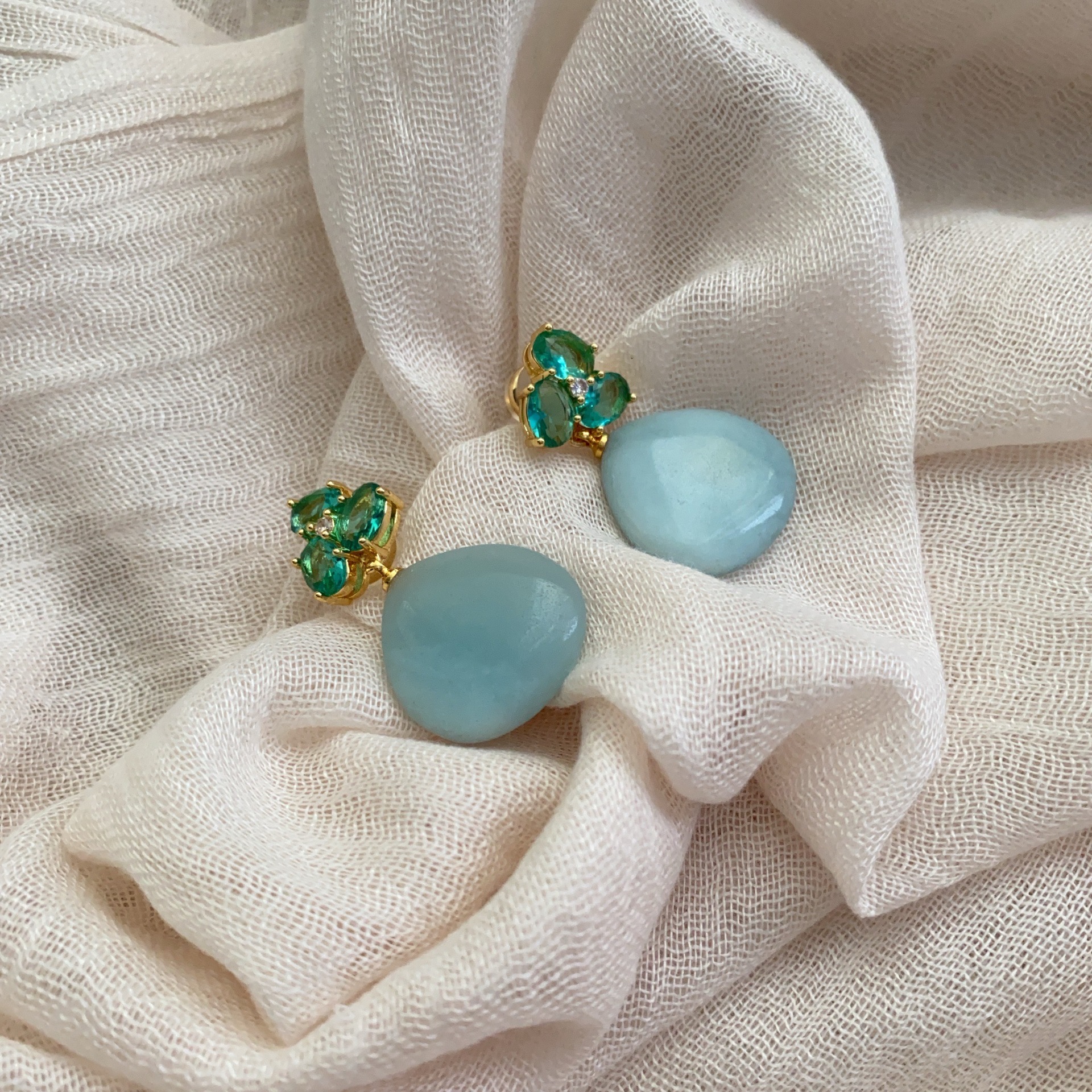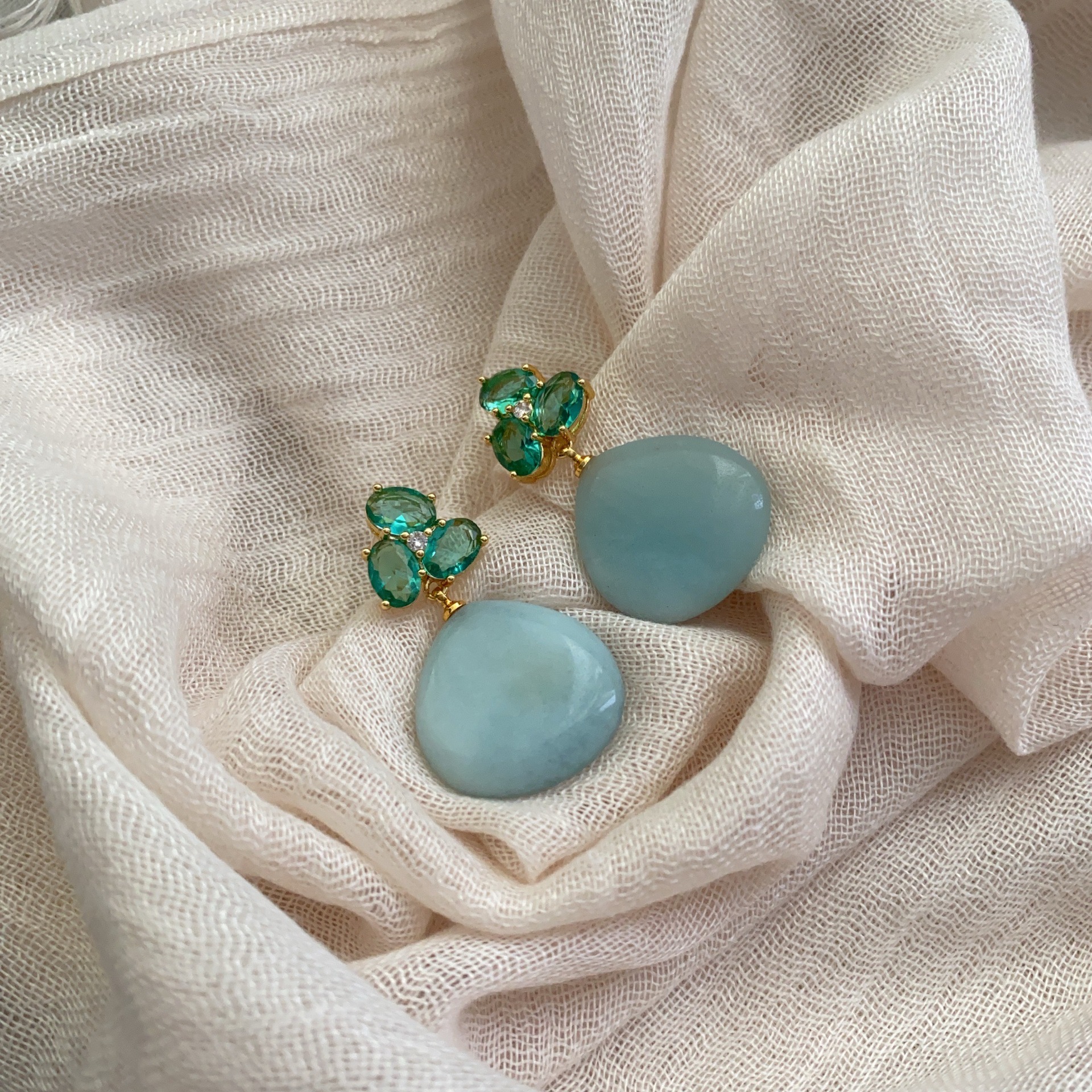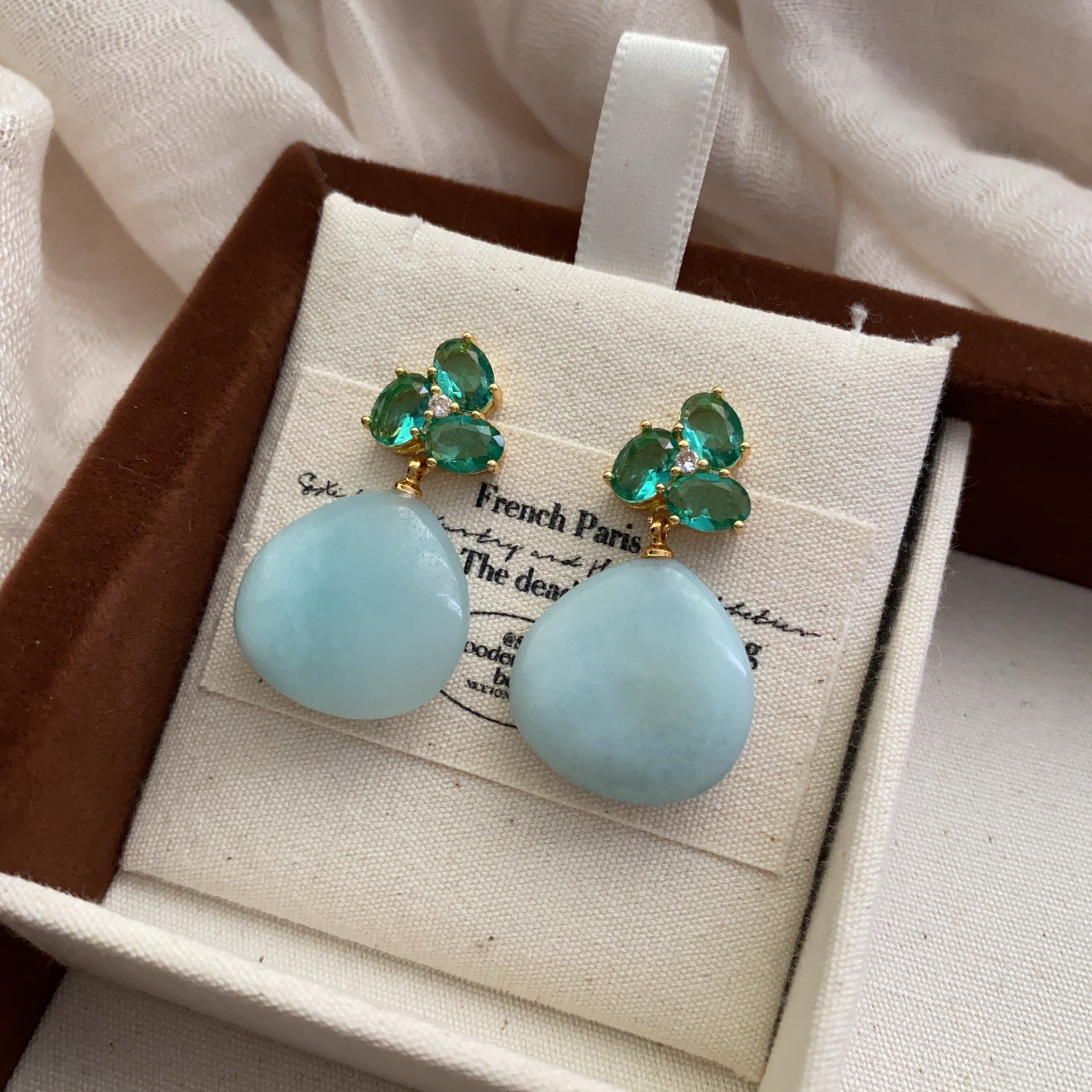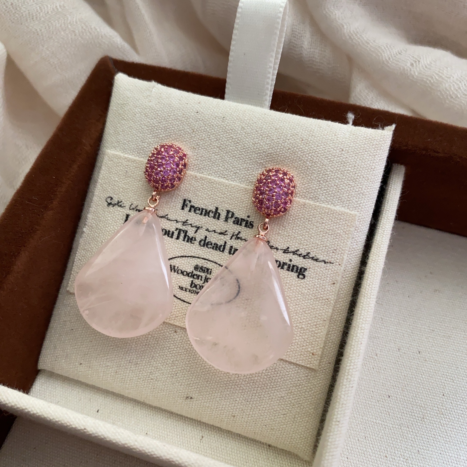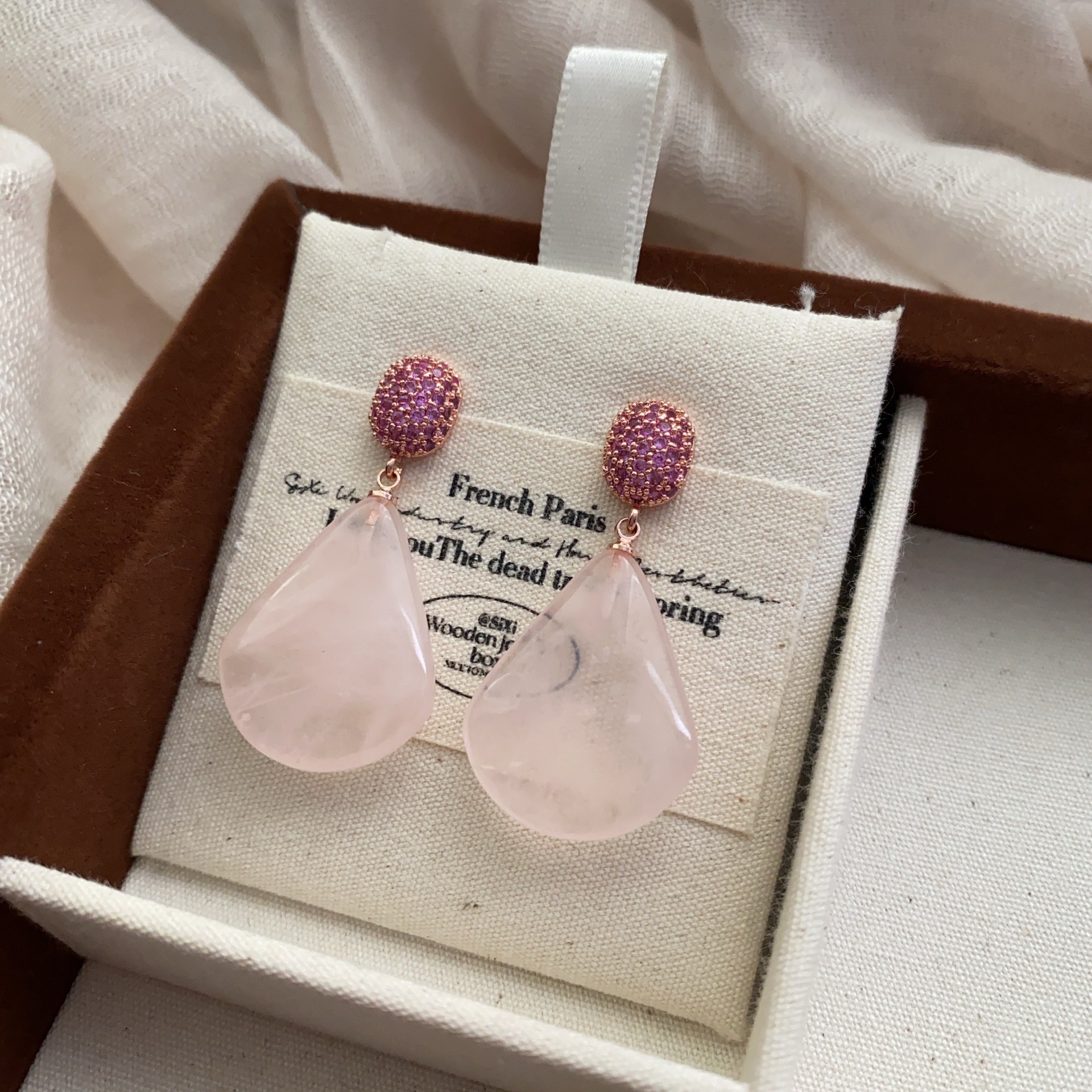 新款点钻耳环马来玉耳环小众气质耳坠镶嵌天然石耳环耳钉甜美耳环