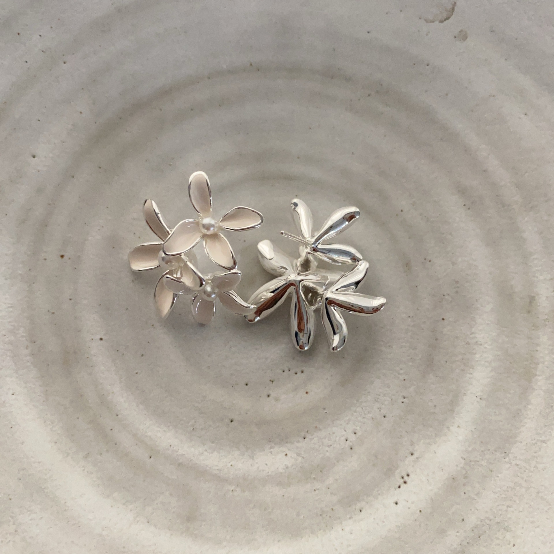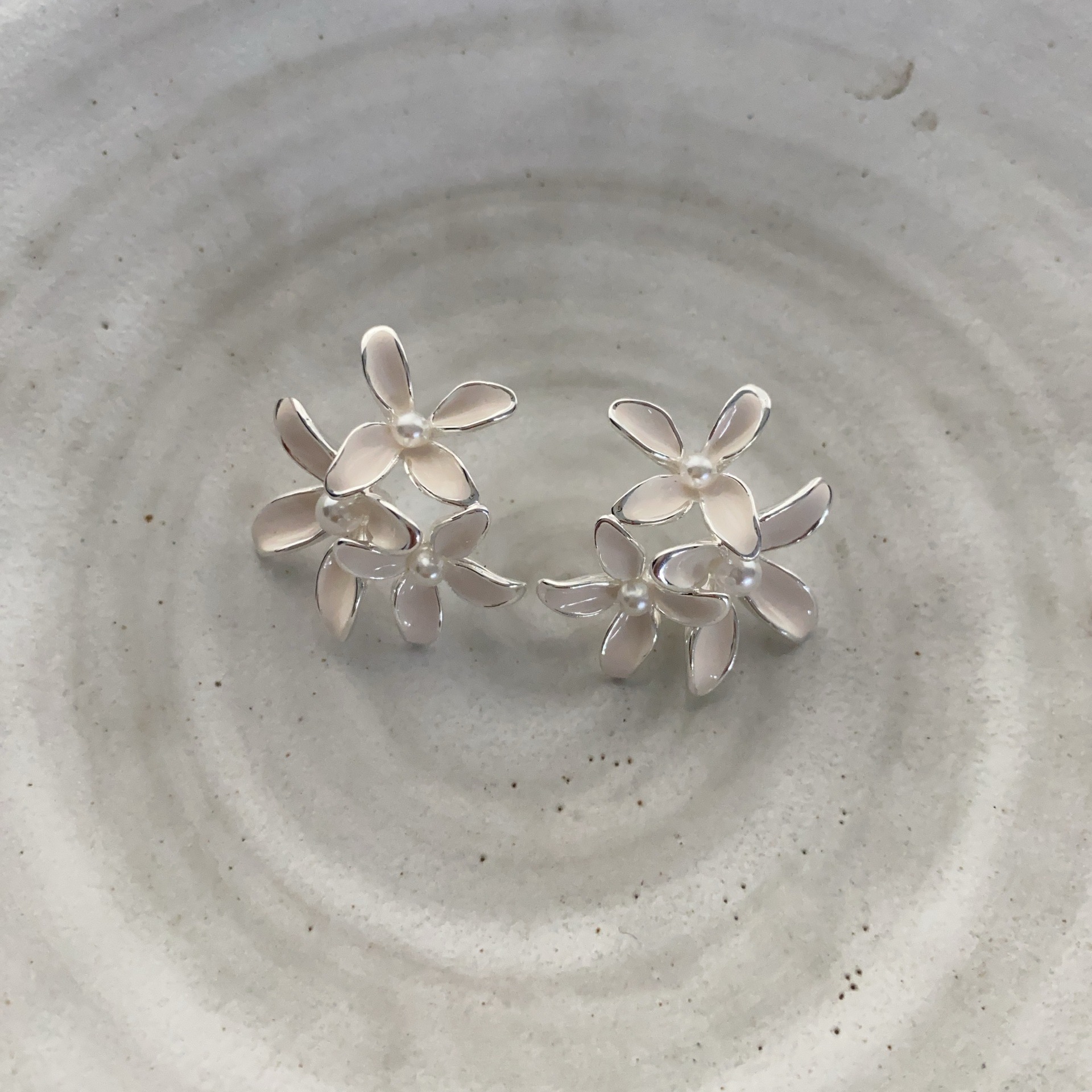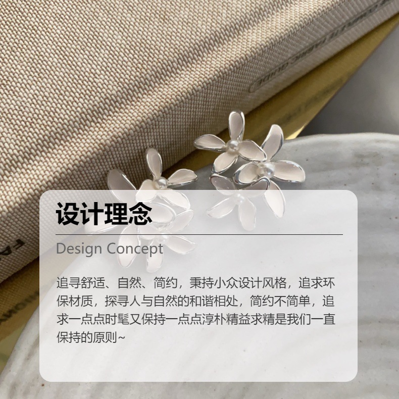 小众百搭时尚轻奢个性滴油五瓣花立体花朵夸张金属感三朵珍珠耳环