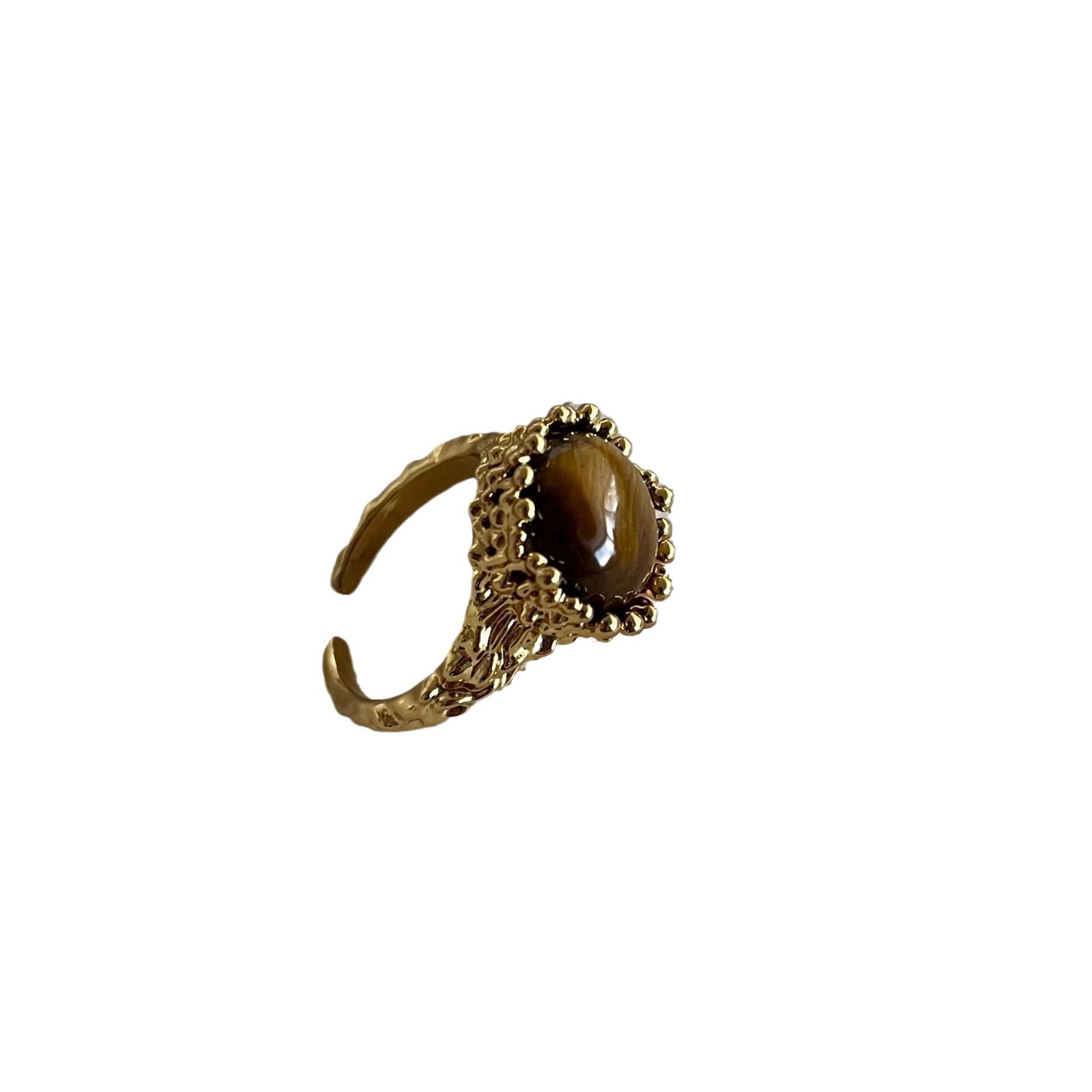6起订小众时尚跨境复古风天然虎眼石开口戒小众设计感高级时尚个