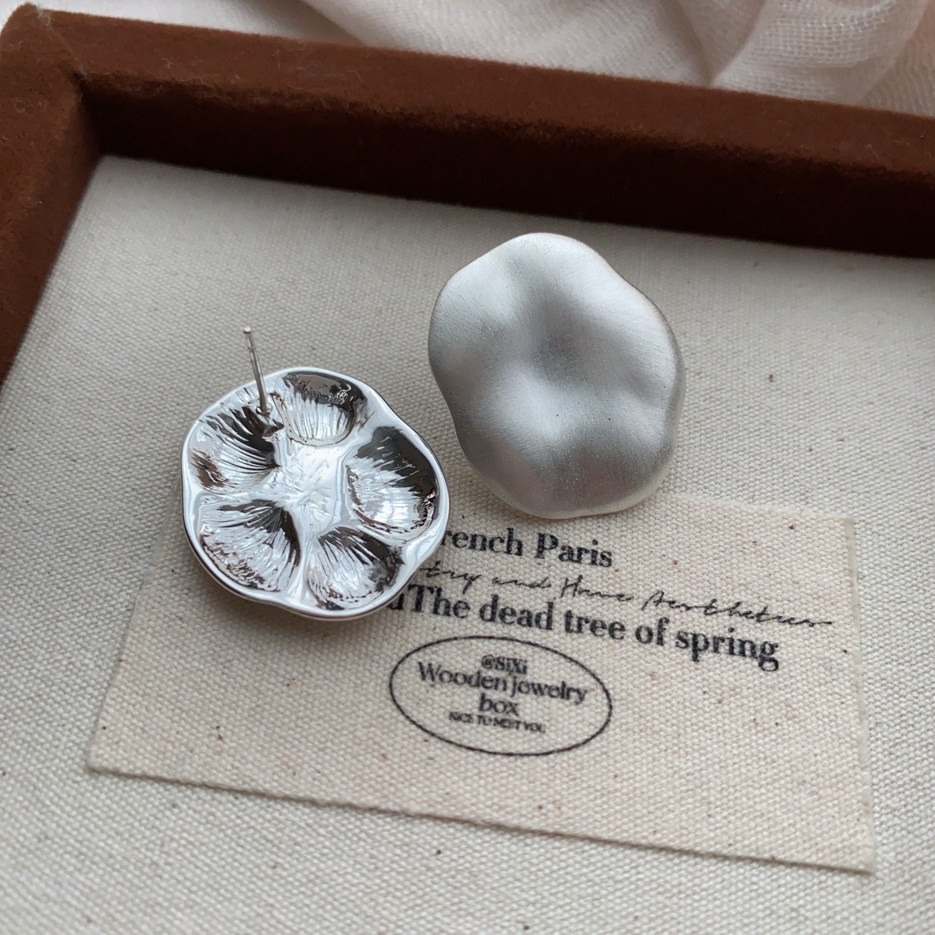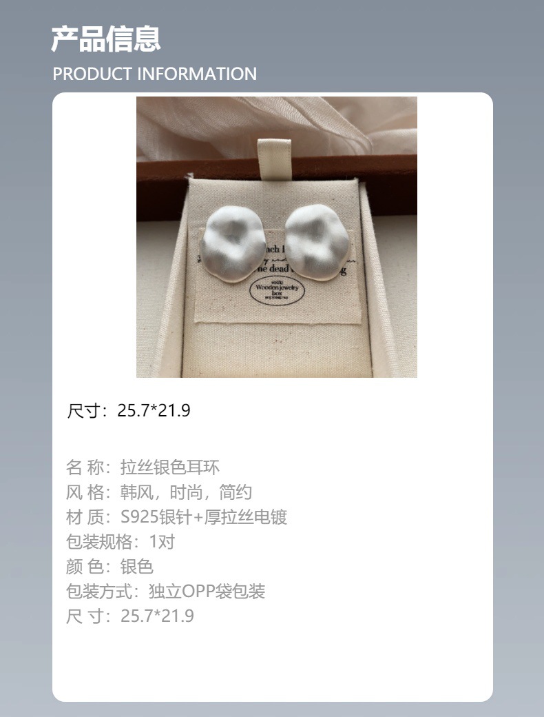 时尚新款银色设计耳环加厚拉丝电镀不规则形状简约欧美气质耳饰女
