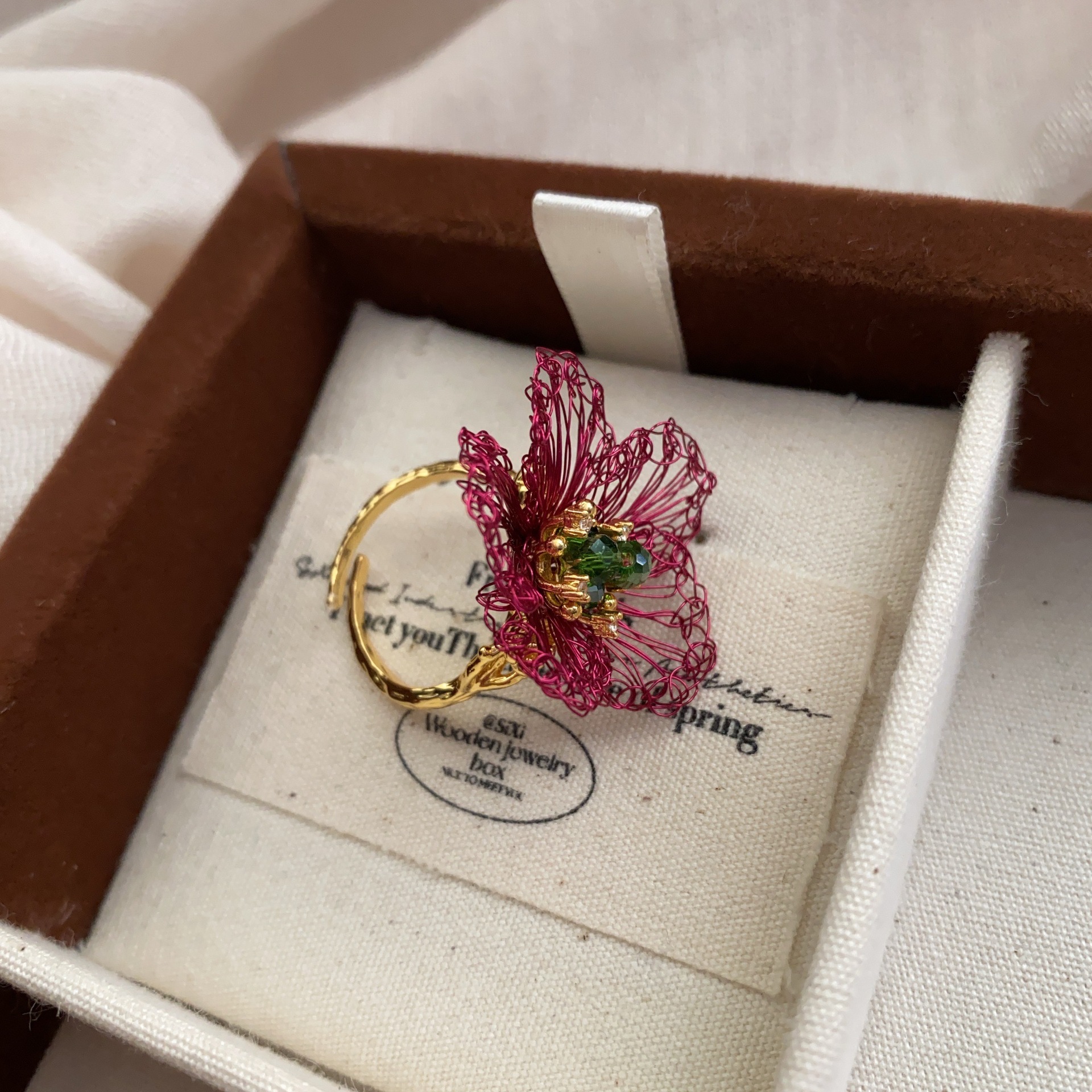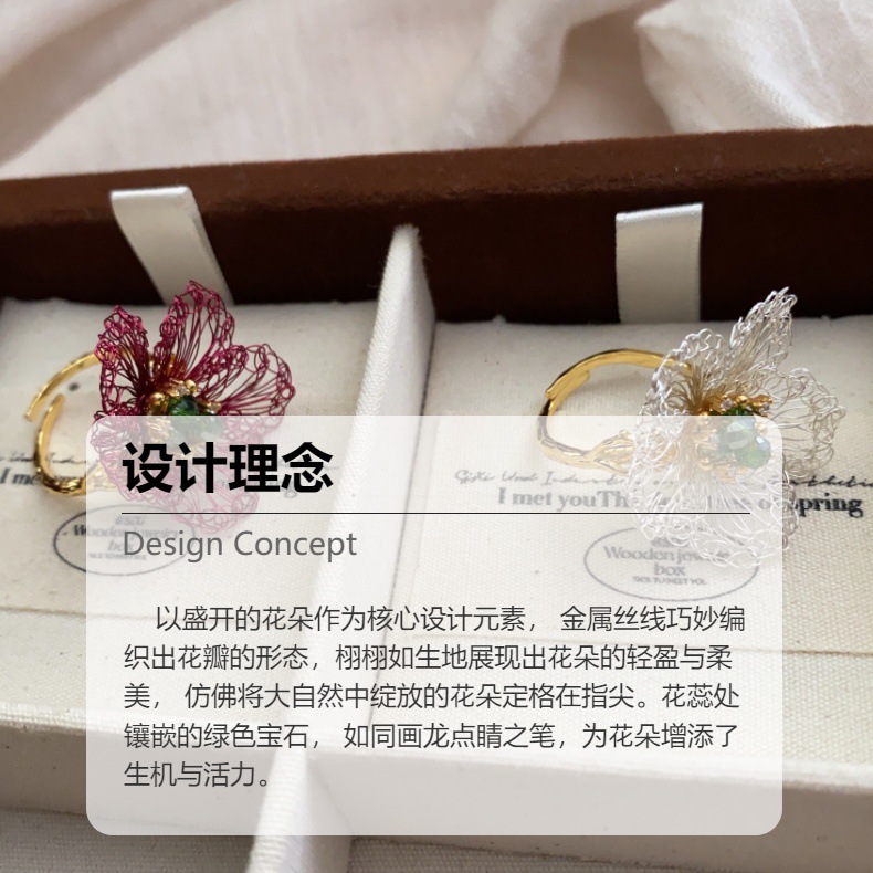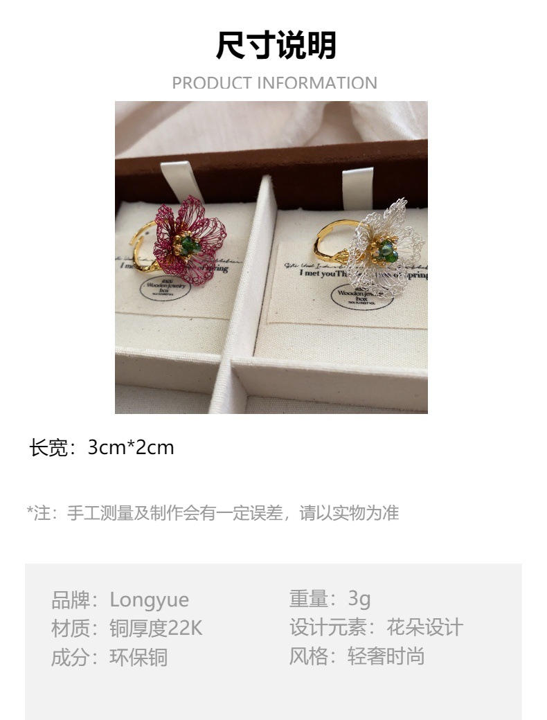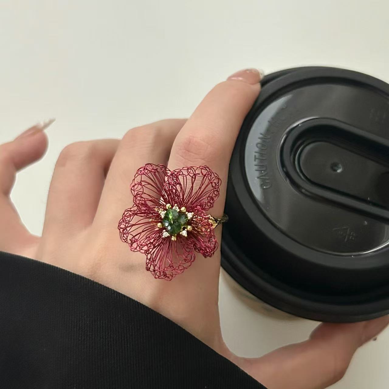浪漫花朵戒指圆形指环可调节大小公主宫廷风戒指小众戒环点钻首饰